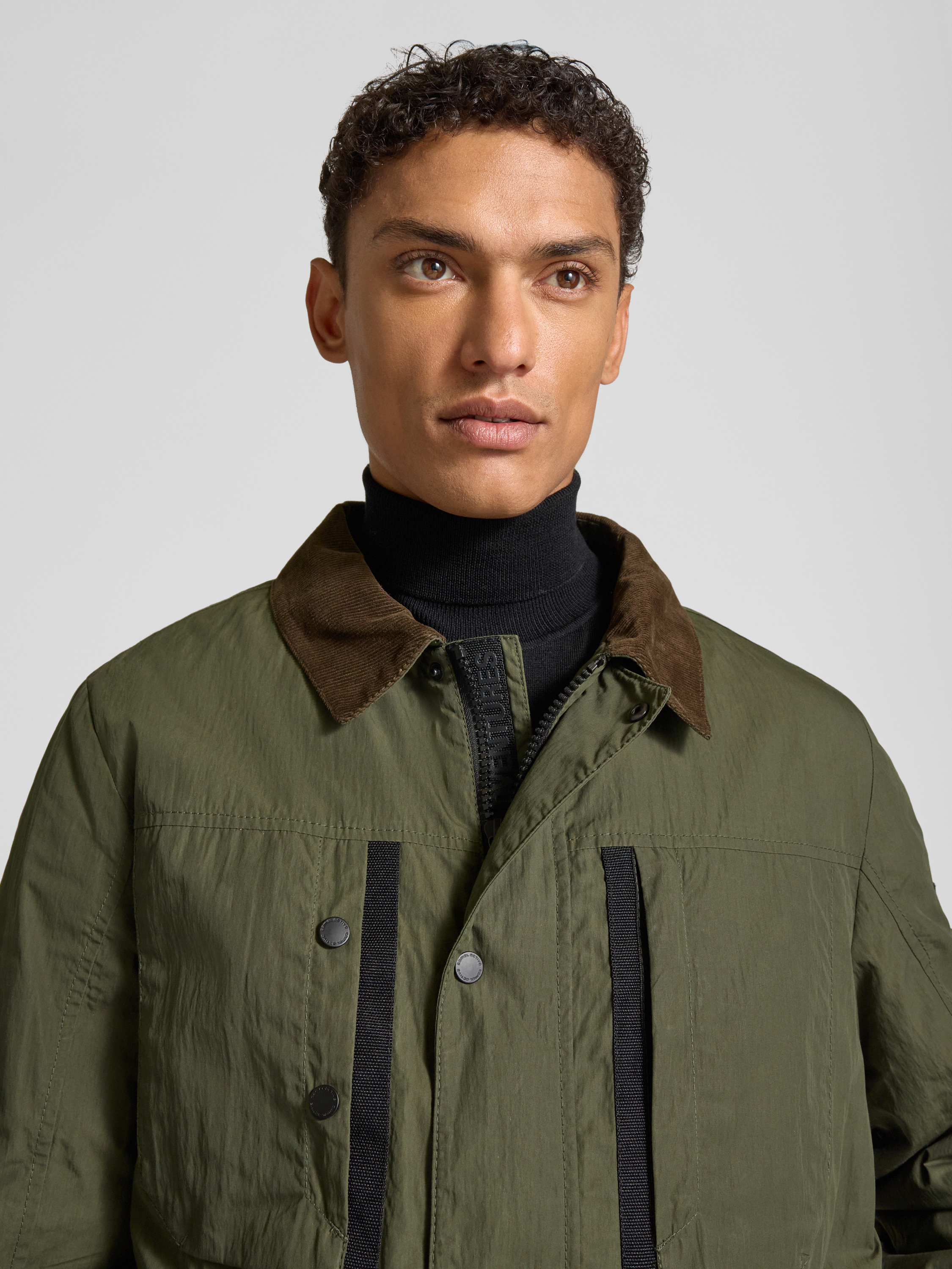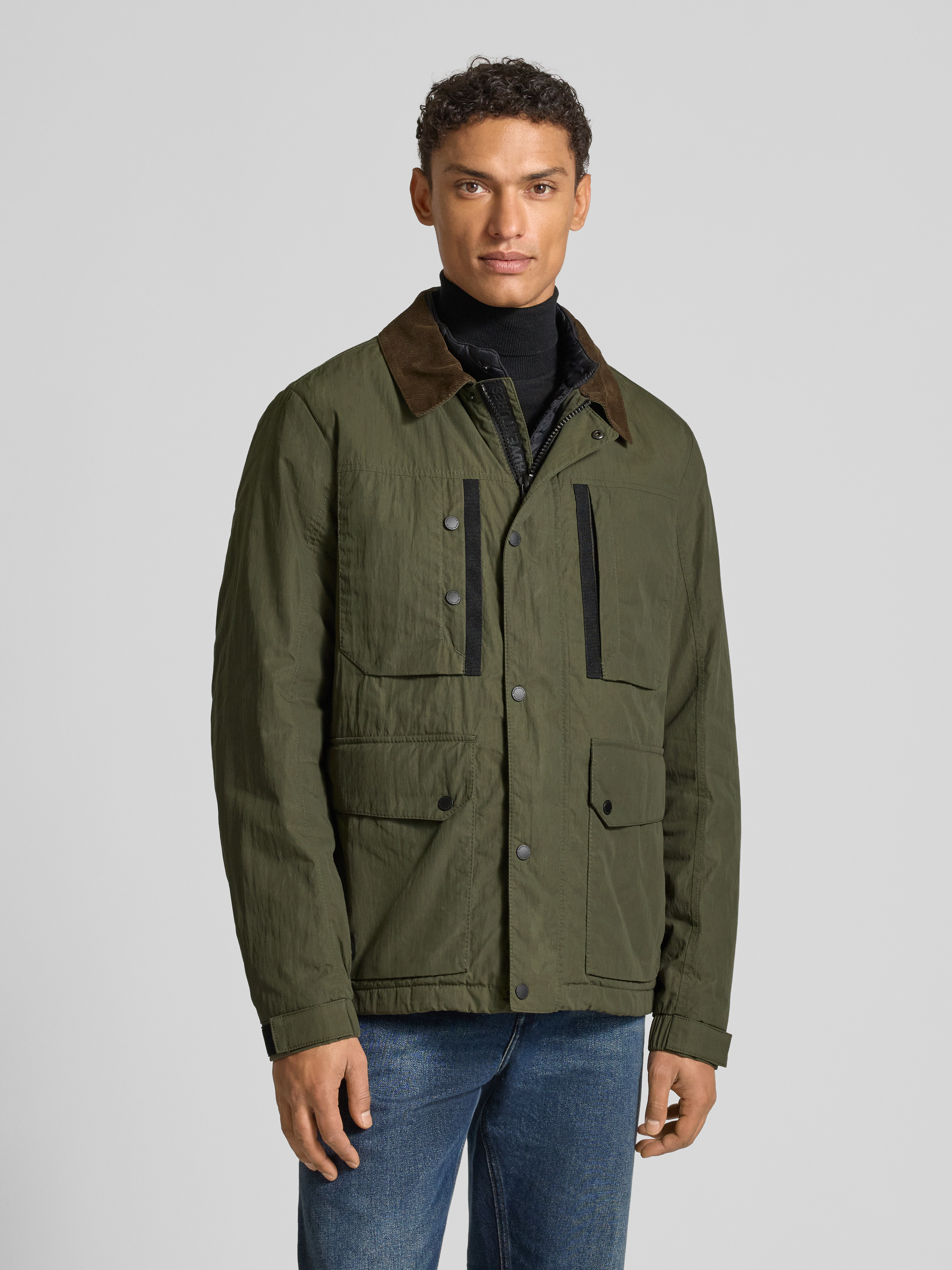 Fieldjack met platte kraag van corduroy in olijfgroen