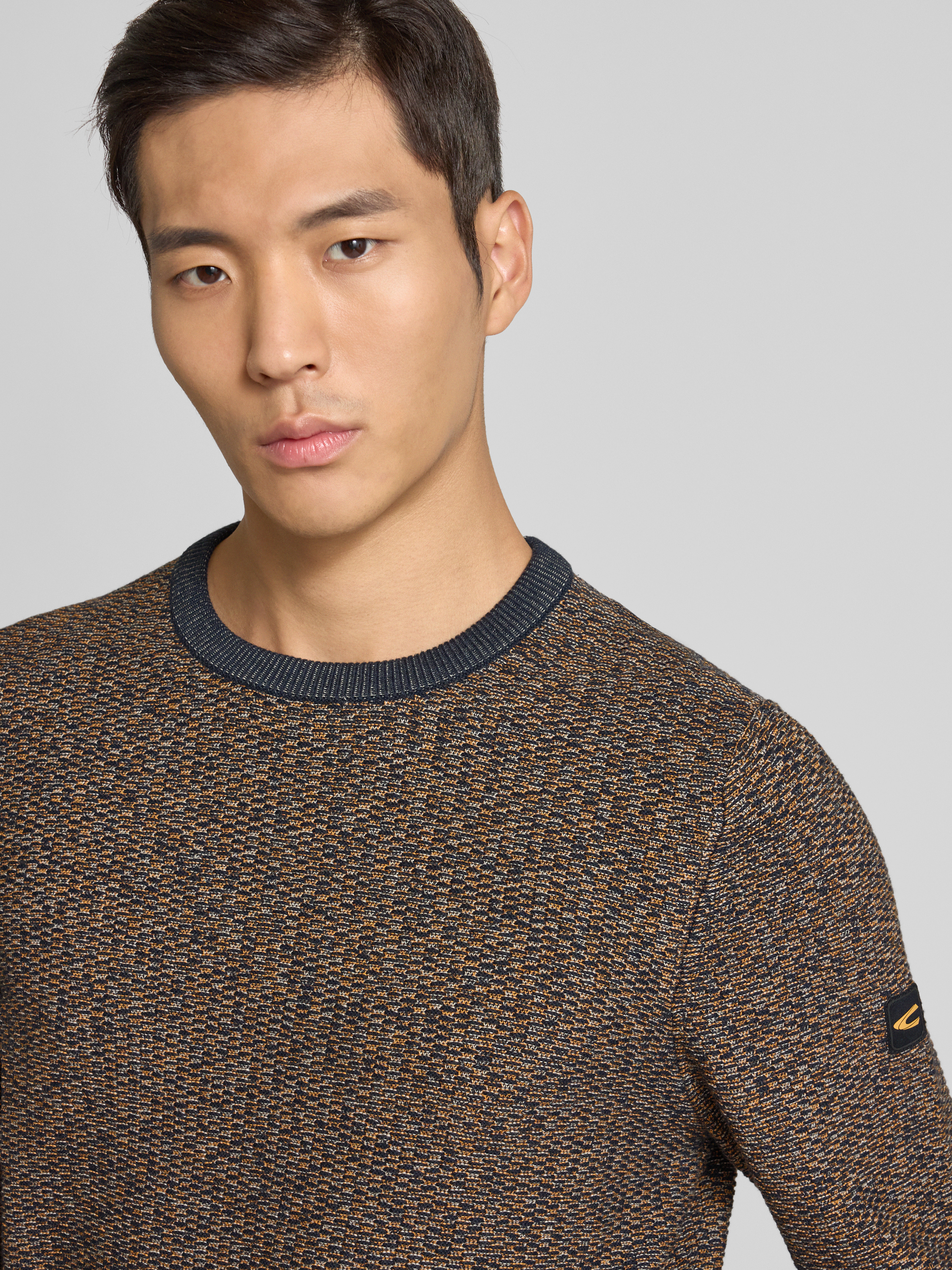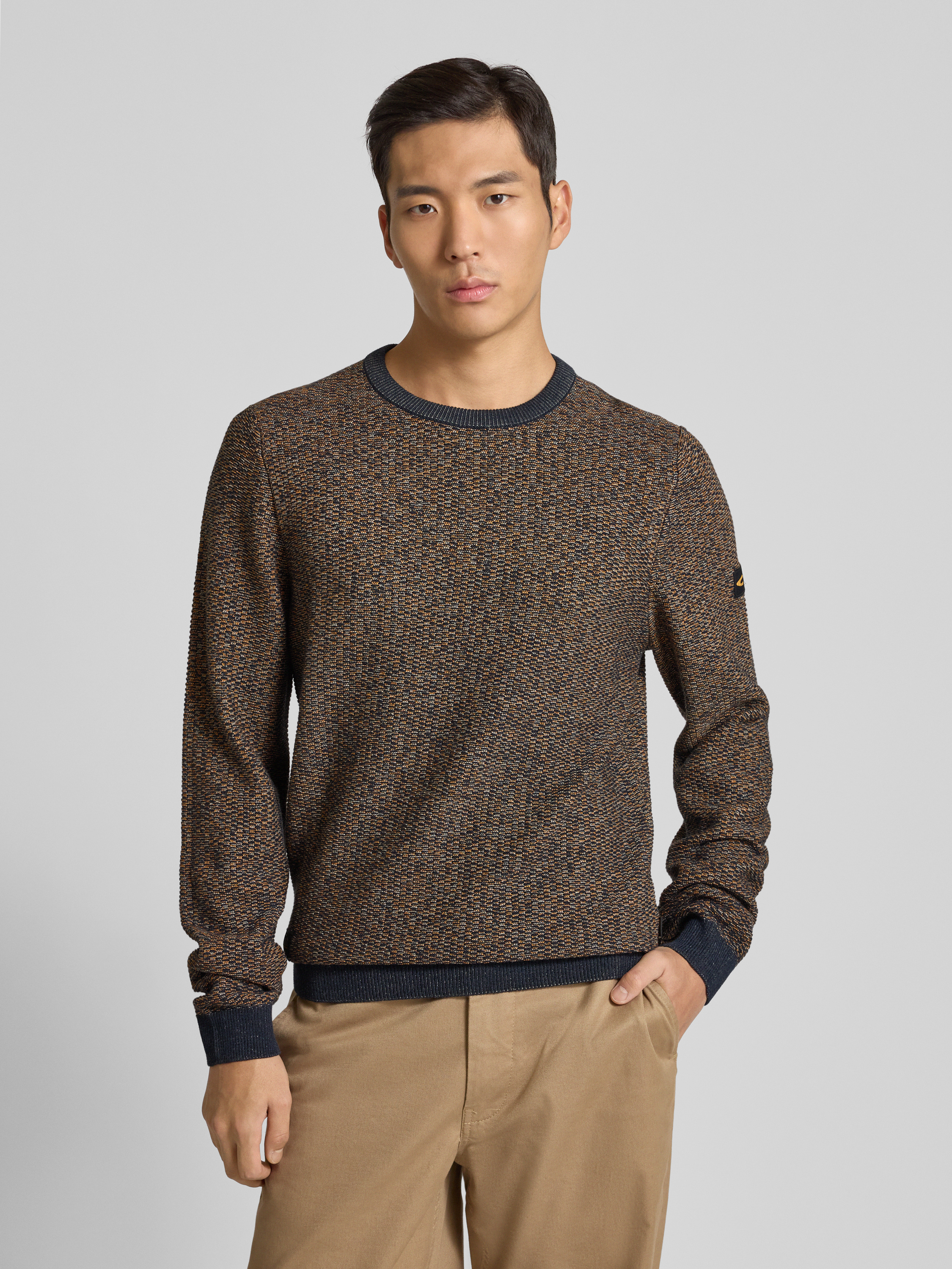 Gebreide pullover met ronde hals en labeldetails in oranje