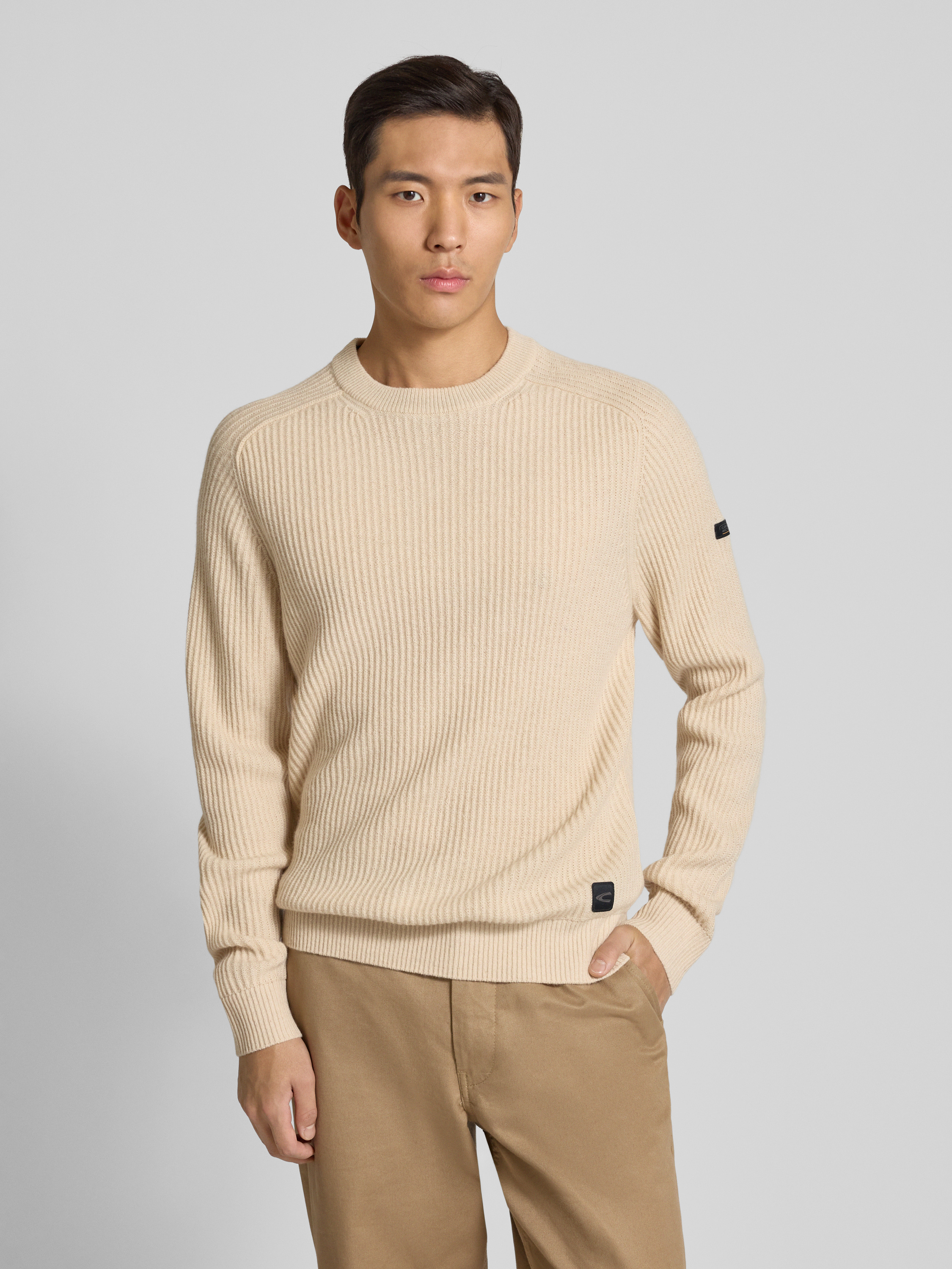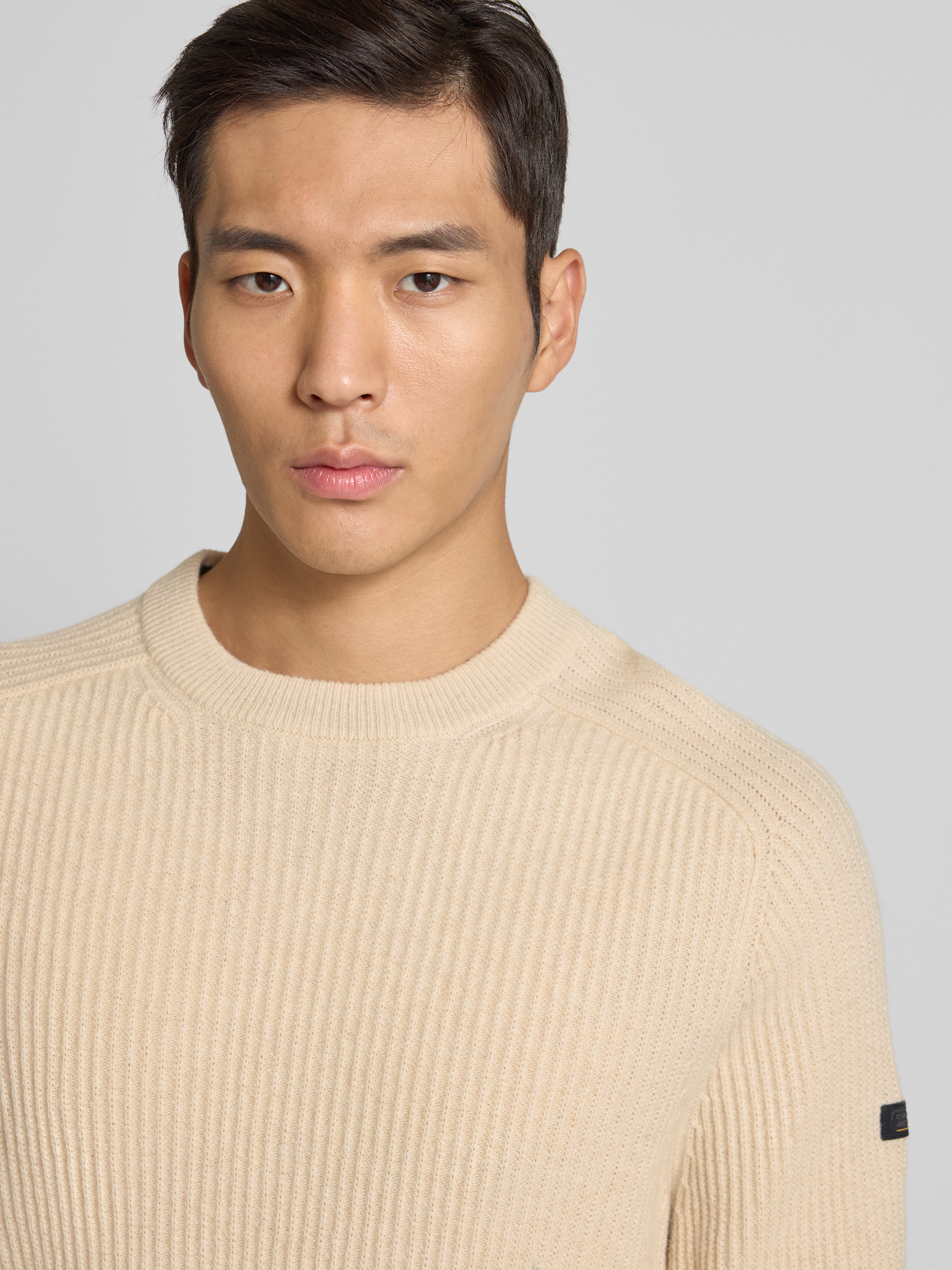 Gebreide trui van wol met ronde hals in offwhite gemêleerd