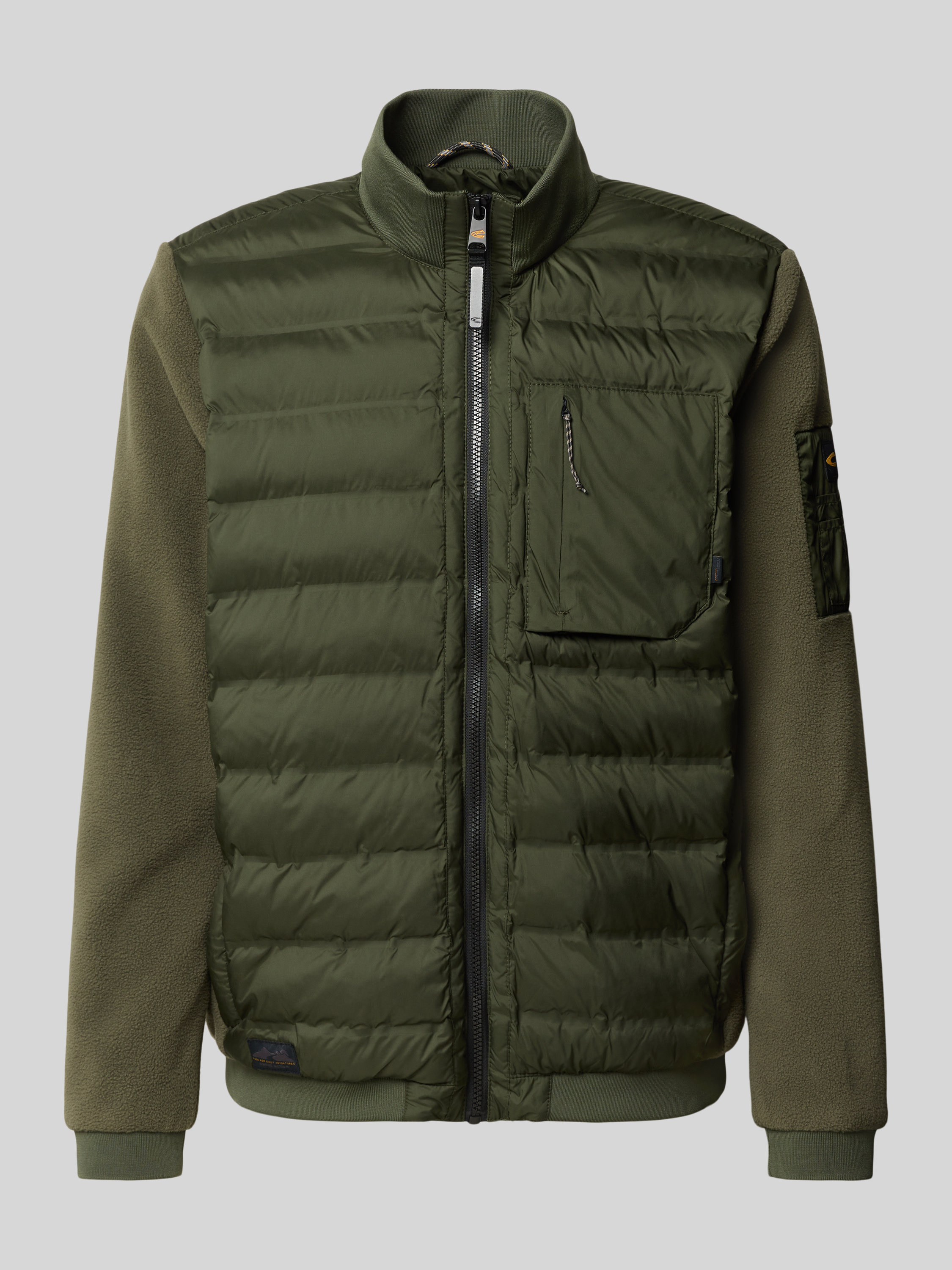 Gewatteerd jack met opstaande kraag en borstzak, model 'Hybrid' in olijfgroen