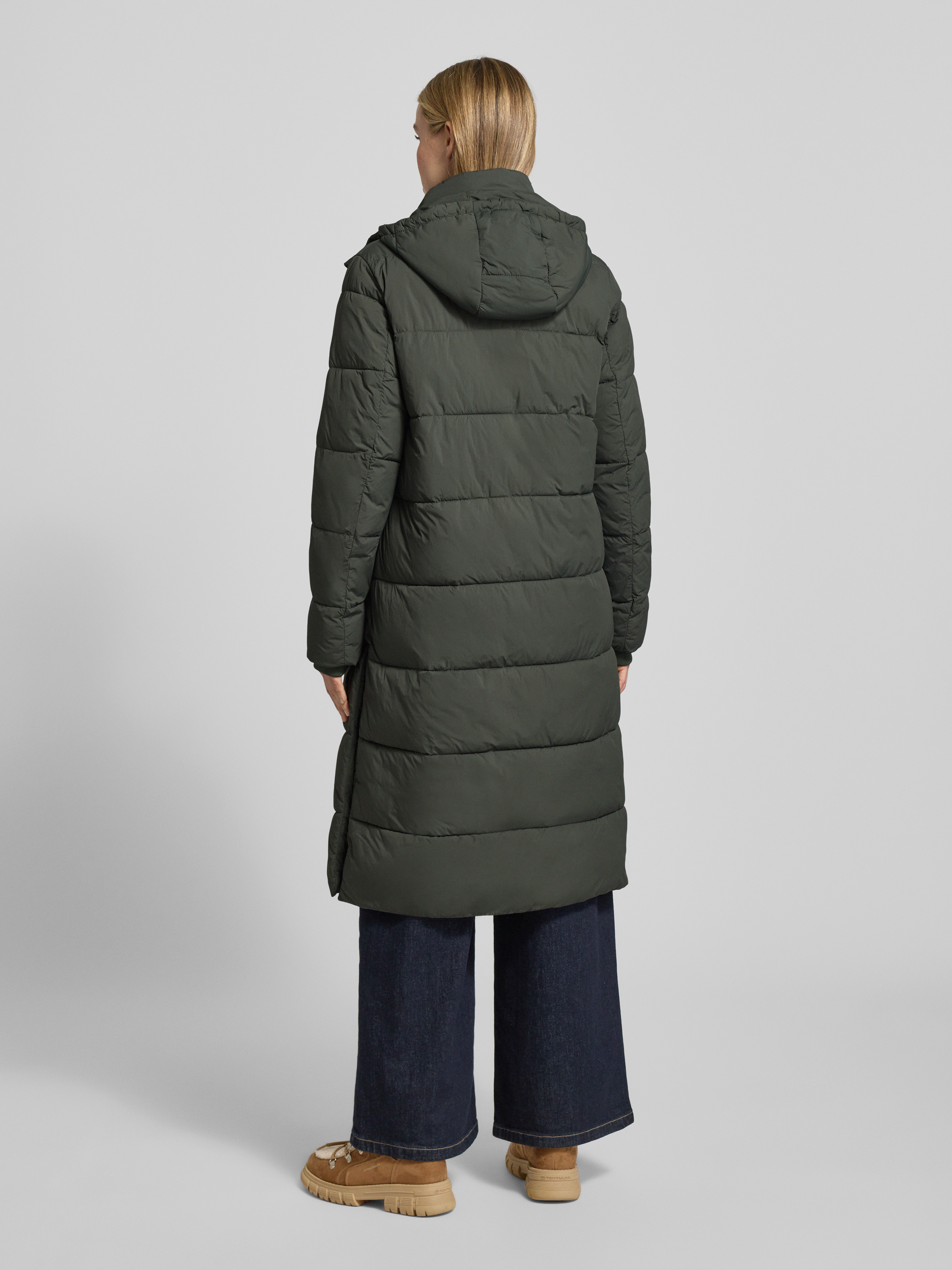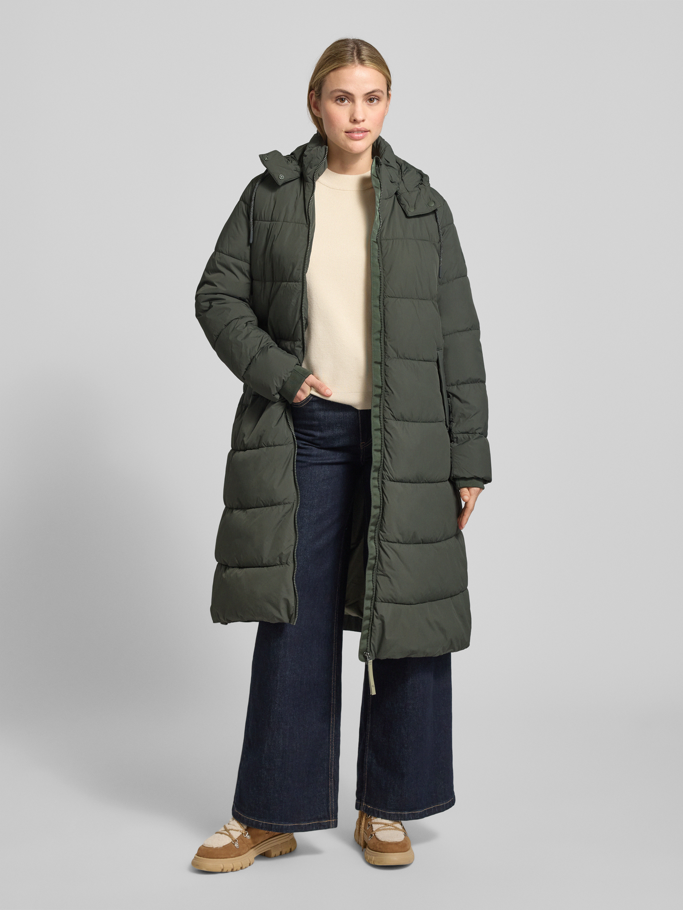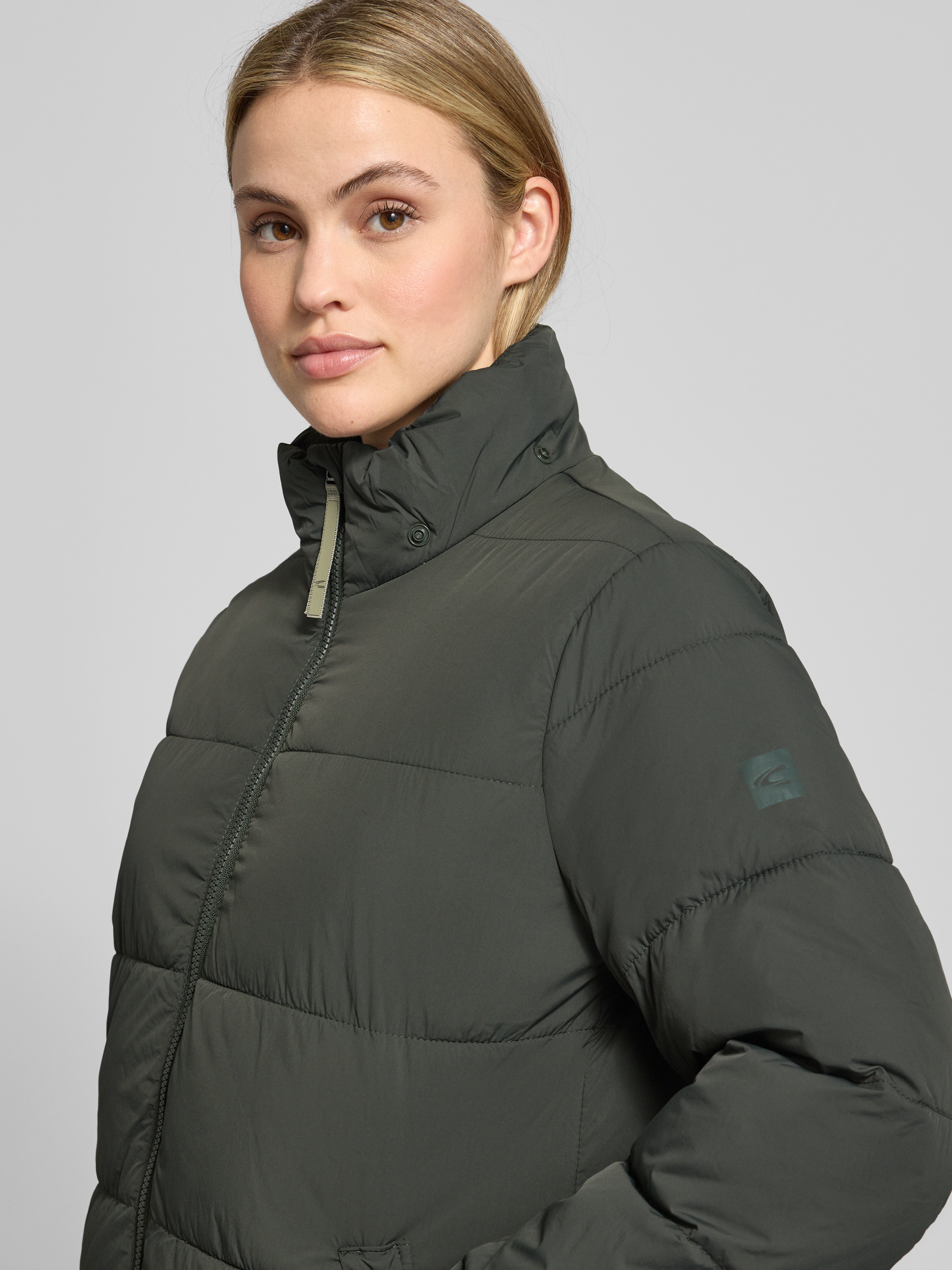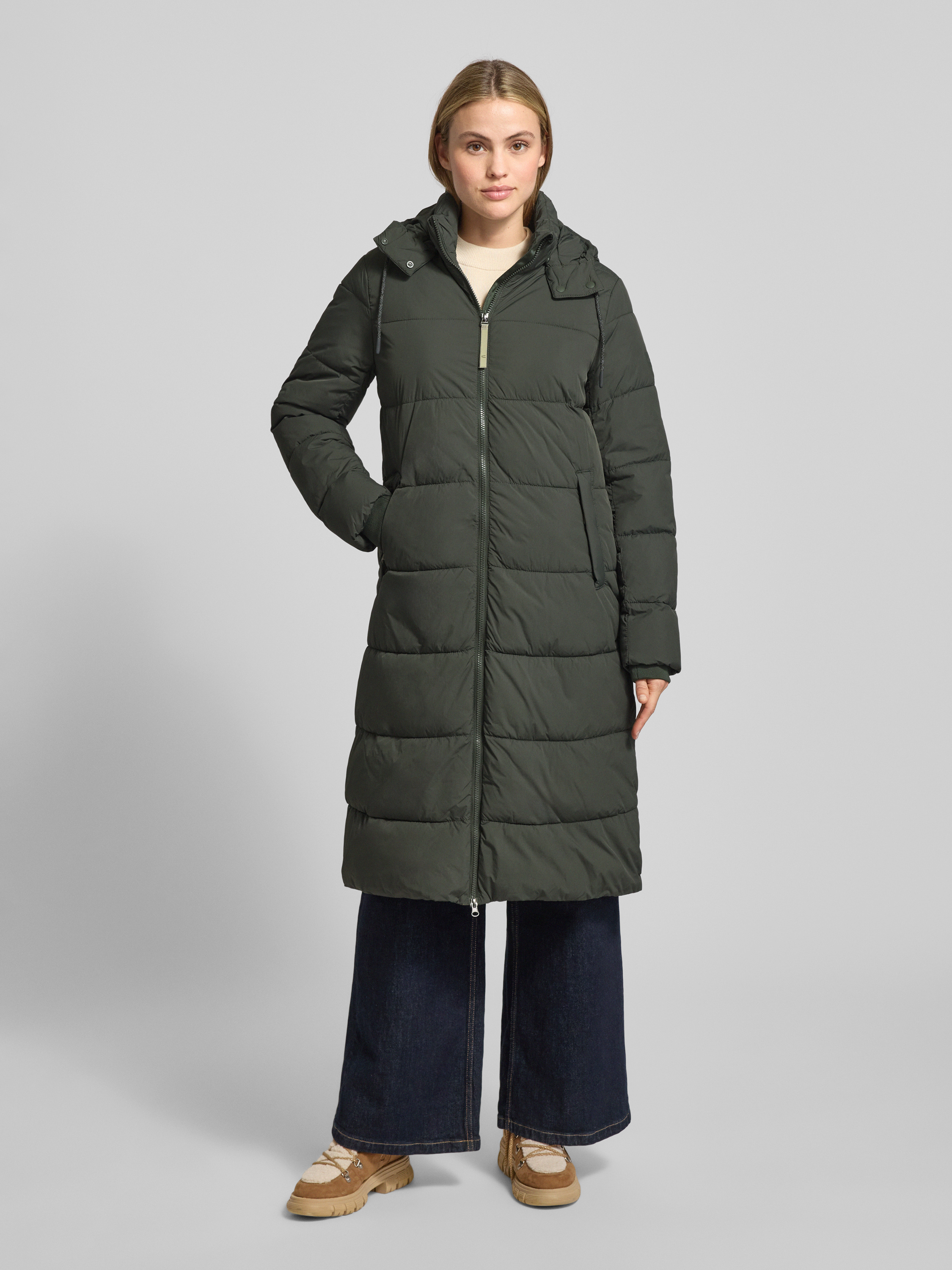 camel activeGewatteerde lange jas met steekzakken in groen