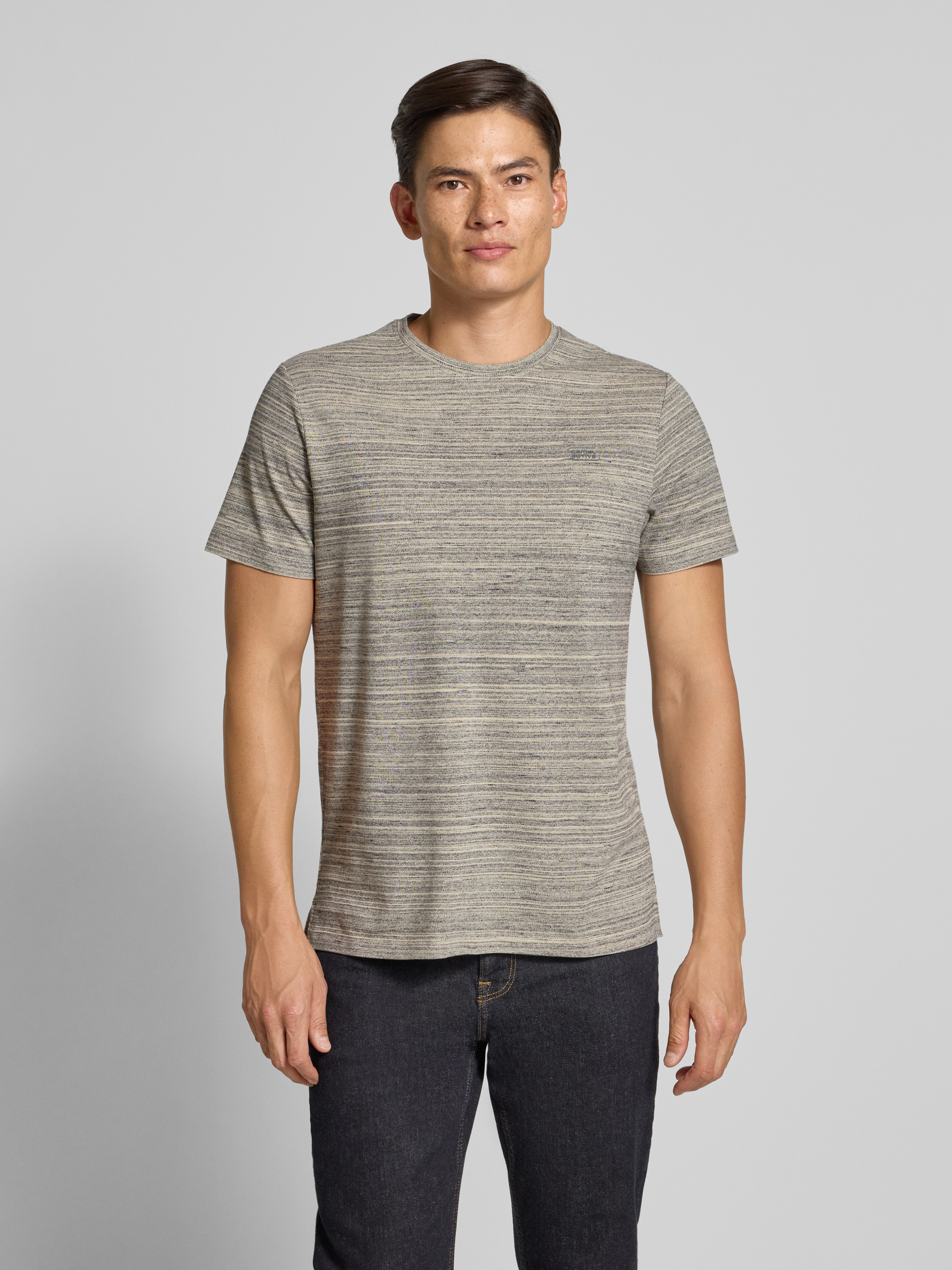 Regular fit T-shirt met ronde hals, model 'Melange' in lichtgrijs