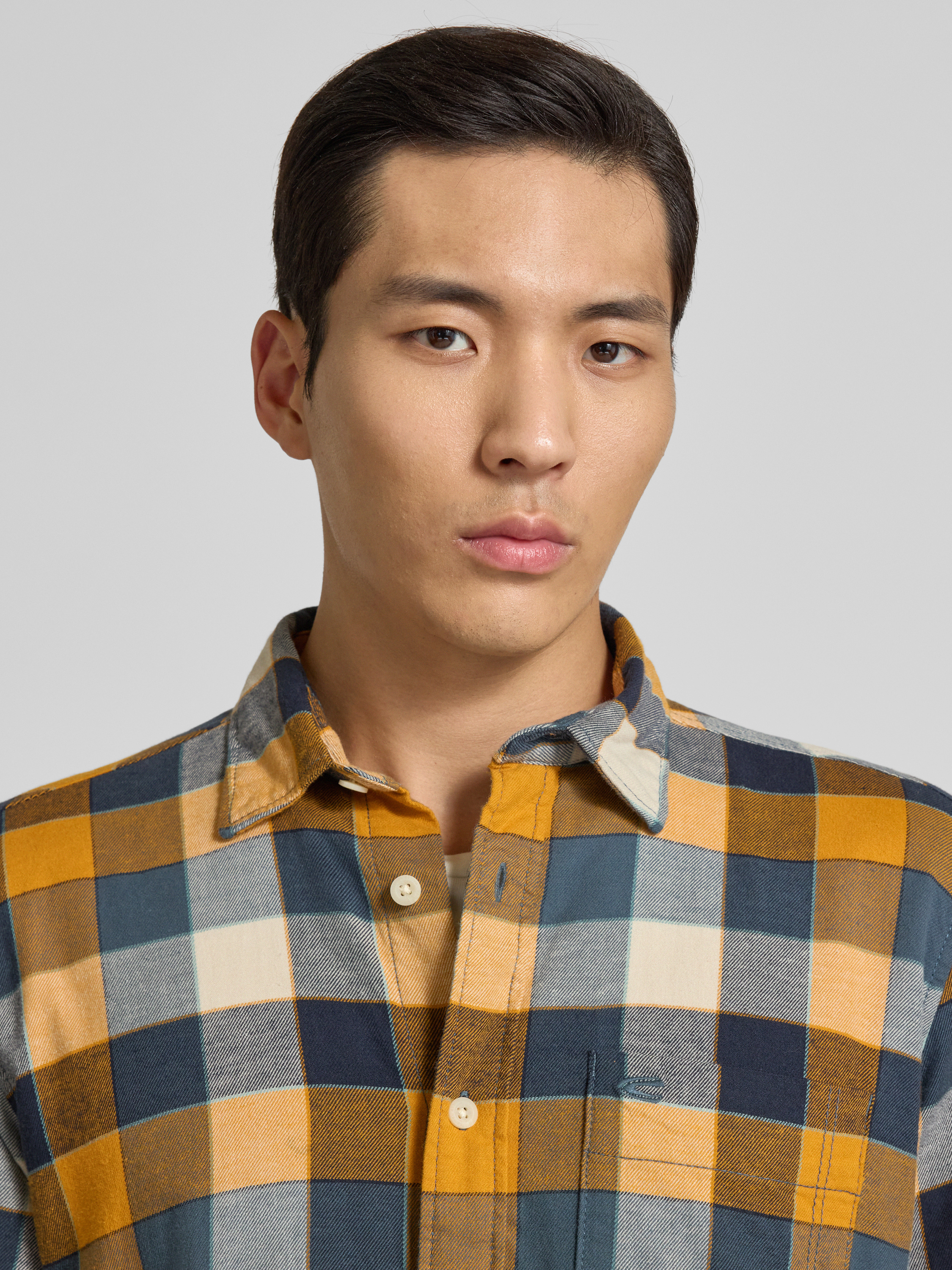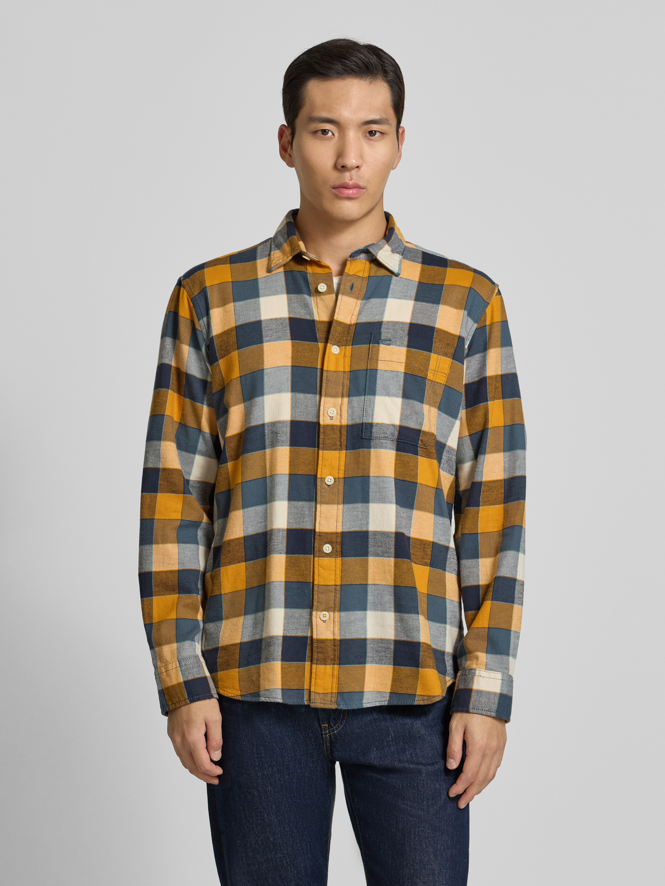 Regular fit vrijetijdsoverhemd van flanel met labelstitching in oranje