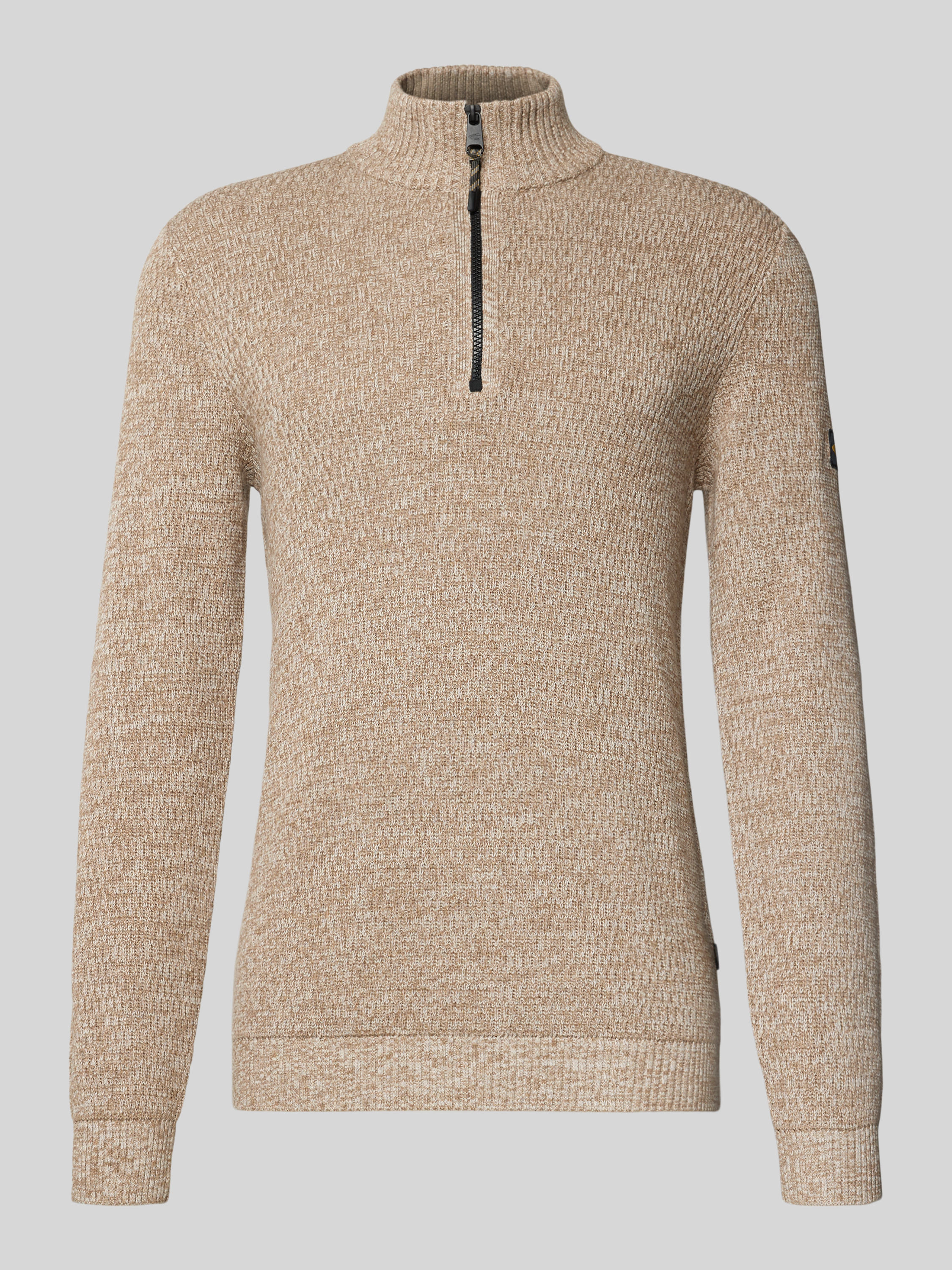 Slim fit schipperstrui met ritssluiting, model 'Mouline' in offwhite gemêleerd
