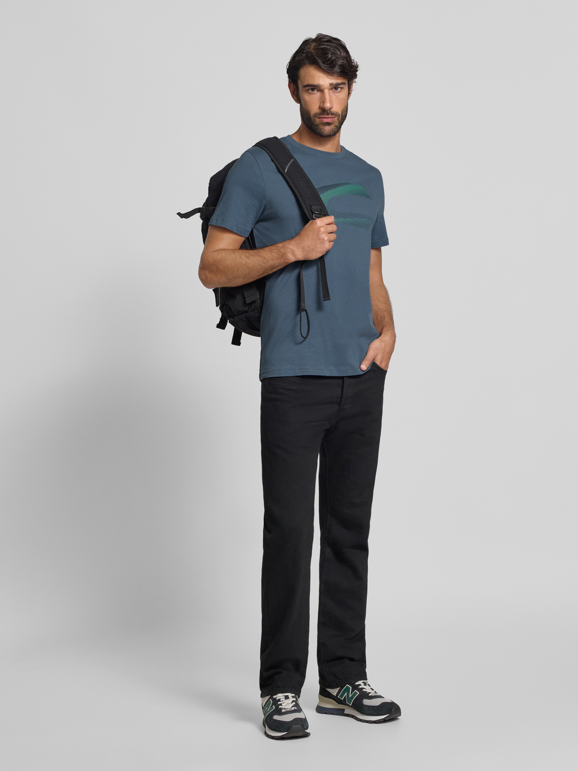 T-shirt met labelprint in petrol
