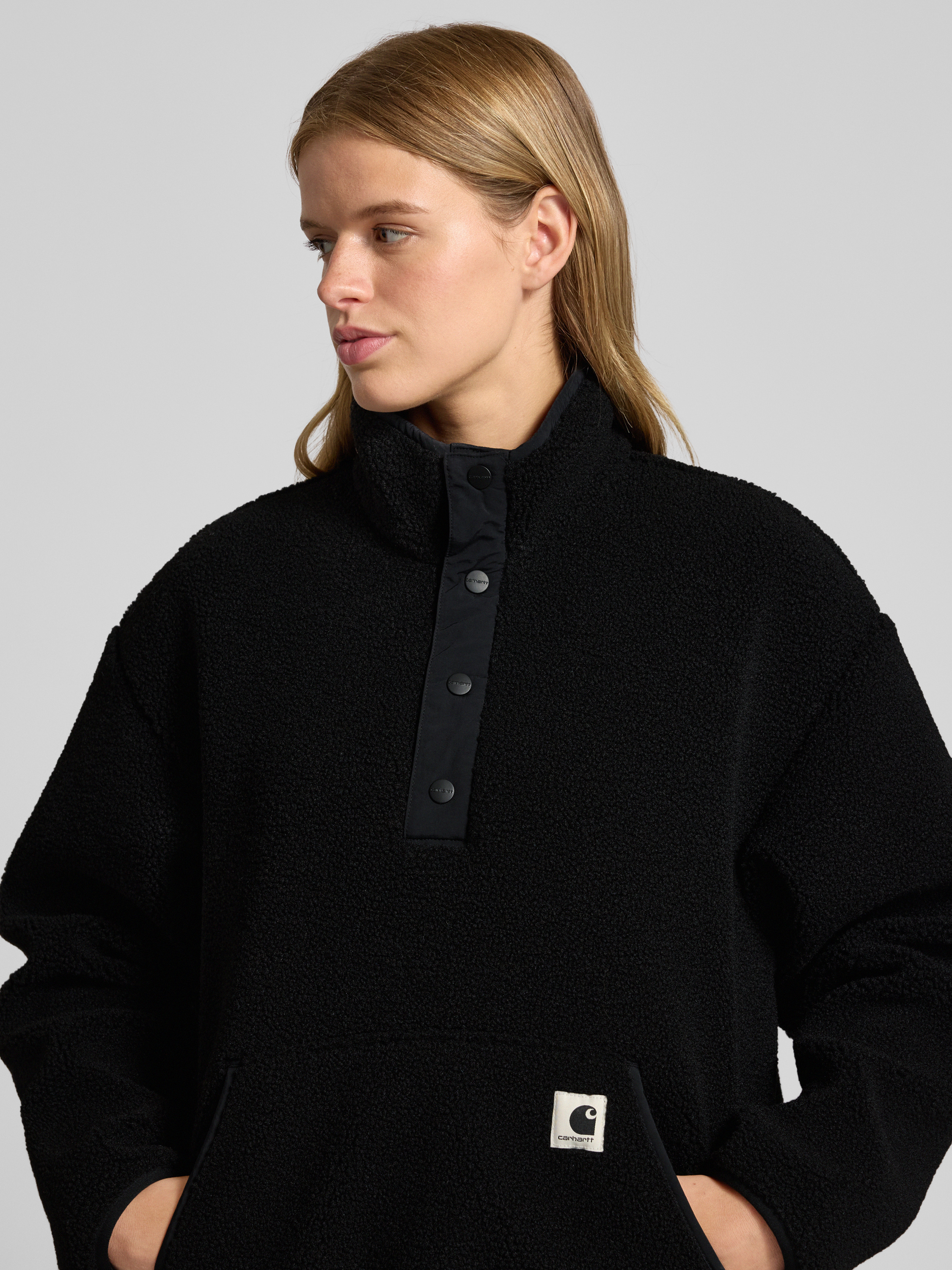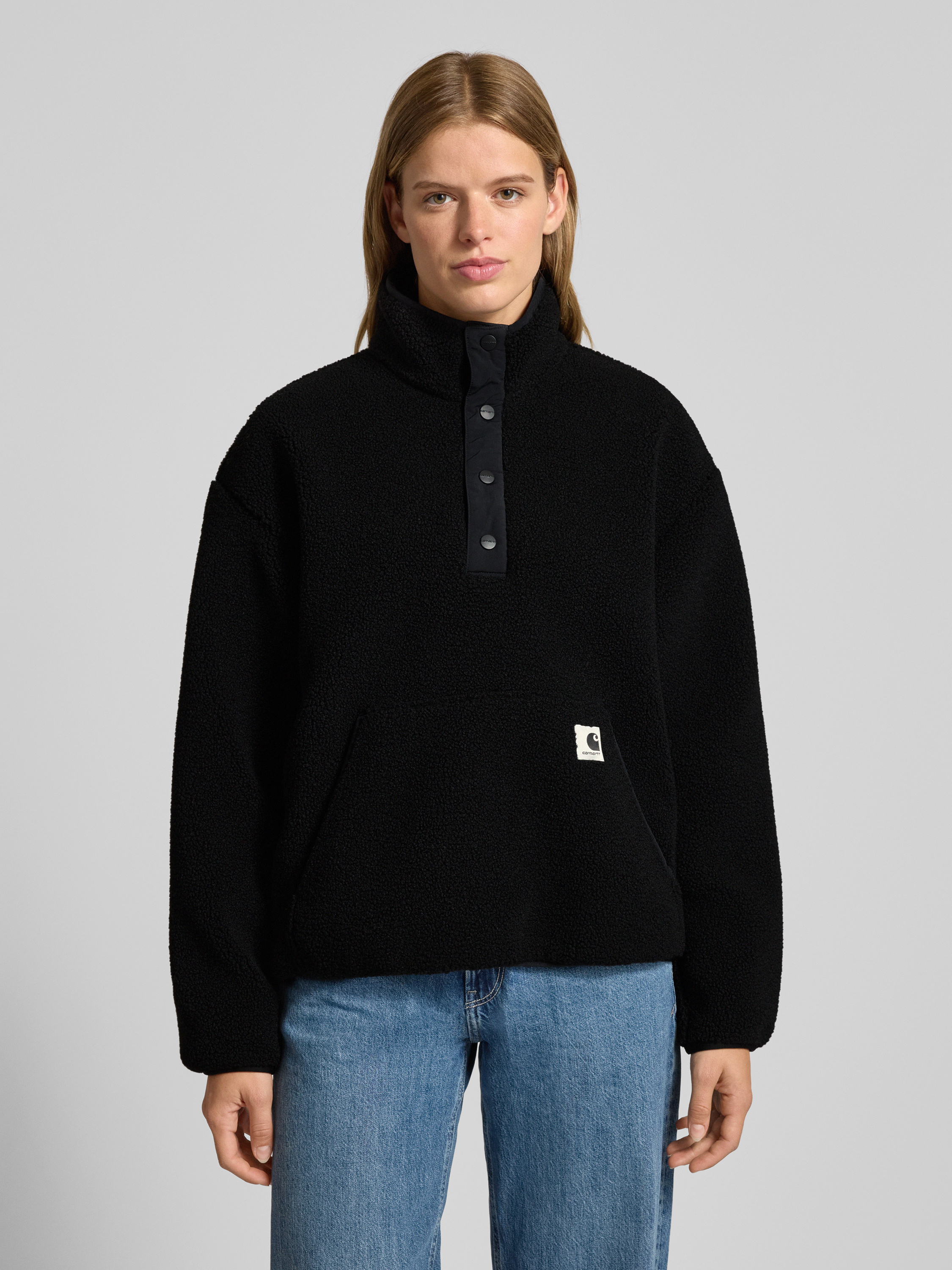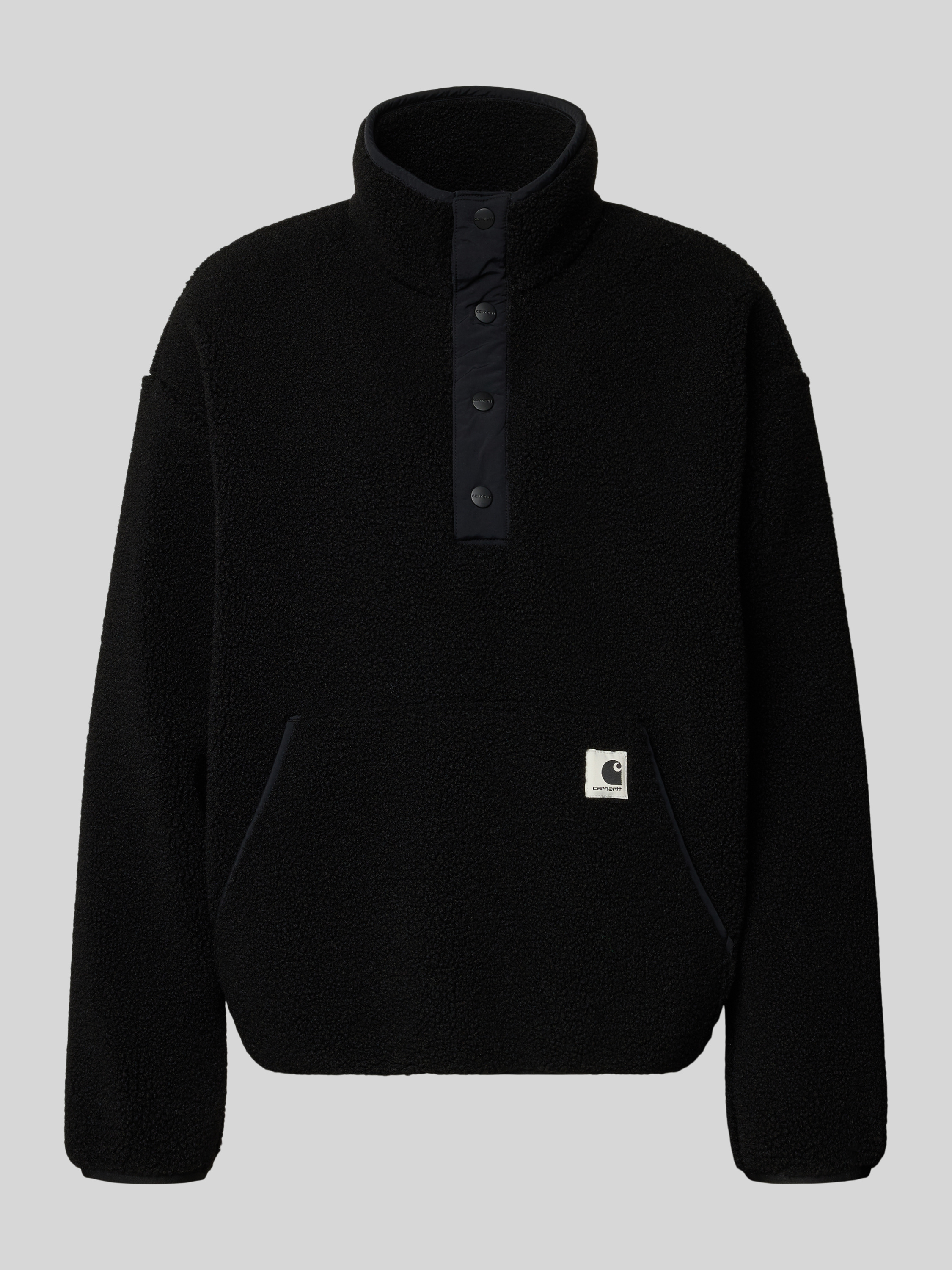 Fleecepullover met opstaande kraag en kangoeroezak, model 'ELLIOT' in zwart