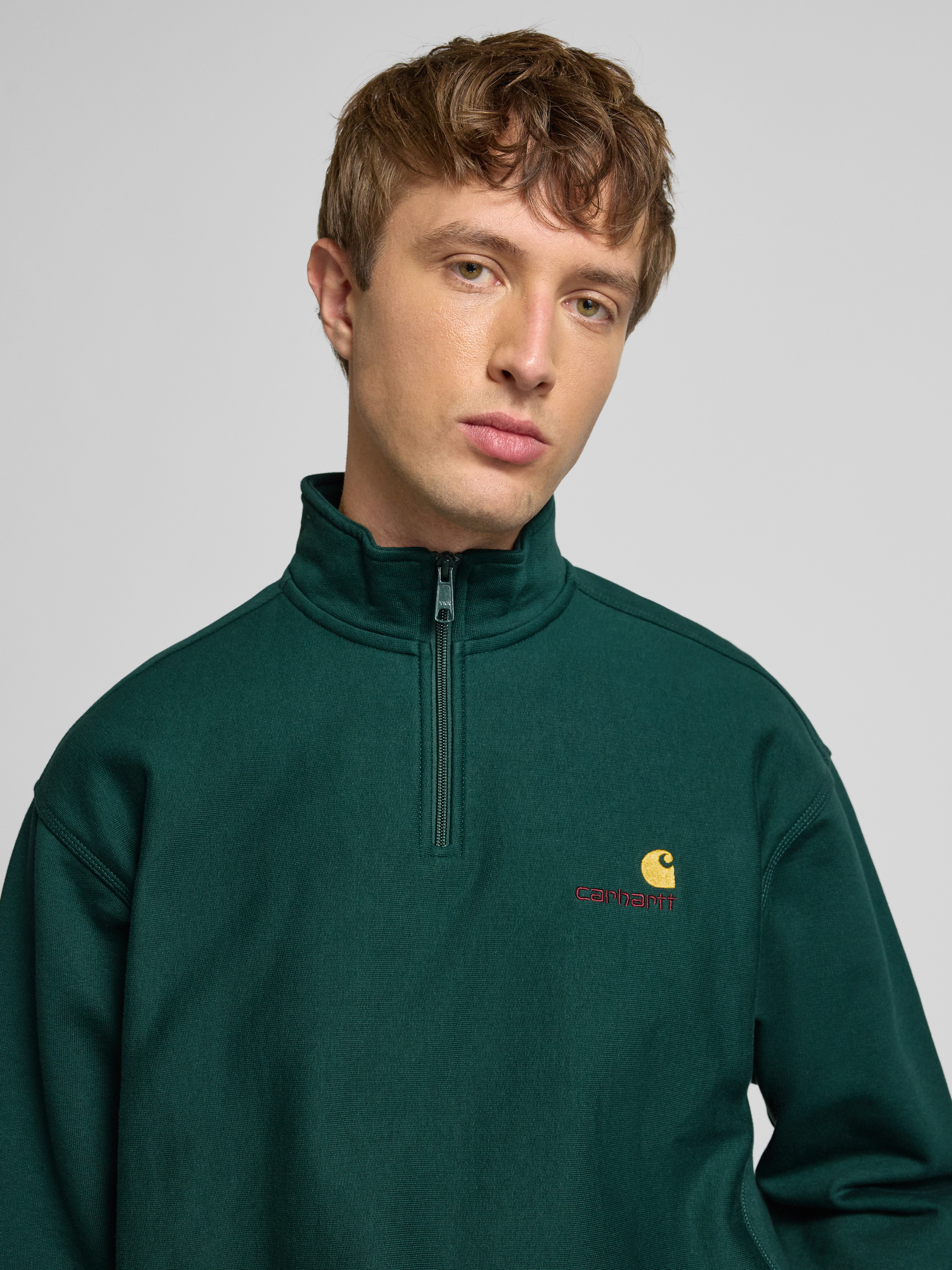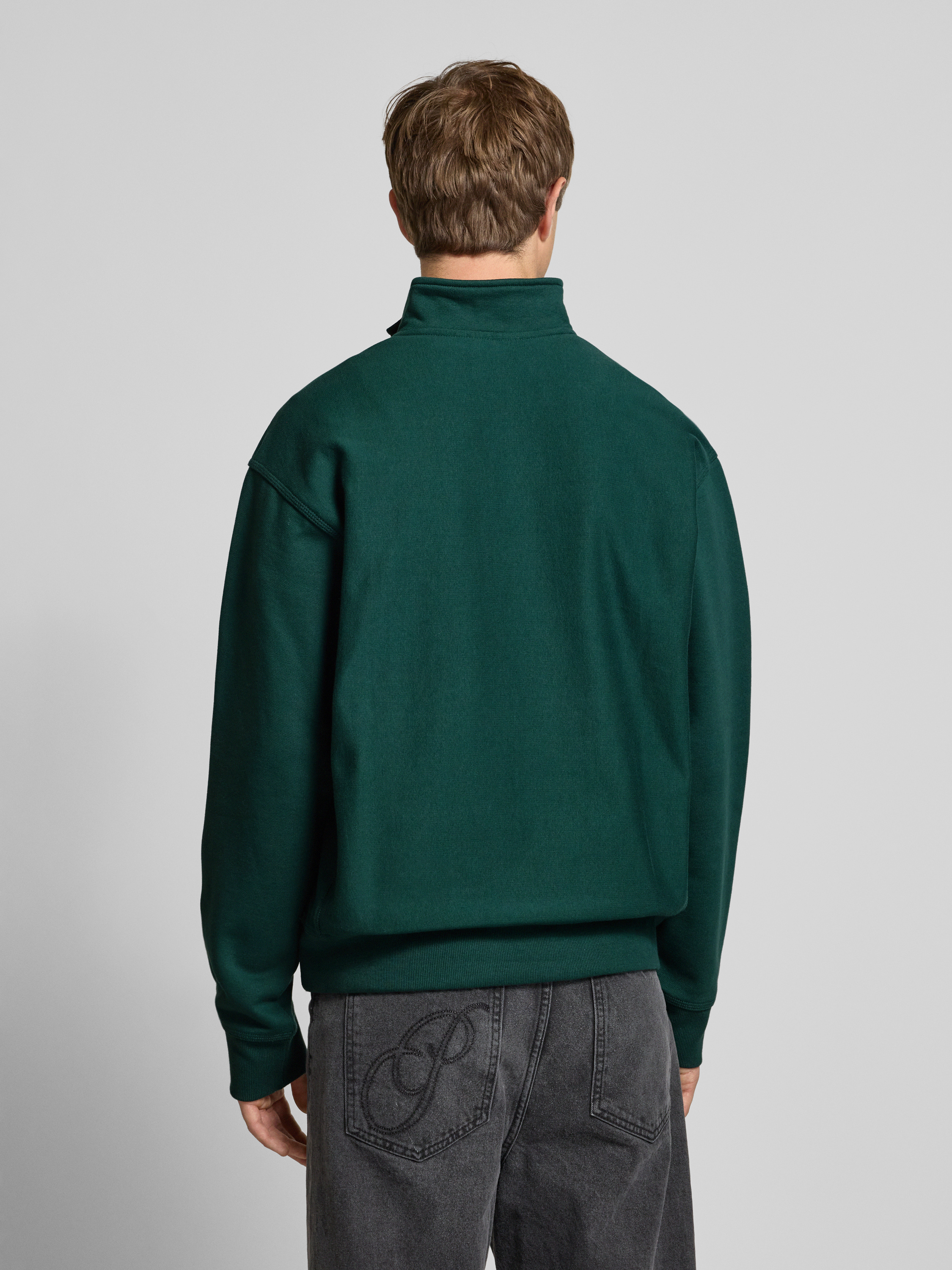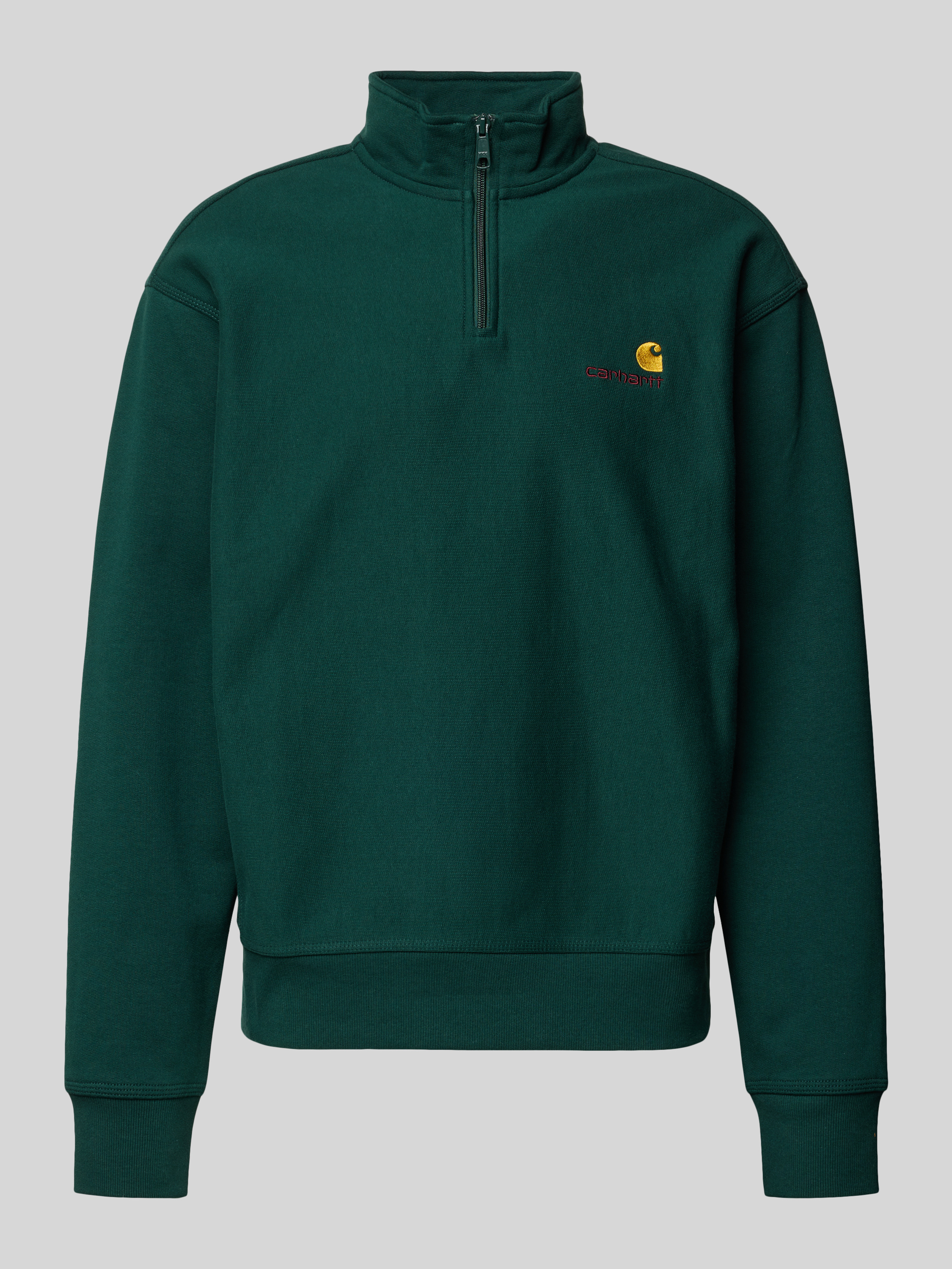 Sweatshirt met opstaande kraag en ritssluiting in donkergroen