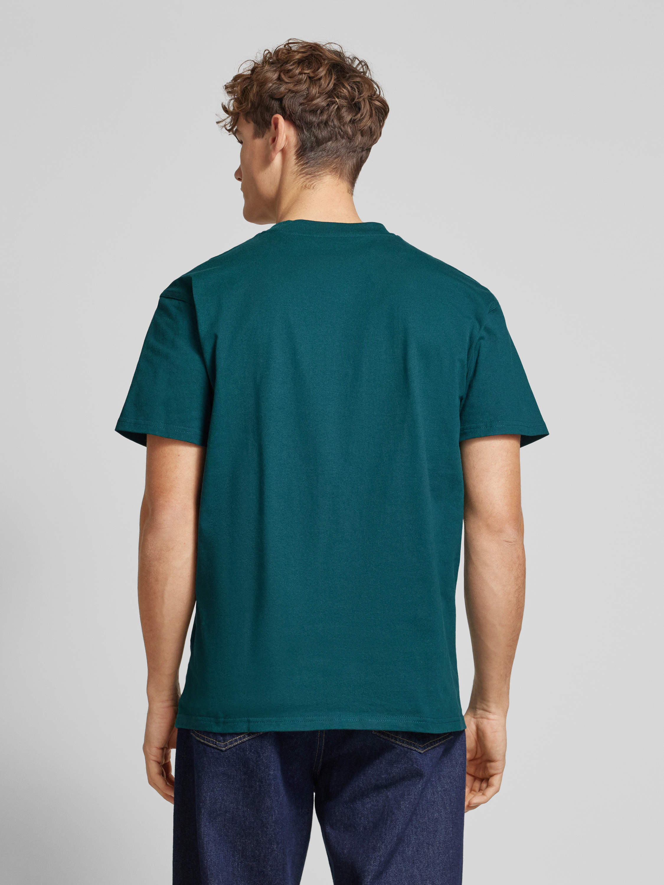 T-shirt met labelstitching in petrol