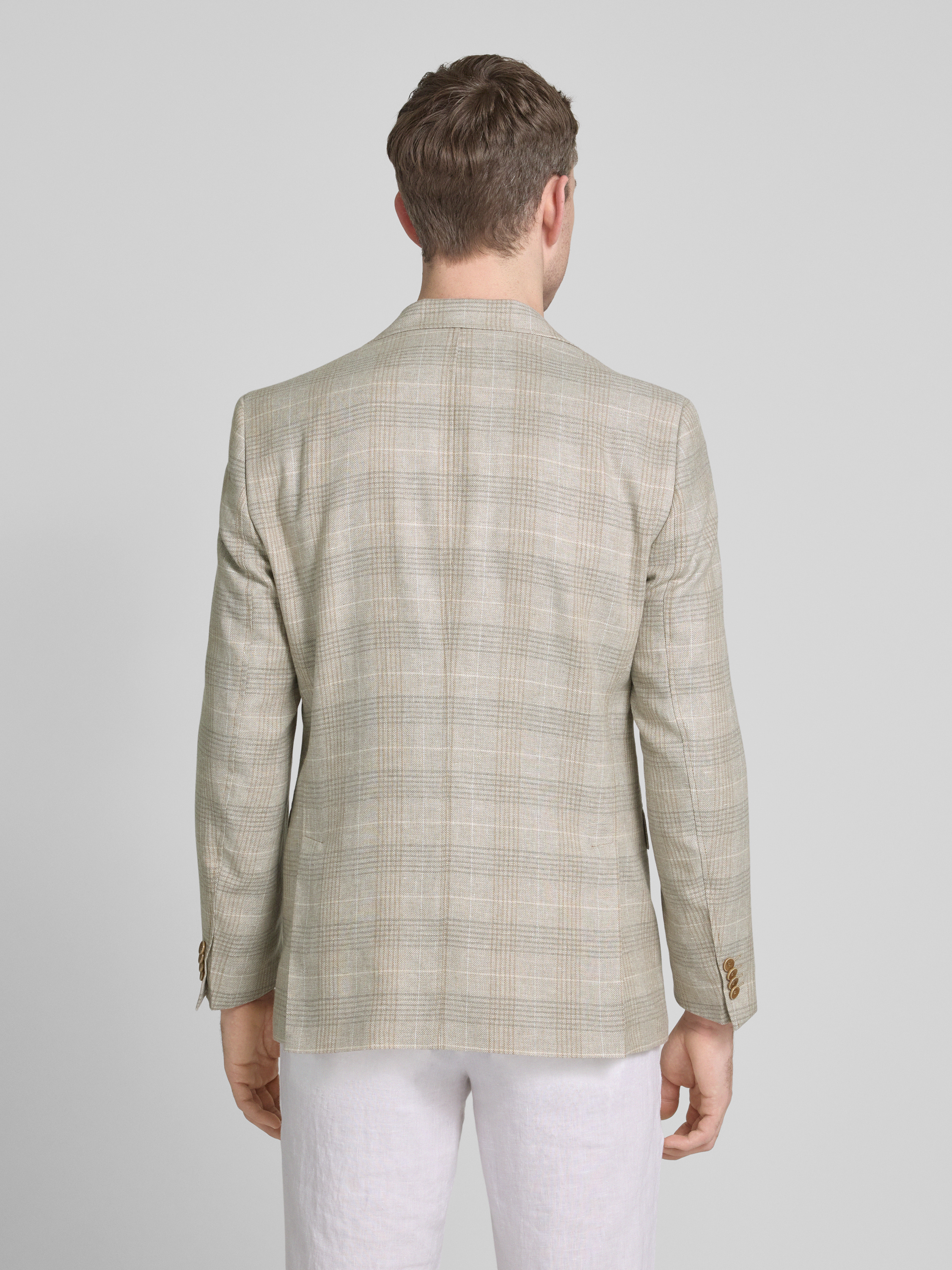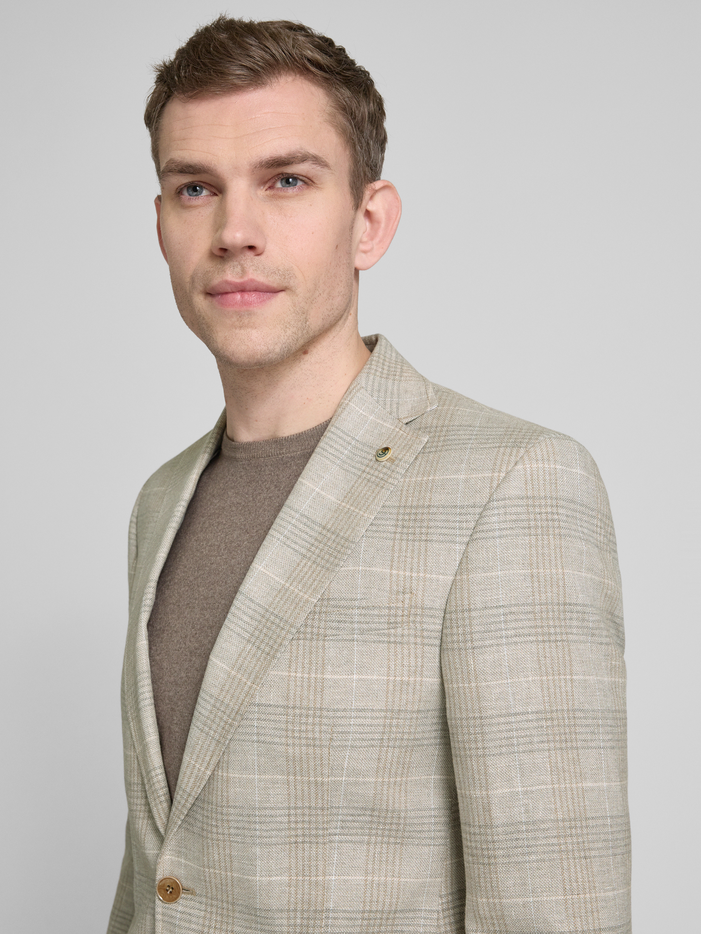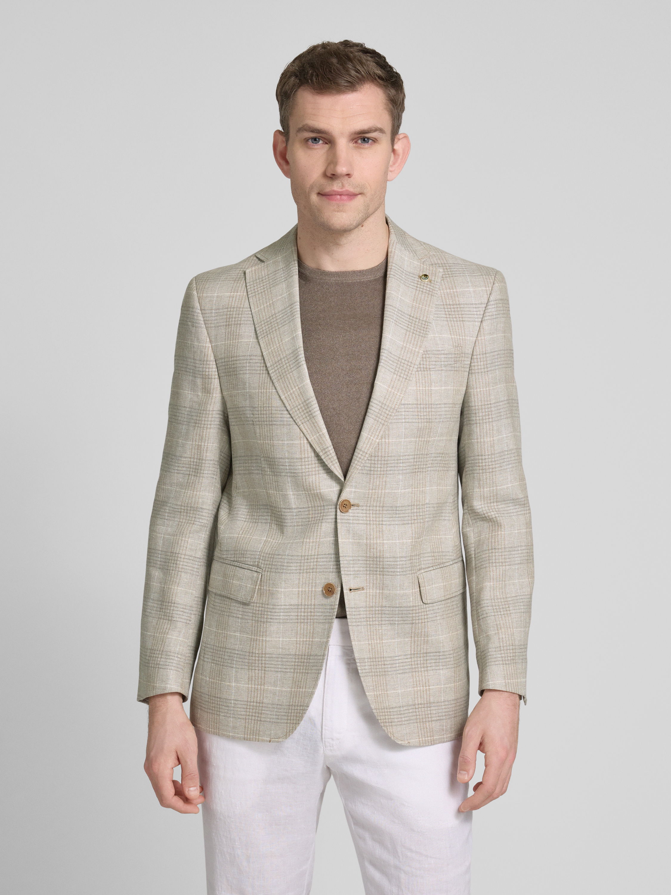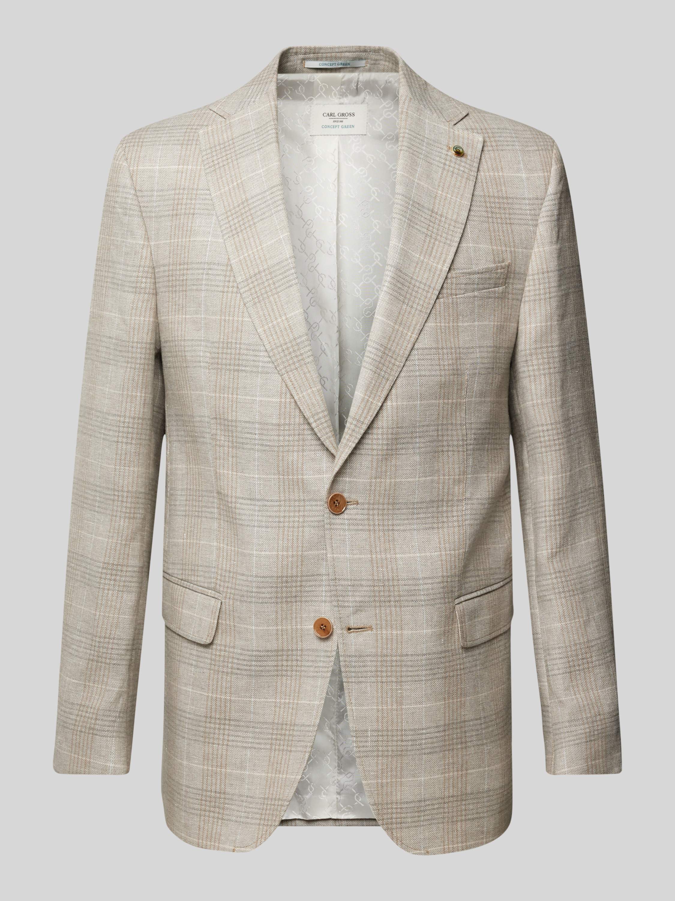 Carl GrossSlim fit 2-knoops colbert met linnen, model 'Theo' in zilver
