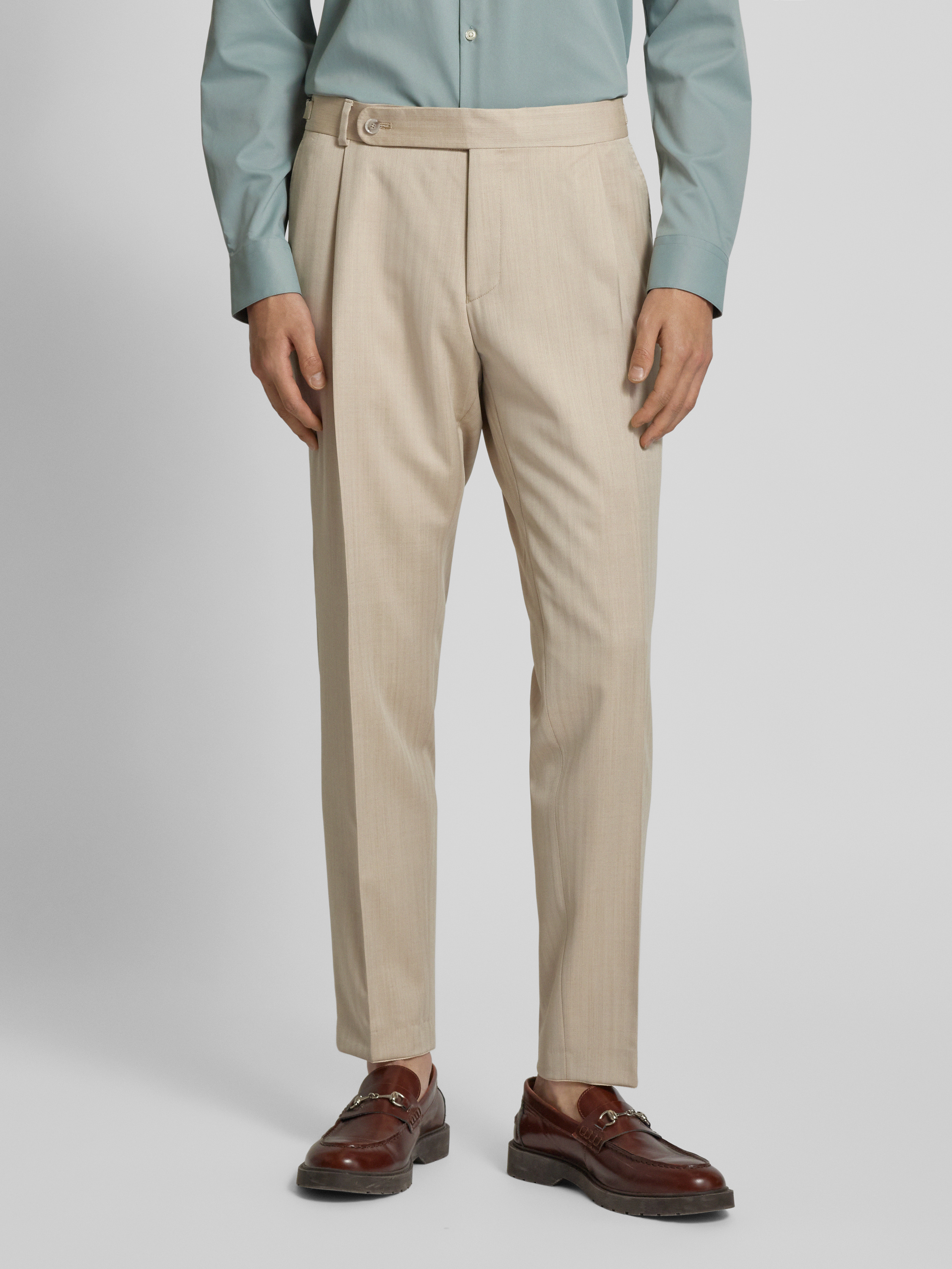 Slim fit pantalon met persplooien, model 'Tarson' in beige
