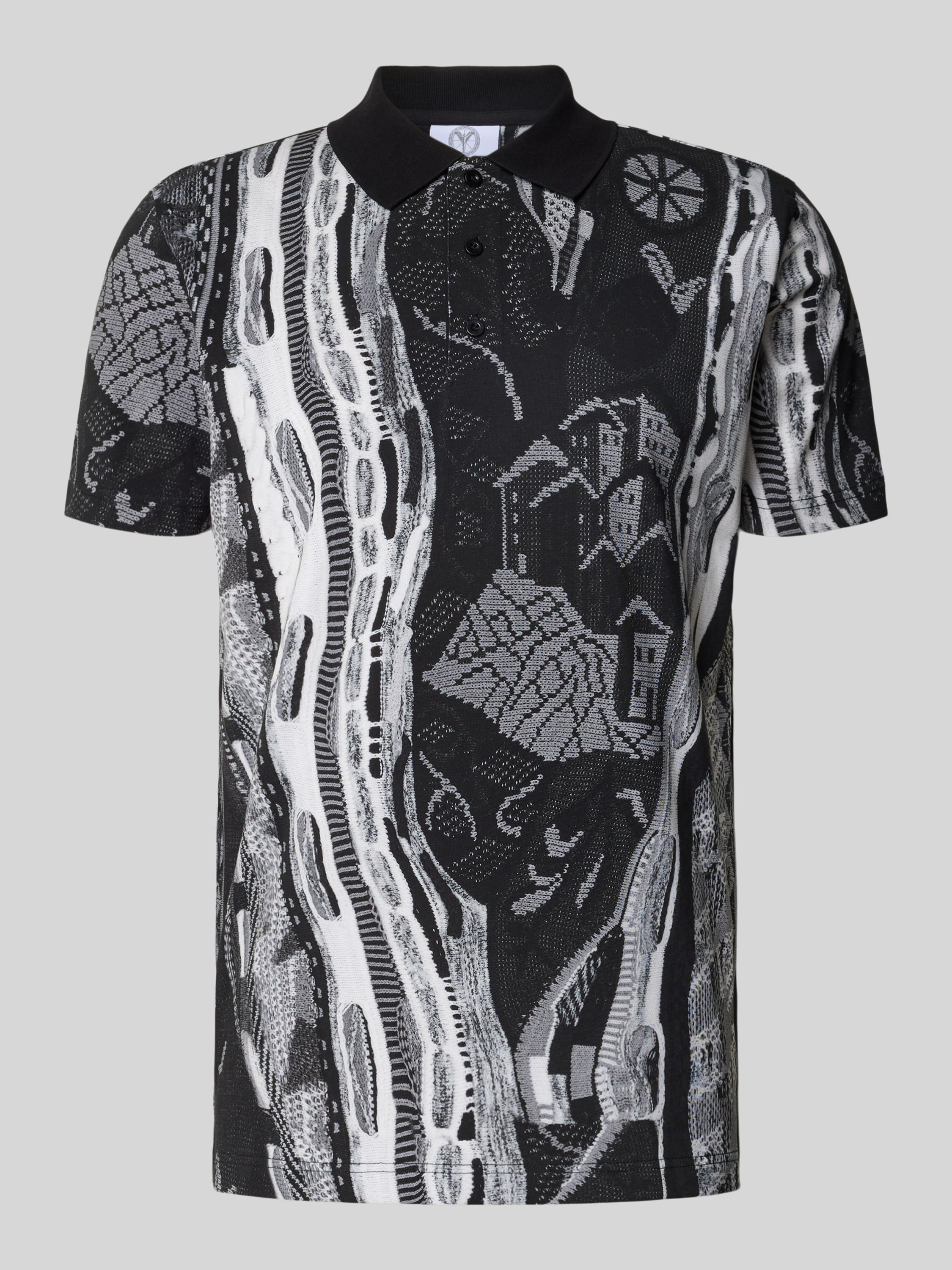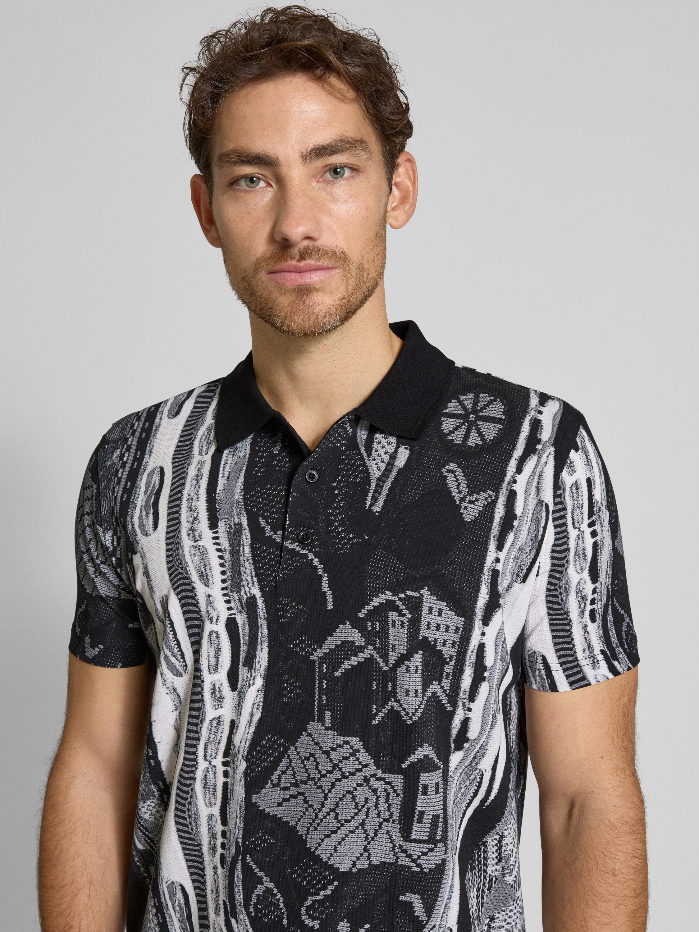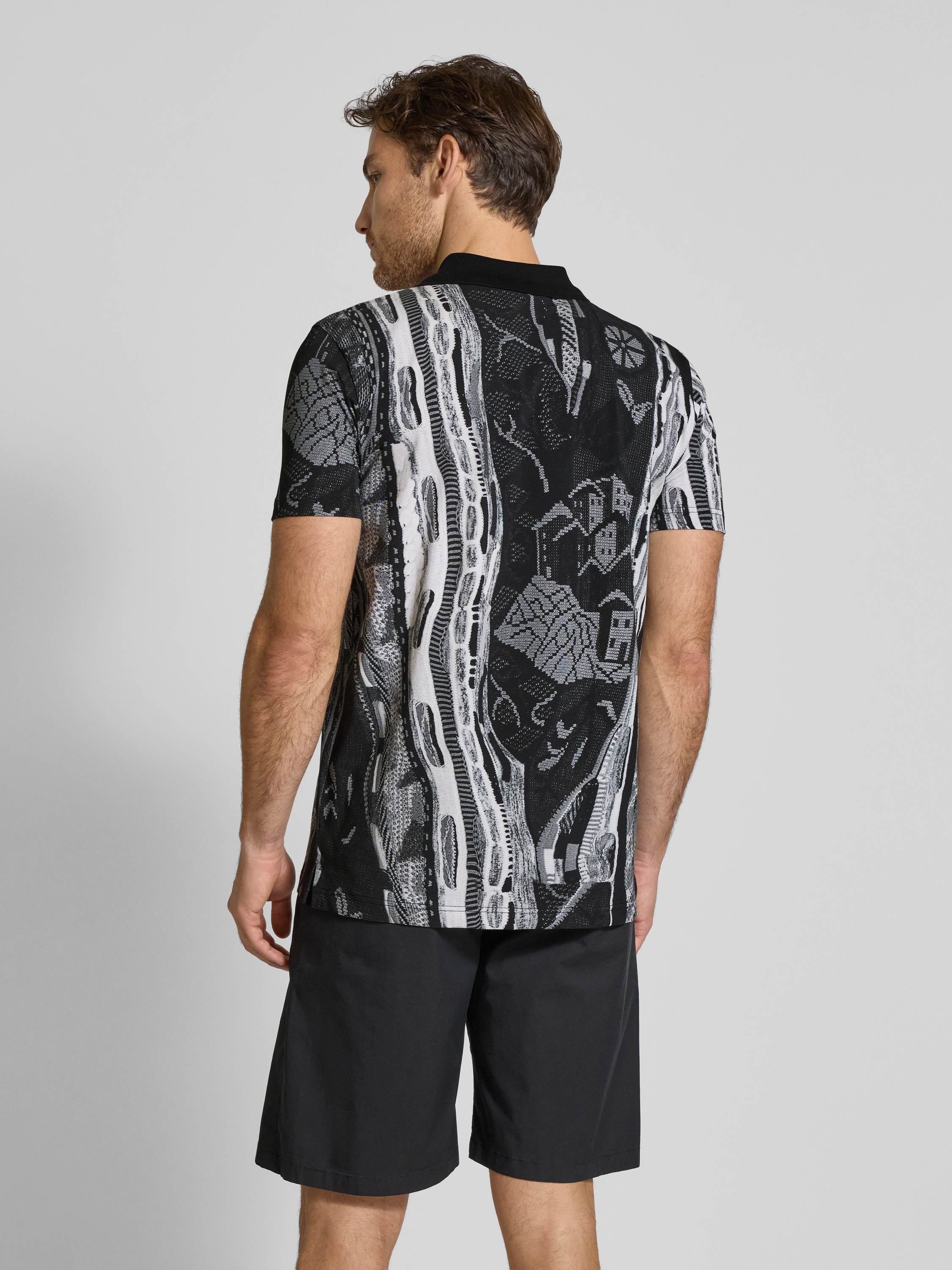 Regular fit poloshirt met korte knoopsluiting in antraciet gemêleerd