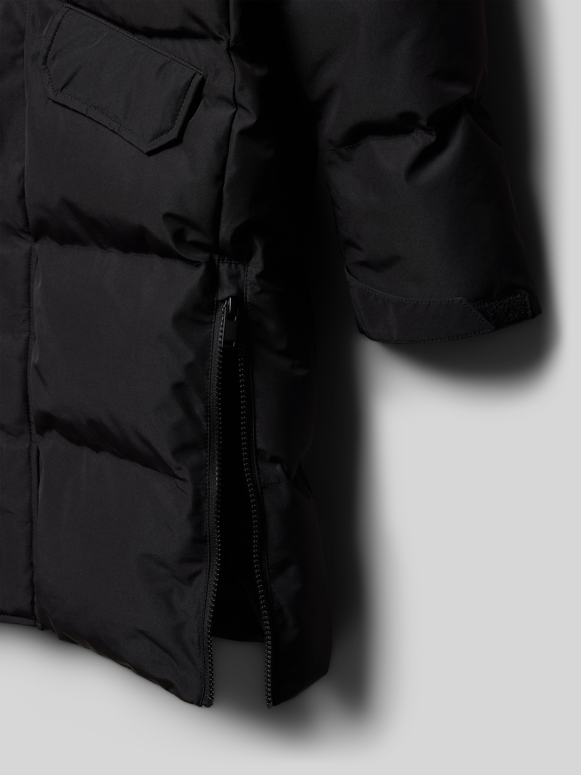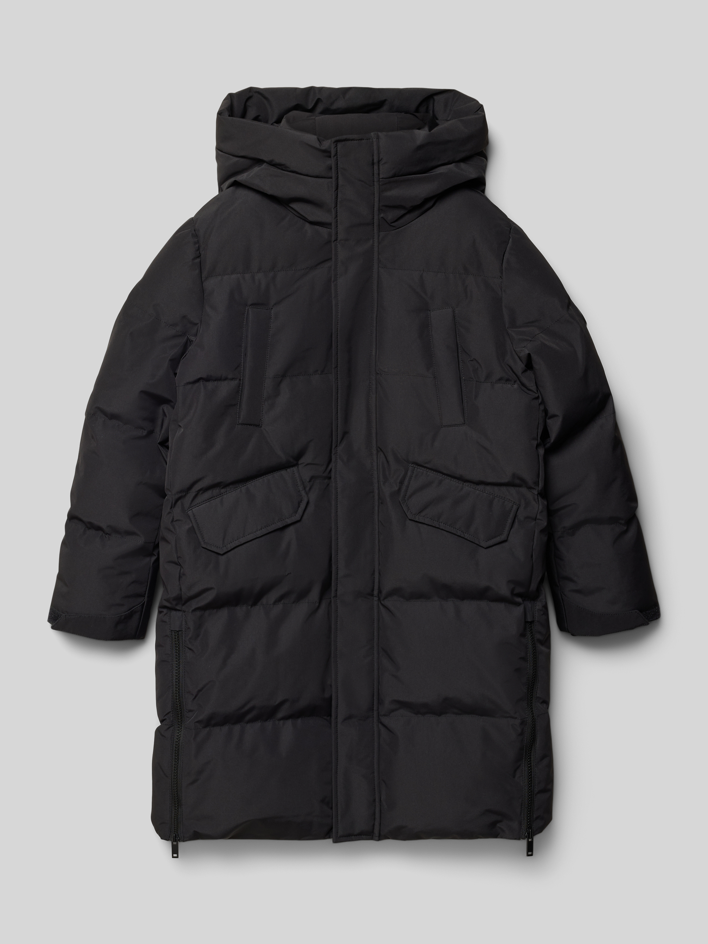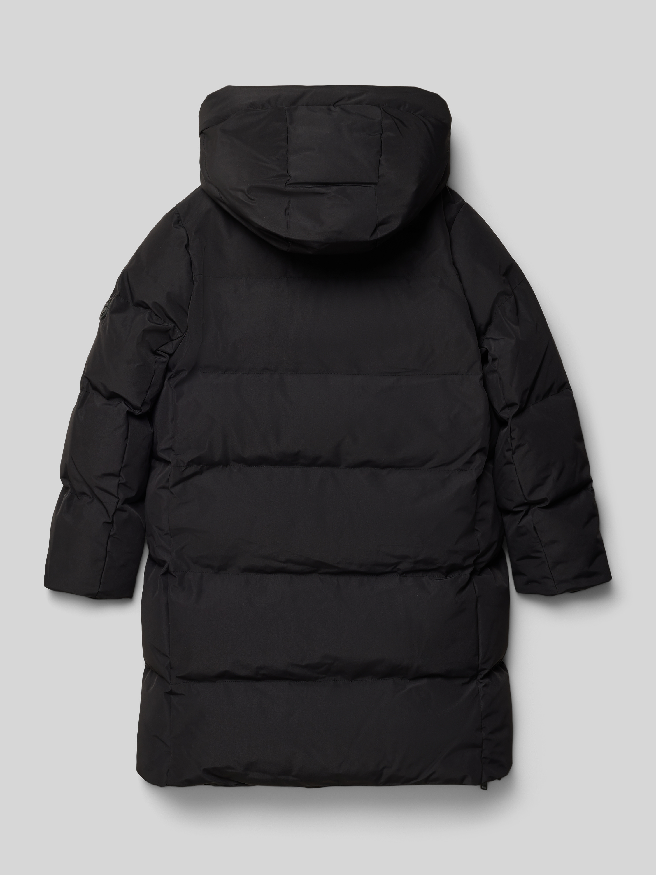 Gewatteerde lange jas met capuchon, model 'BEALLA' in zwart