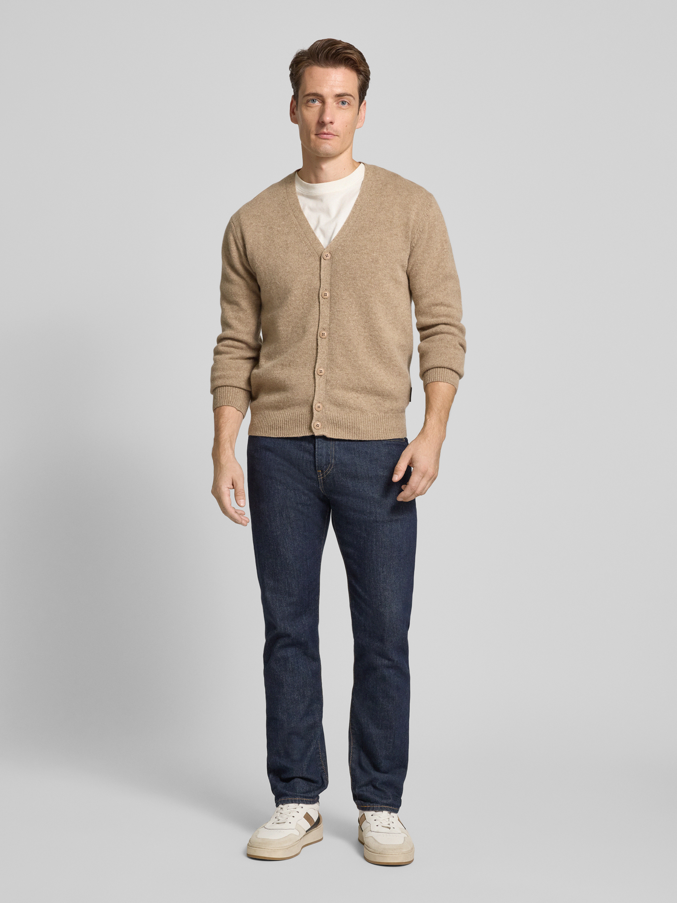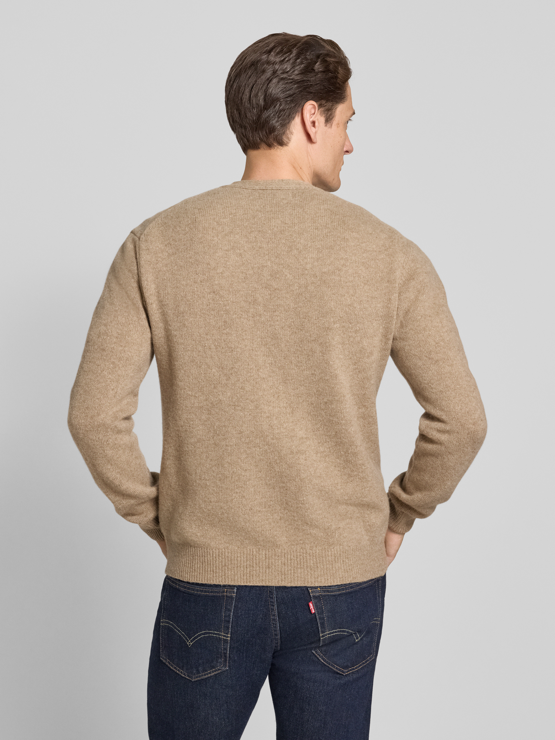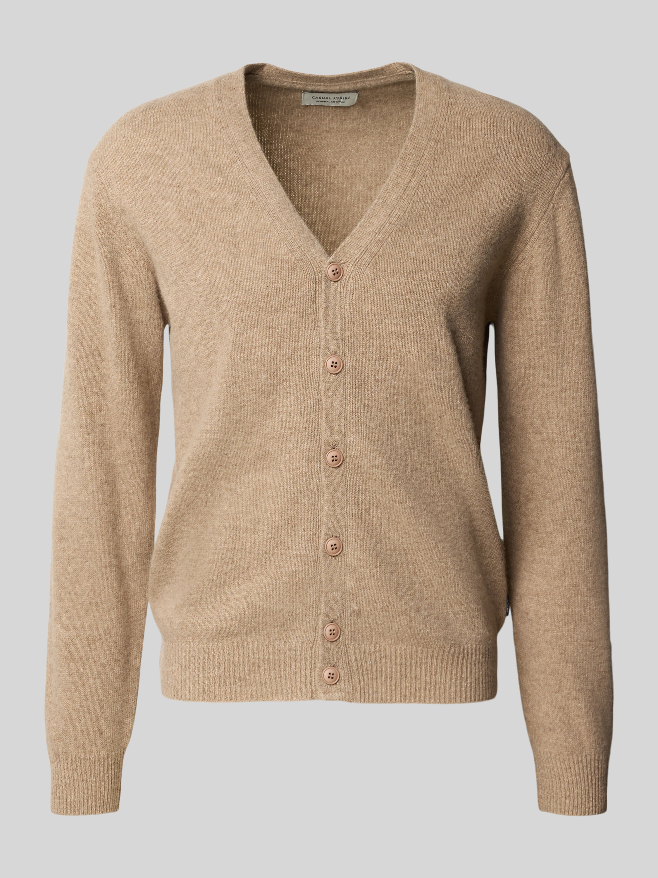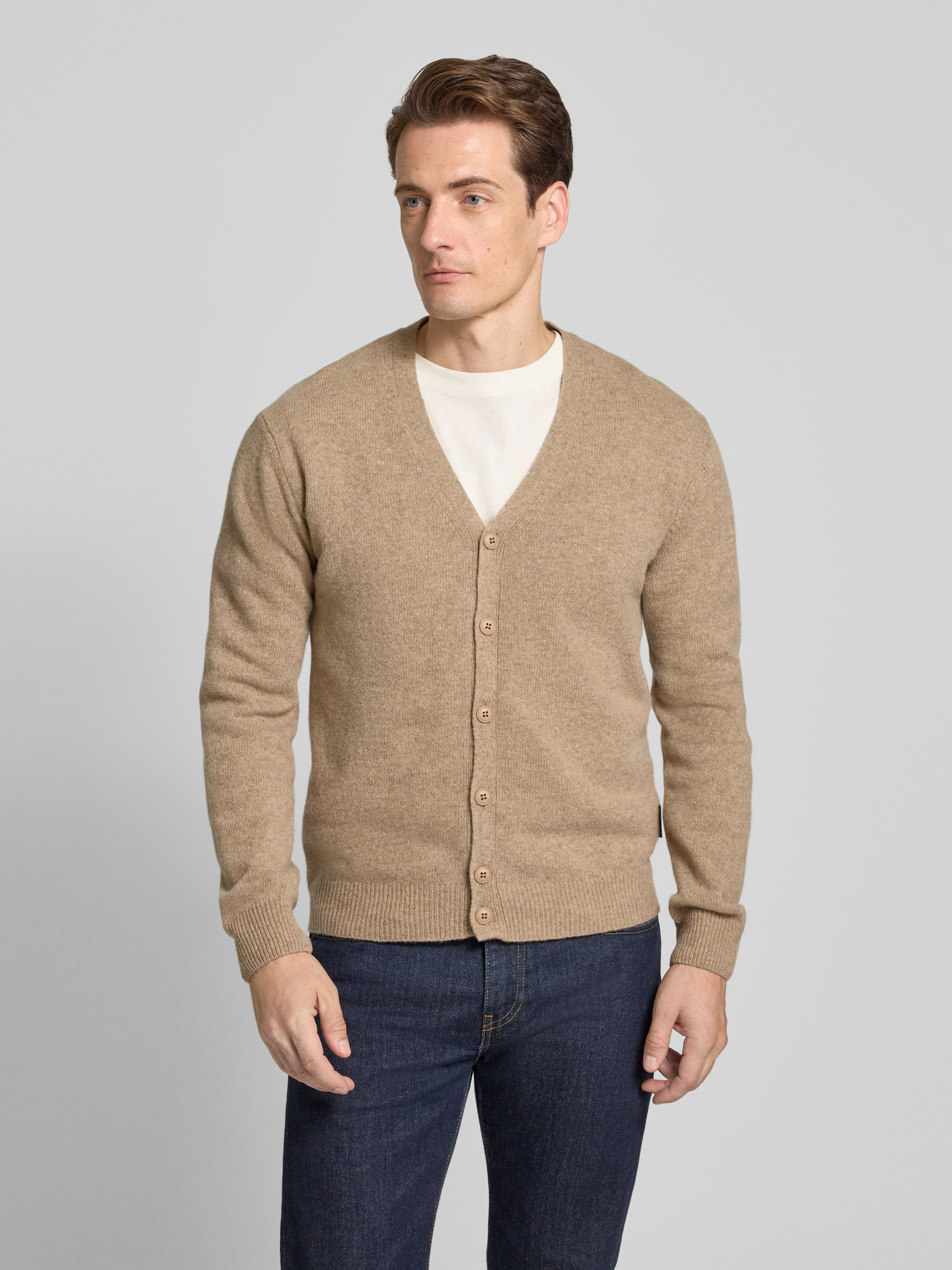 Gebreid jack met V-hals, model 'KARL' in camel gemêleerd