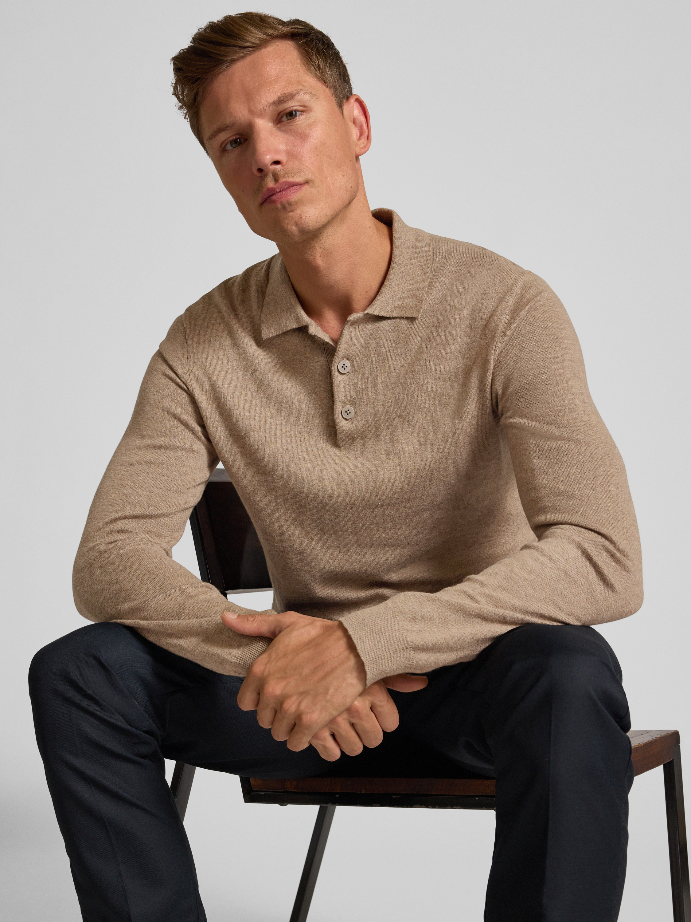 Gebreide pullover met kasjmier en polokraag, model 'FRODE' in beige