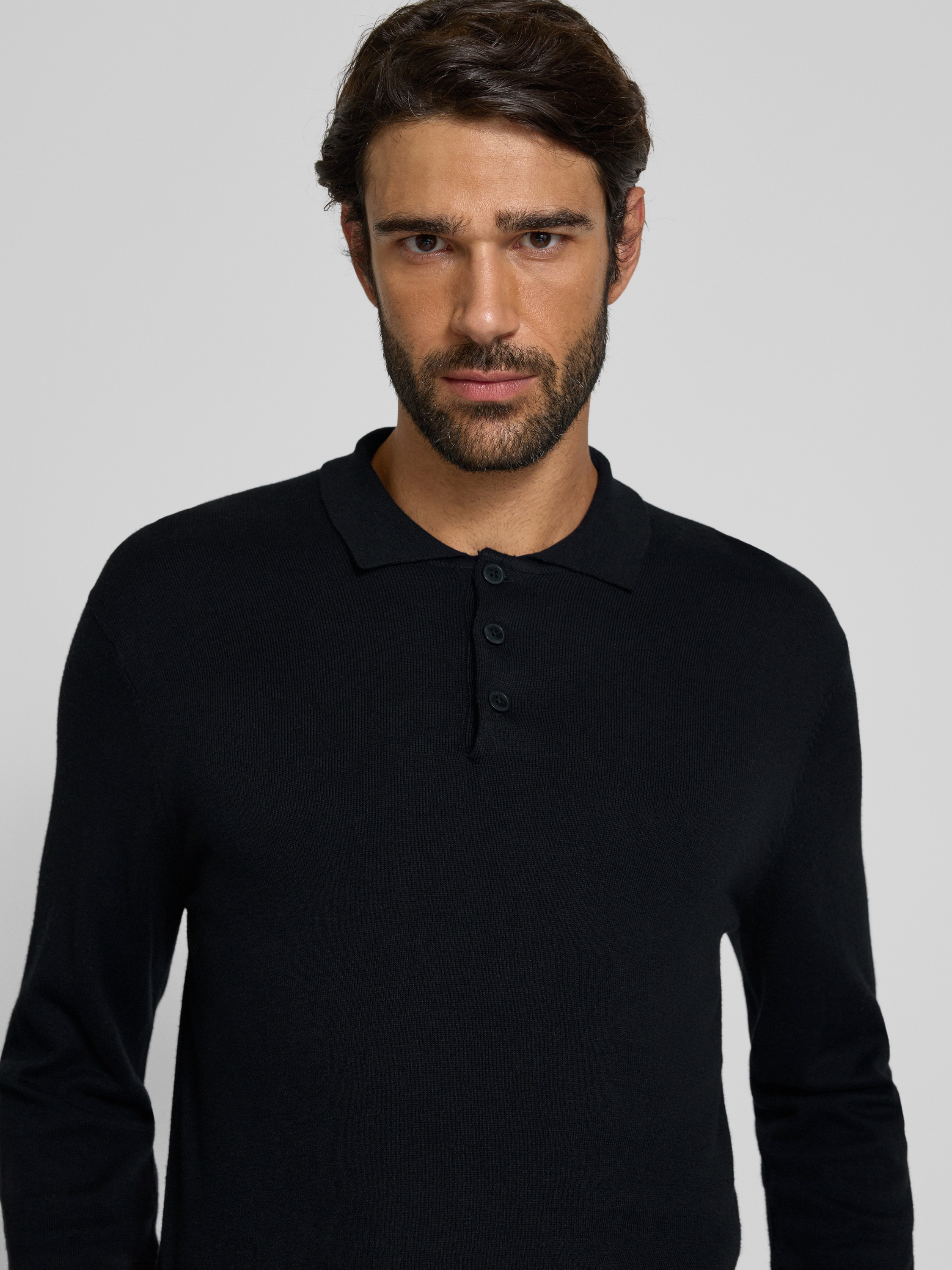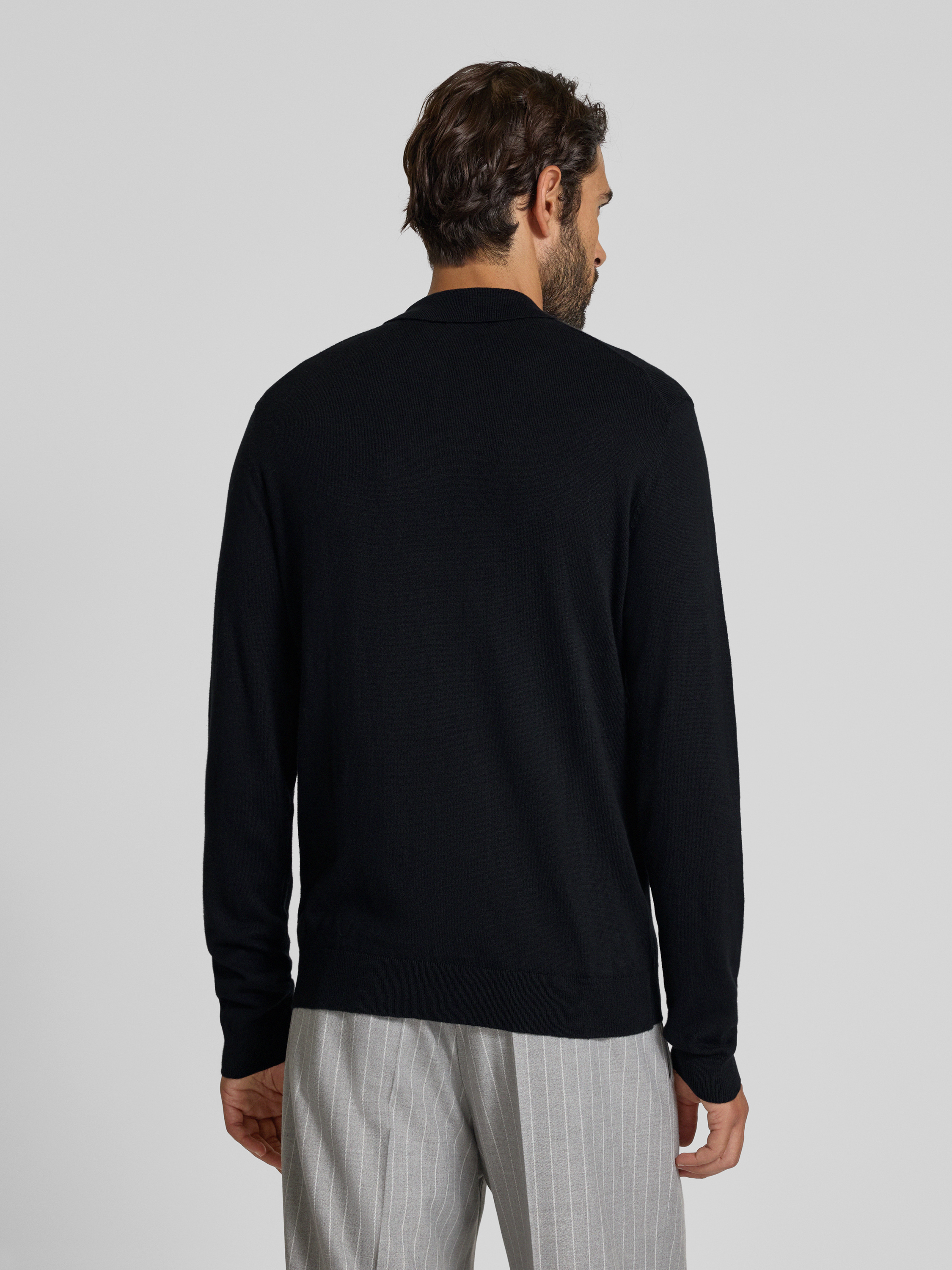 Gebreide pullover met kasjmier en polokraag, model 'FRODE' in zwart