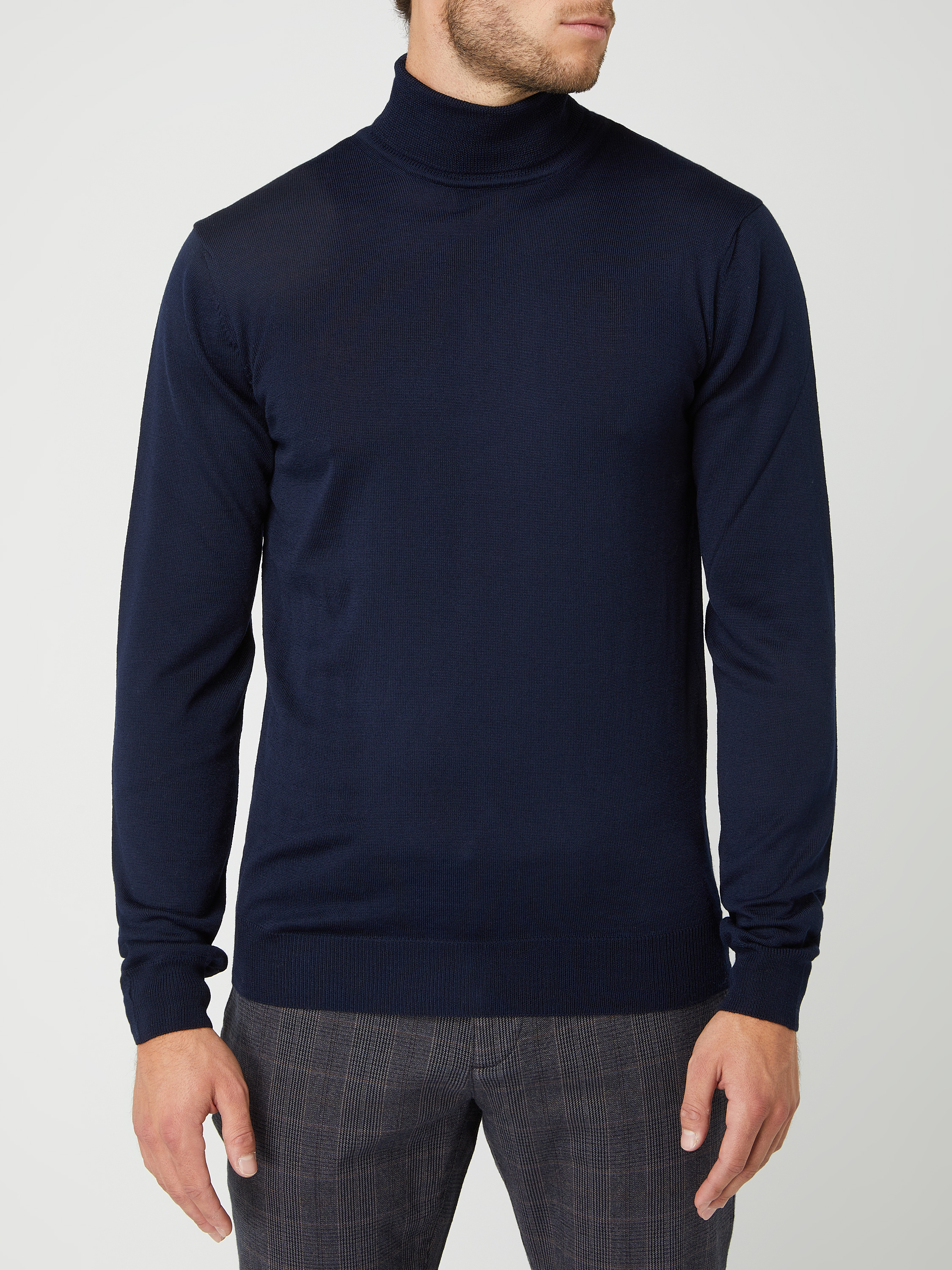 Casual FridayGebreide pullover met labeldetail in marineblauw