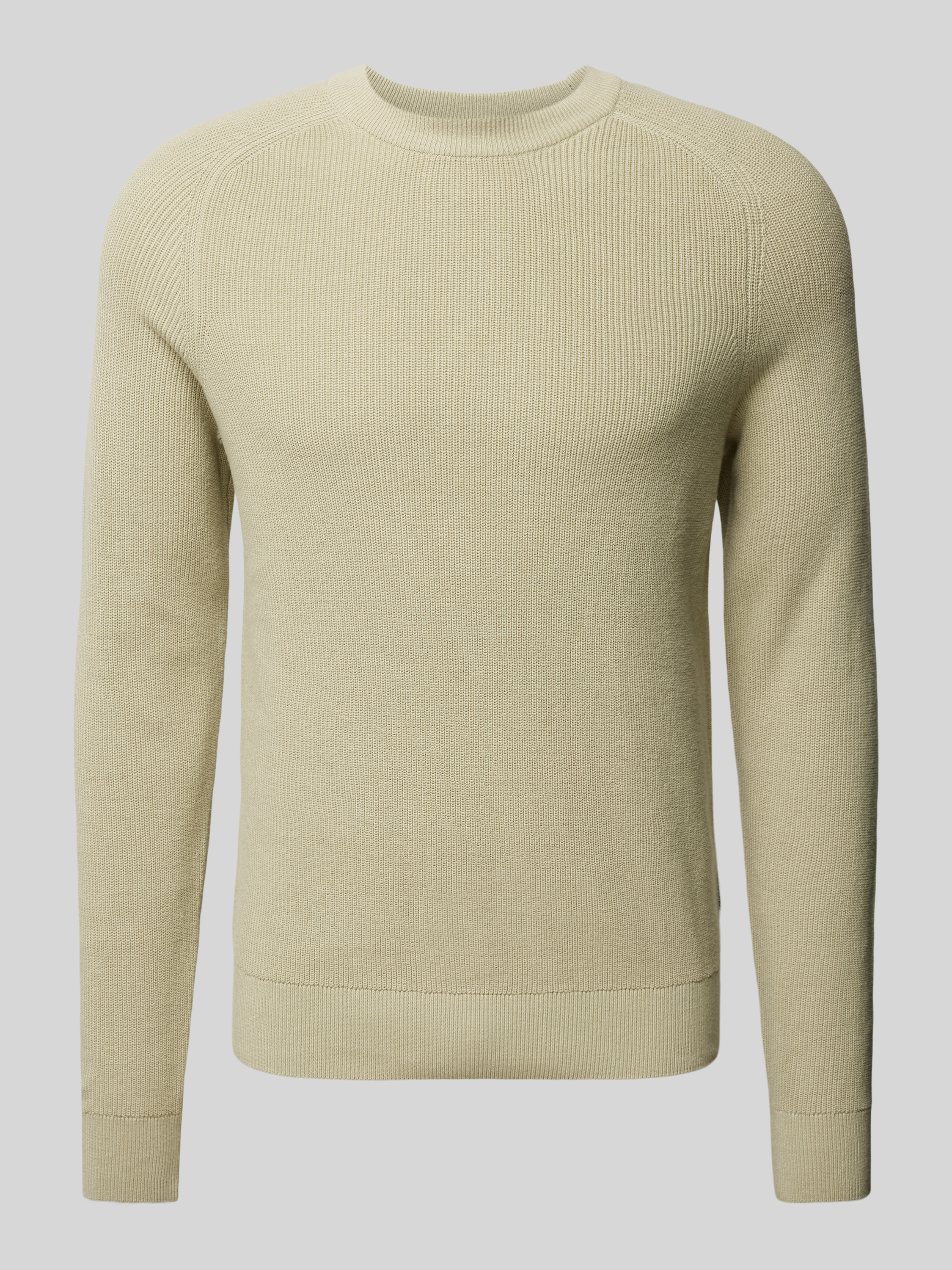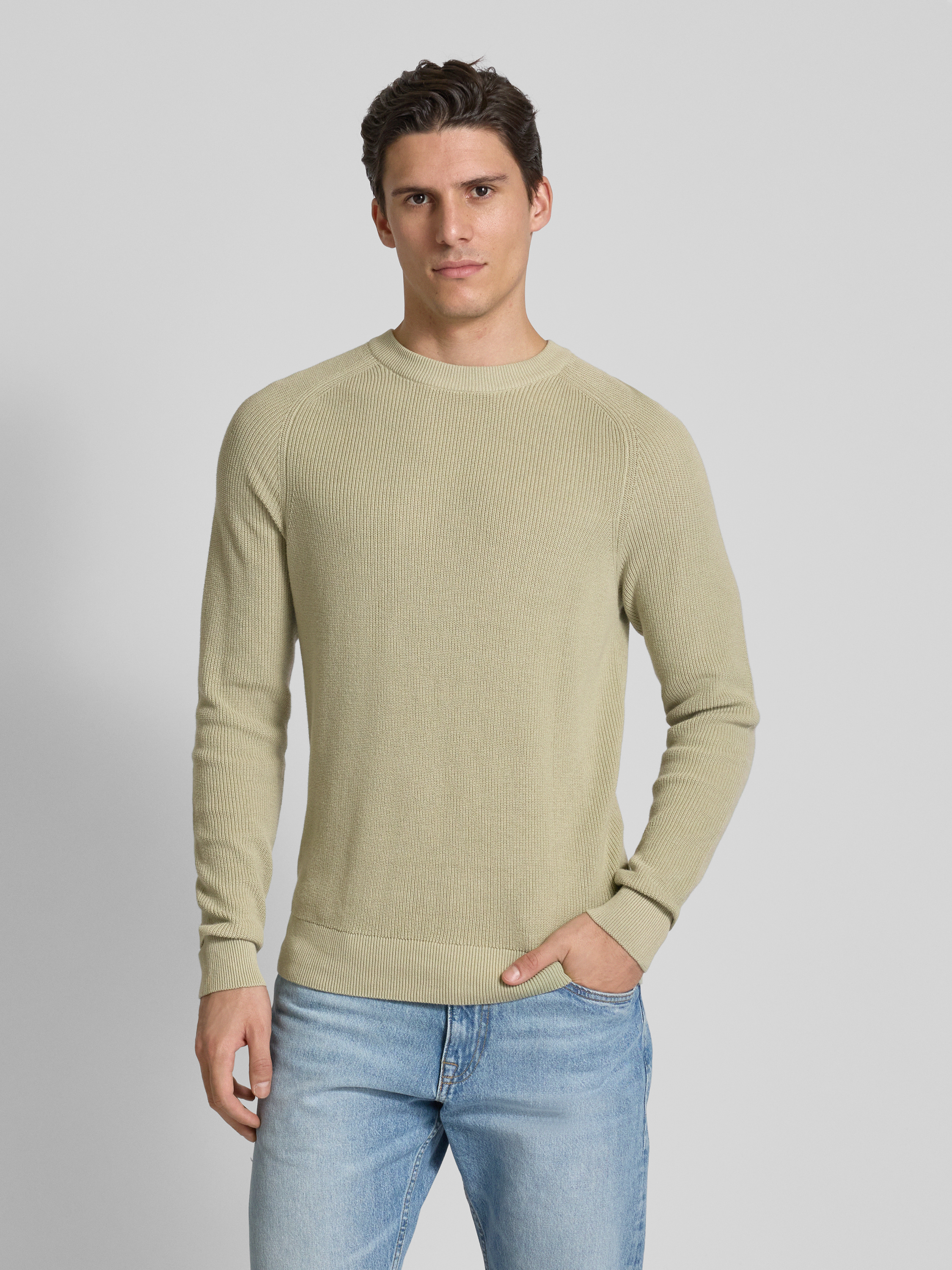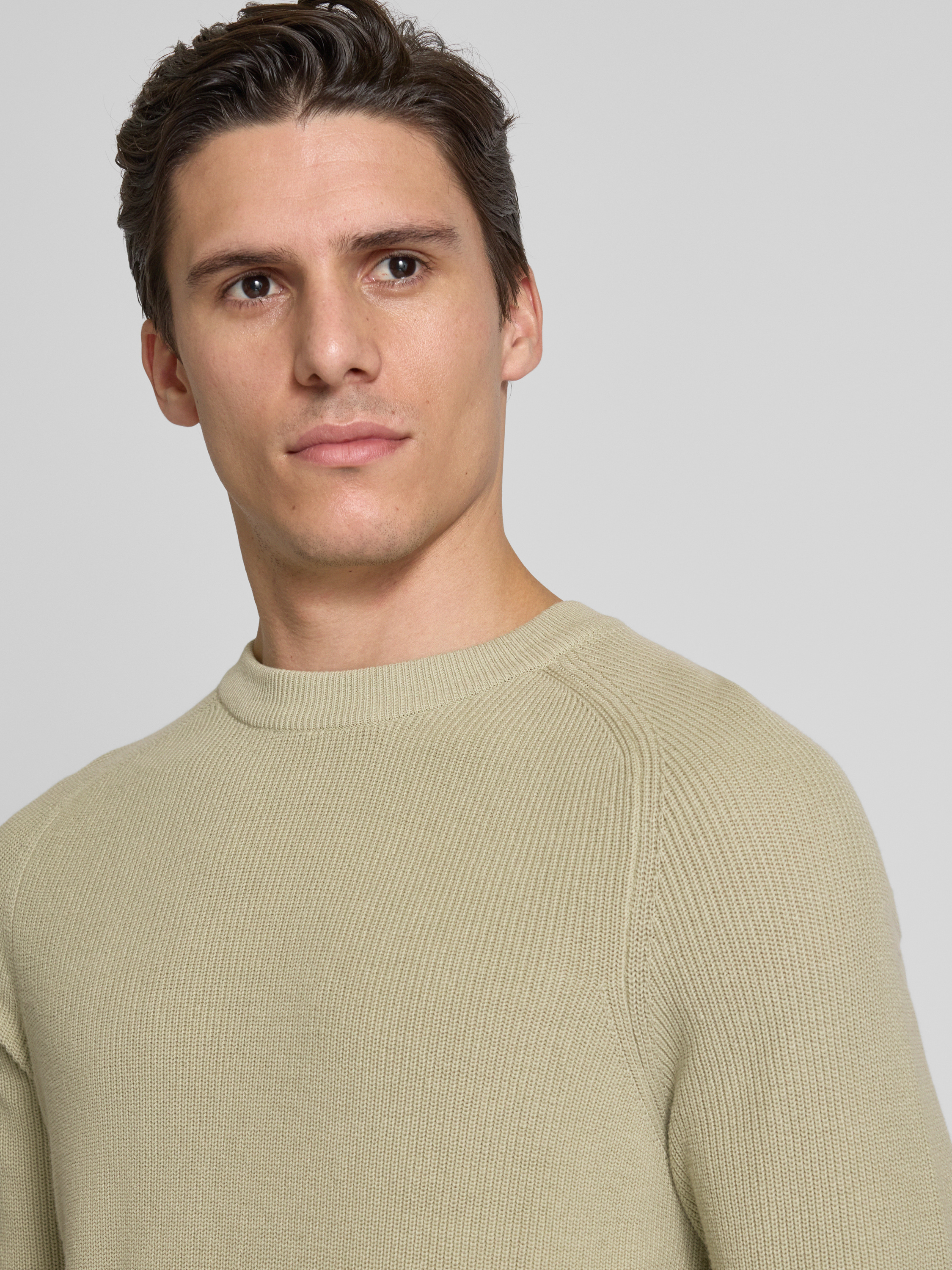 Gebreide pullover met ronde hals, model 'OLIVER' in kaki