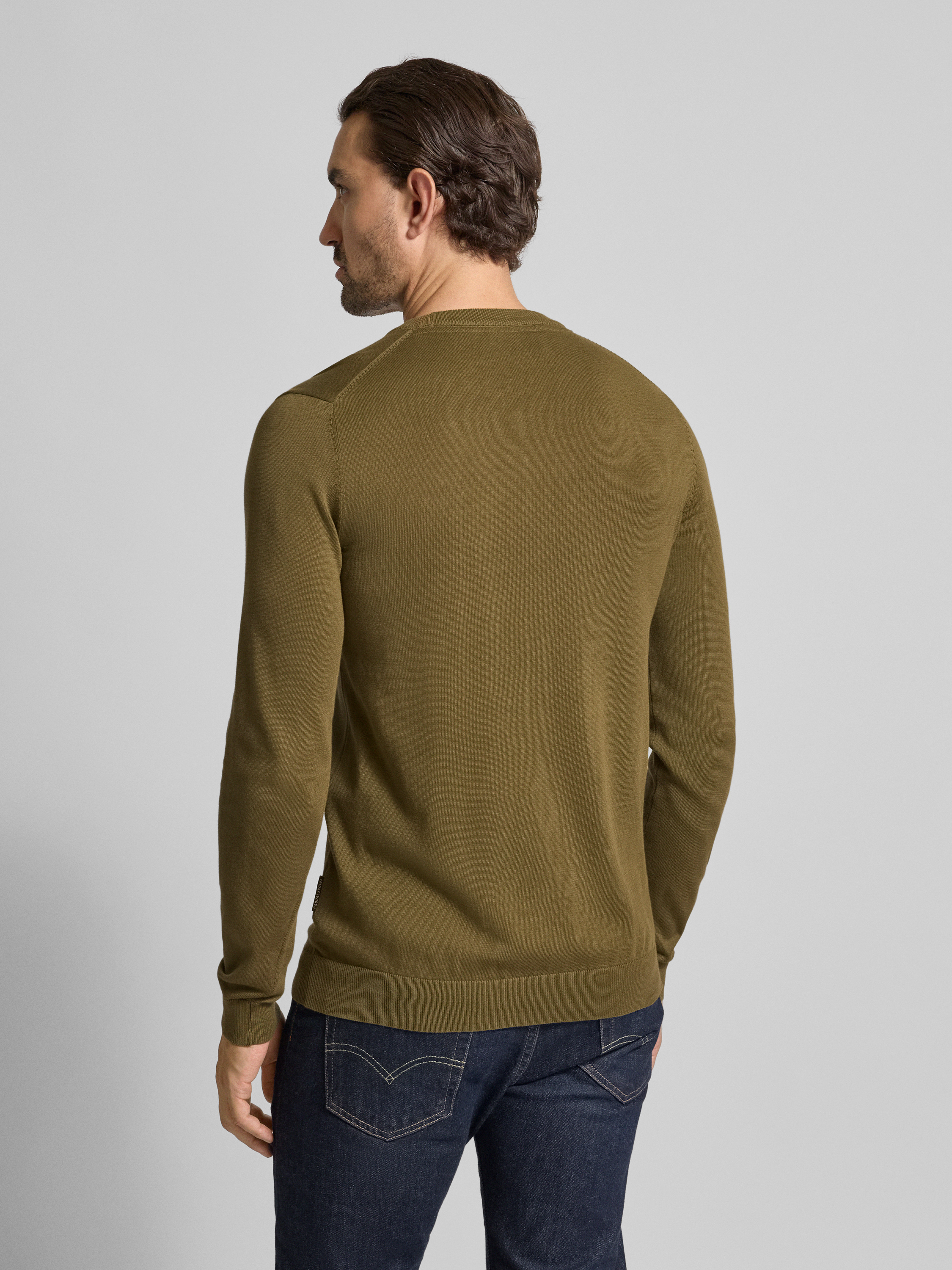 Gebreide pullover met ronde hals, model 'OSVALD' in olijfgroen