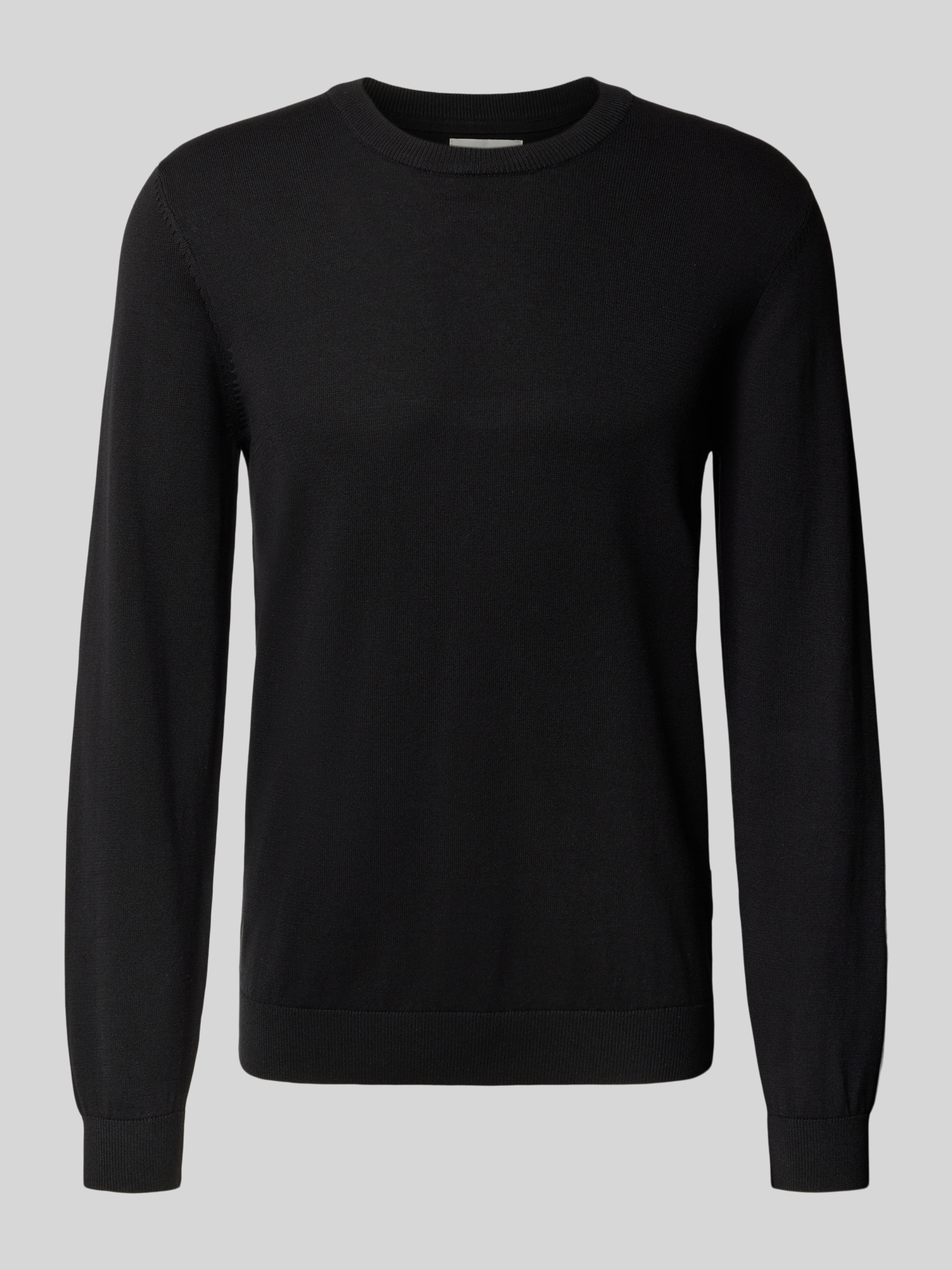 Gebreide pullover met ronde hals, model 'OSVALD' in zwart