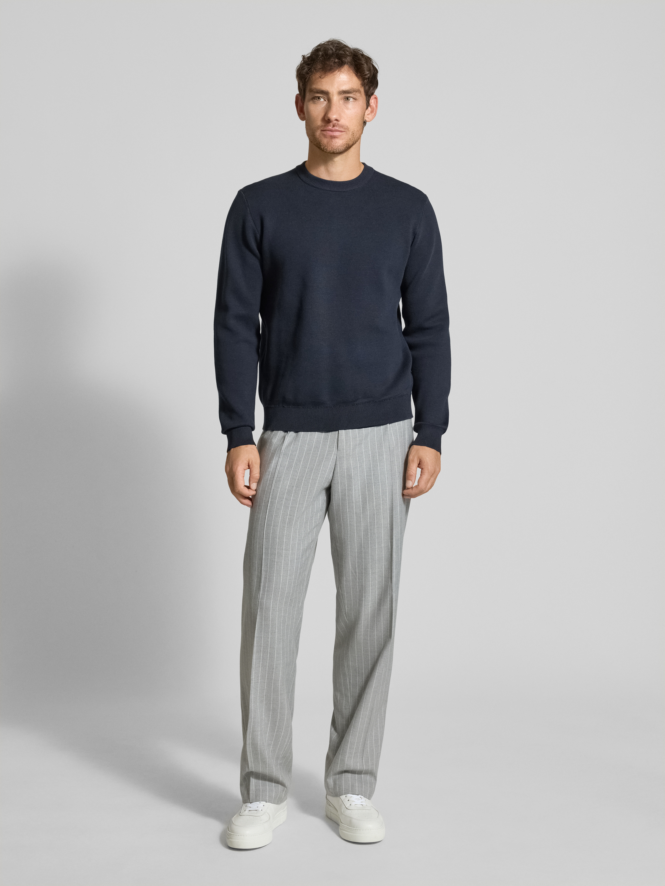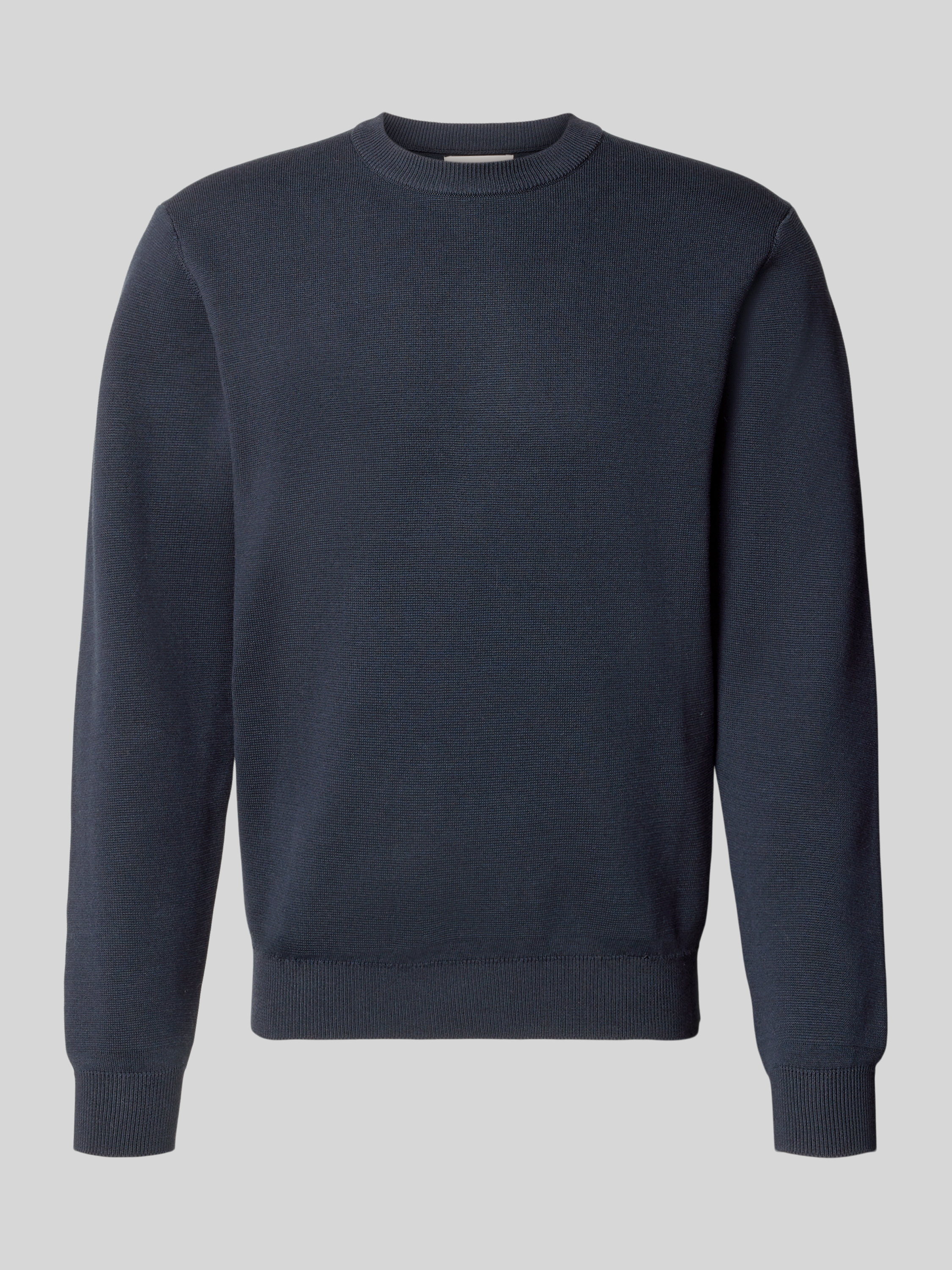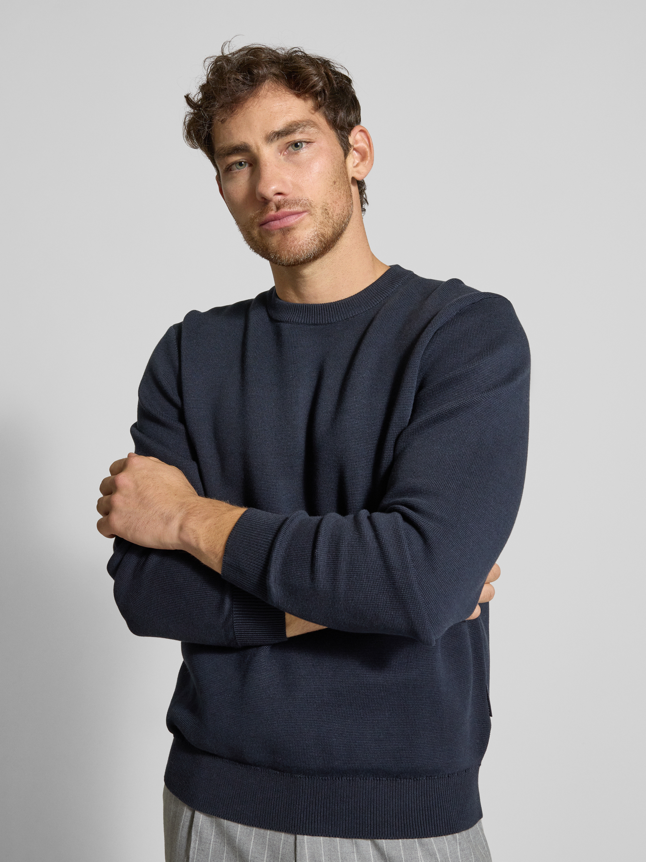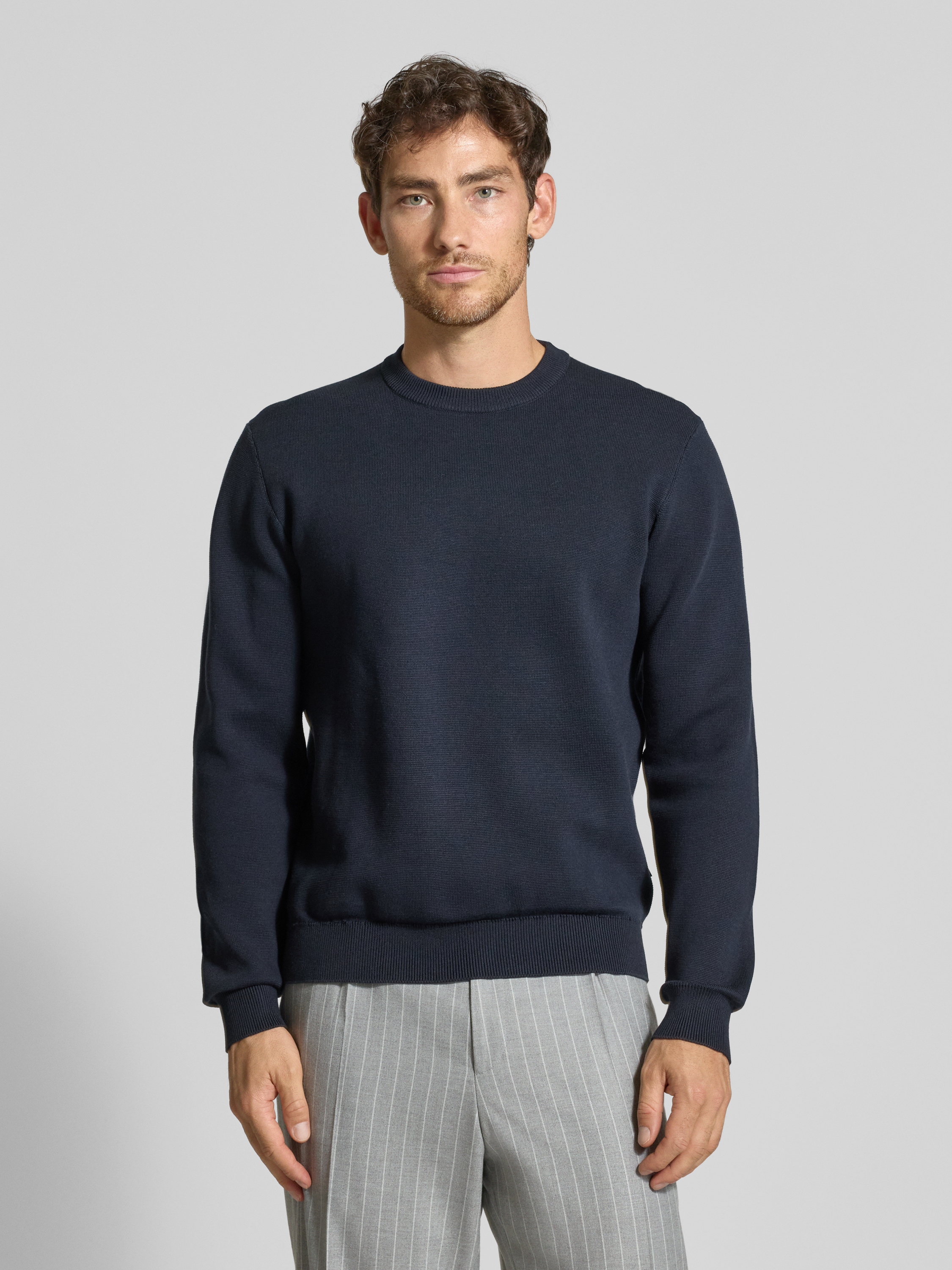 Gebreide pullover met ronde hals, model 'THEO' in donkerblauw