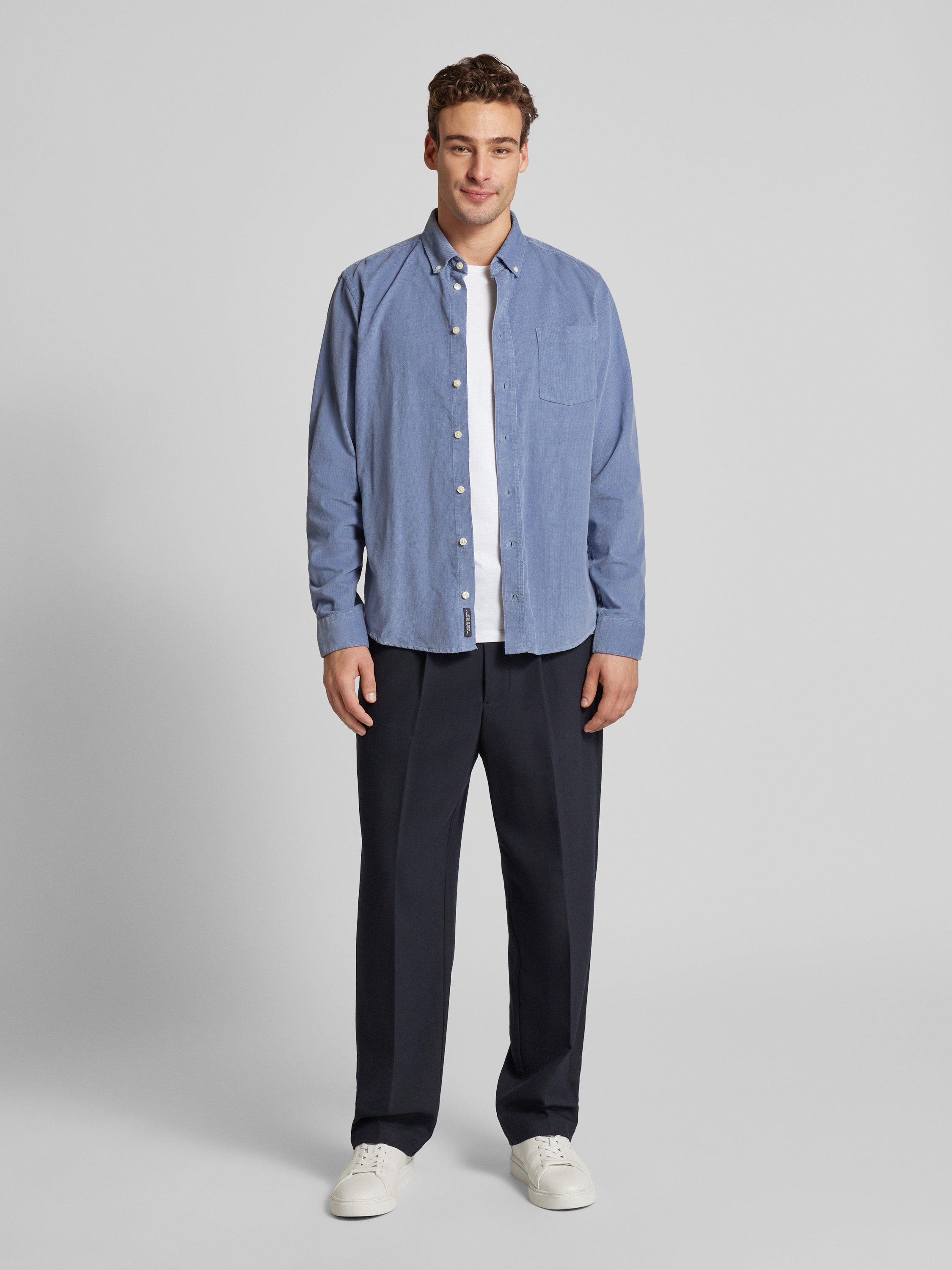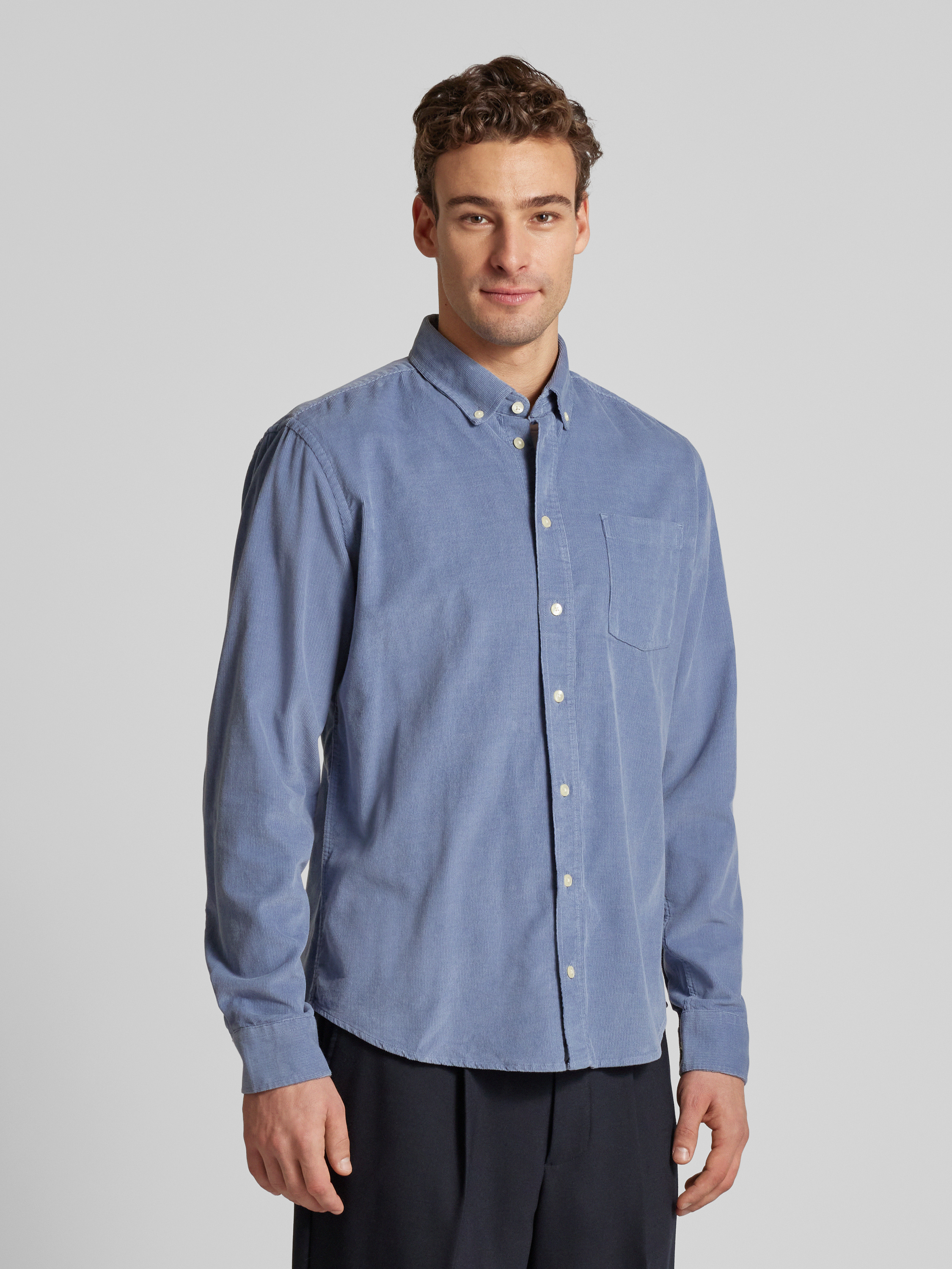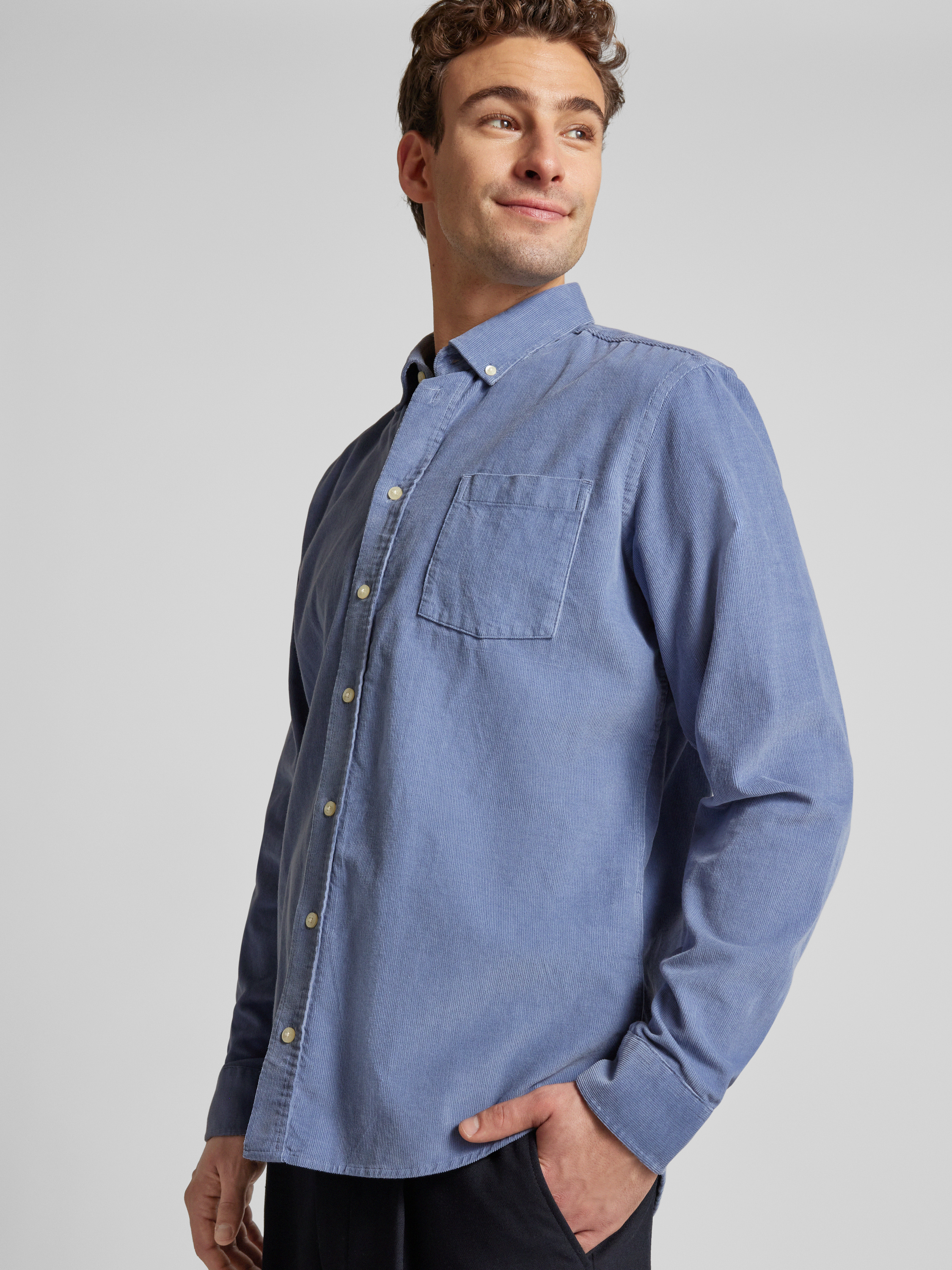 Regular fit corduroy overhemd met button-downkraag, model 'ANTON' in lichtblauw