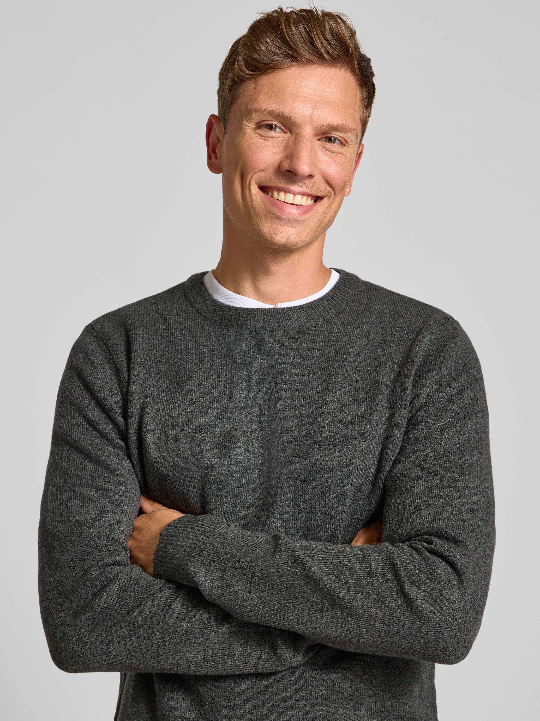 Regular fit gebreide pullover met ronde hals, model 'Heine' in donkergrijs