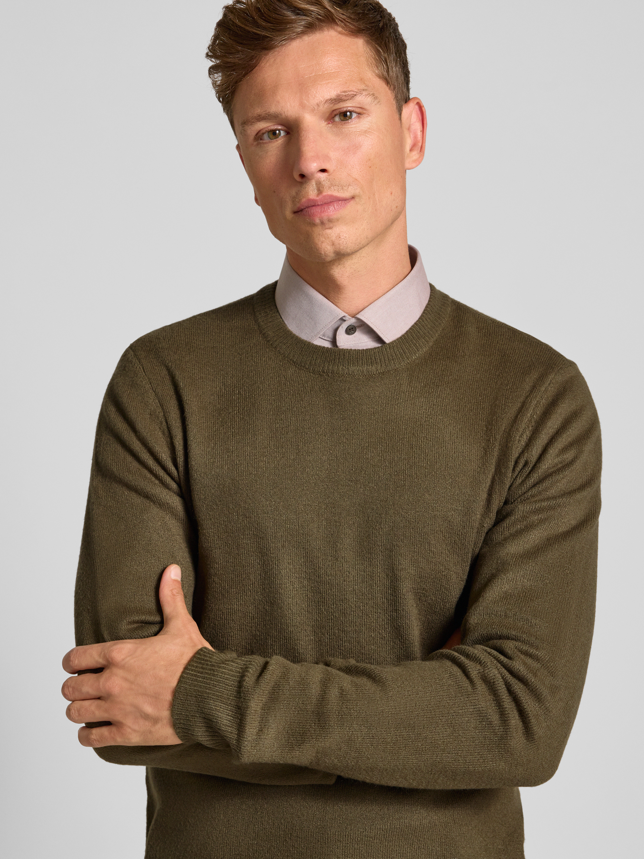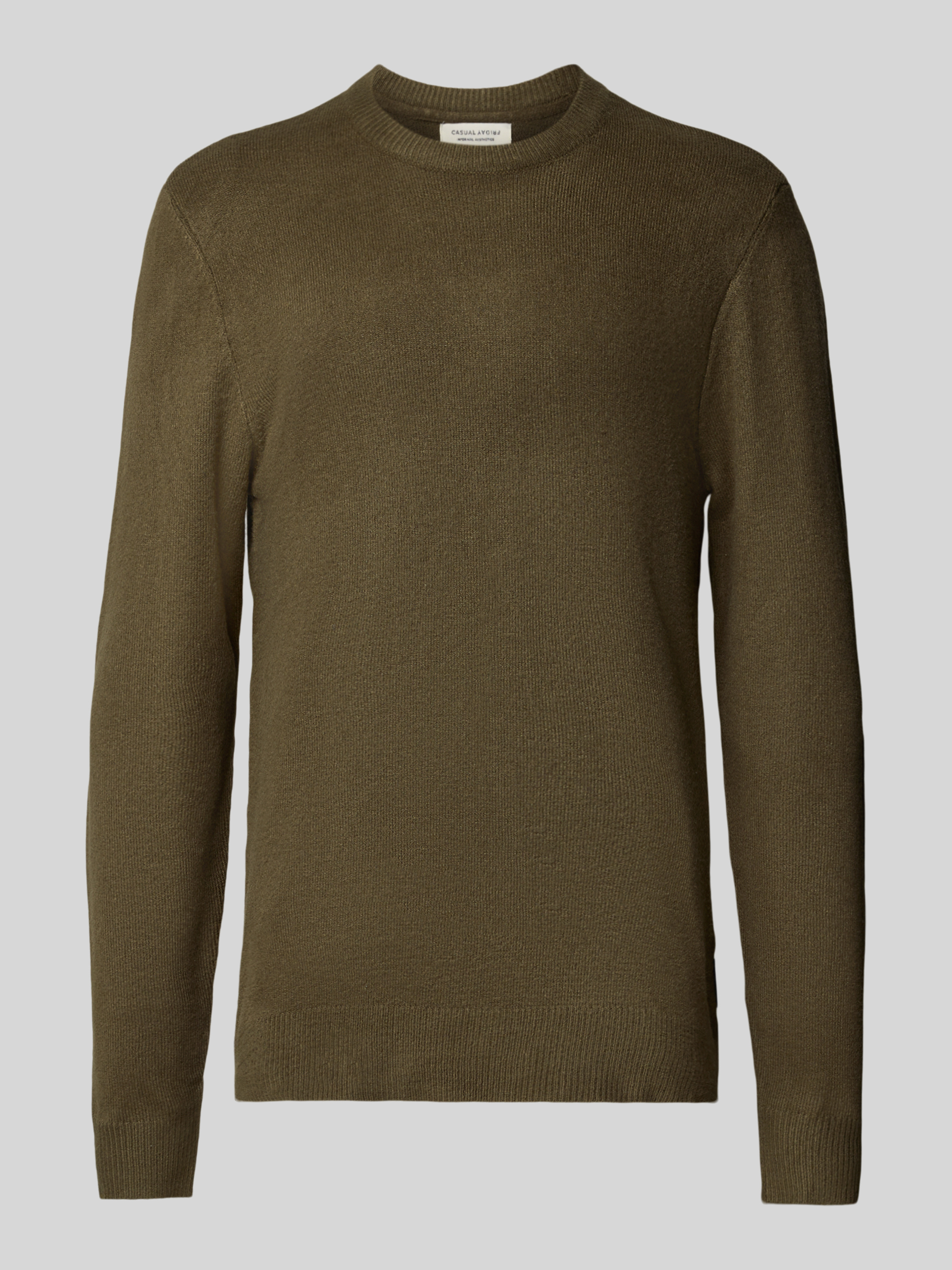 Regular fit gebreide pullover met ronde hals, model 'Heine' in olijfgroen