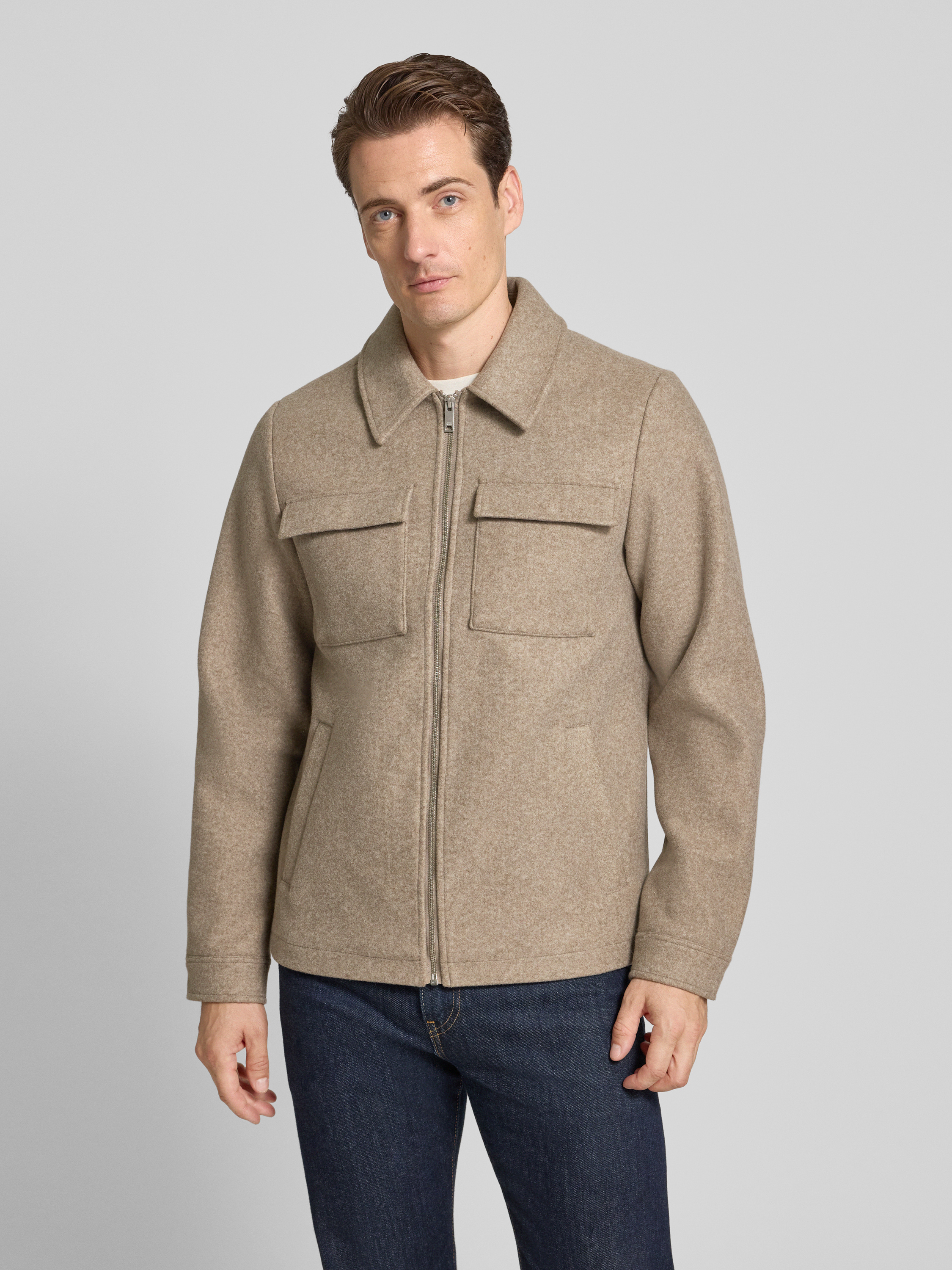 Regular fit overhemdjack met borstzakken, model 'MOBERG' in taupe gemêleerd