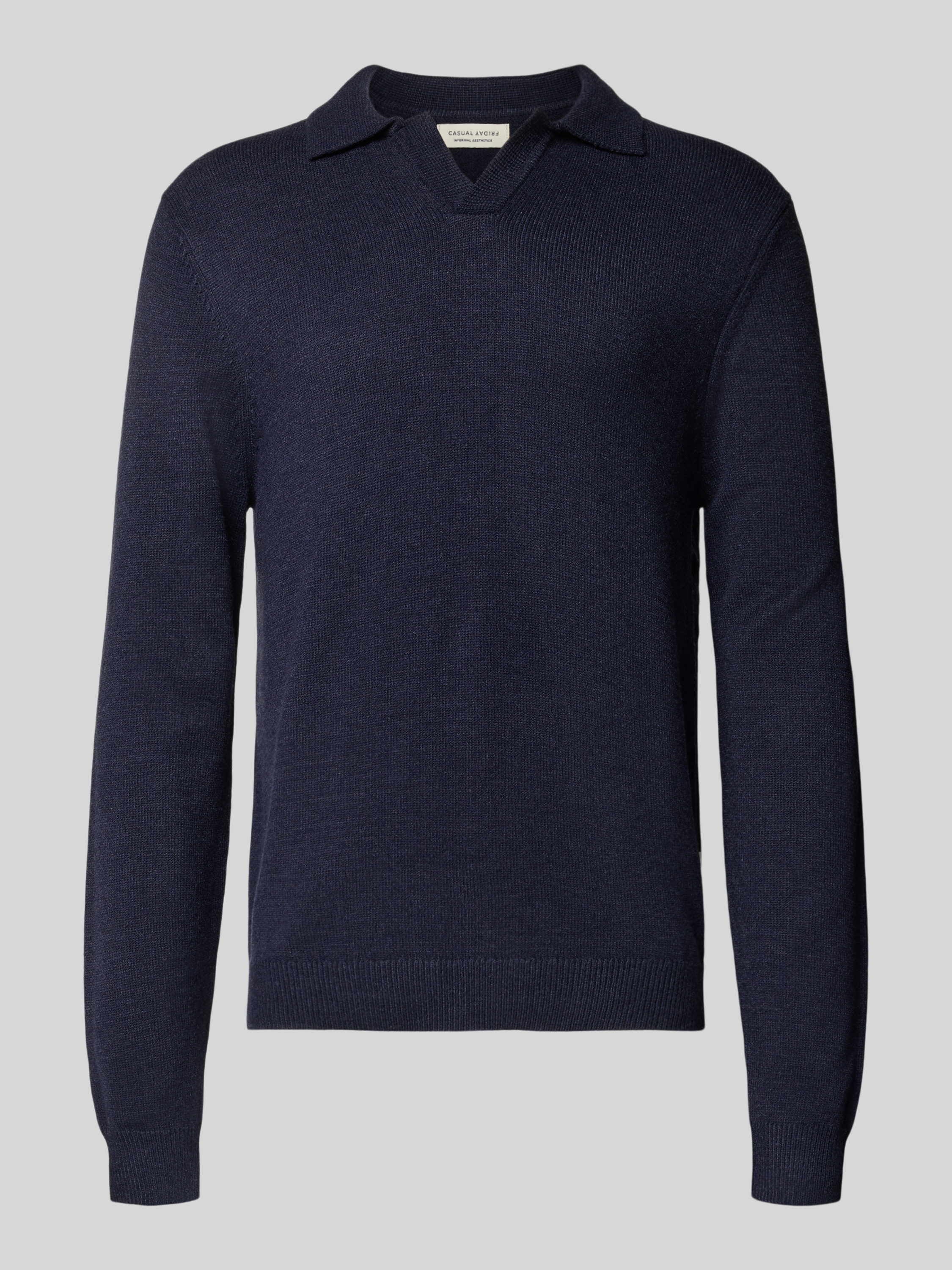 Regular fit shirt met lange mouwen en polokraag, model 'Karl' in donkerblauw