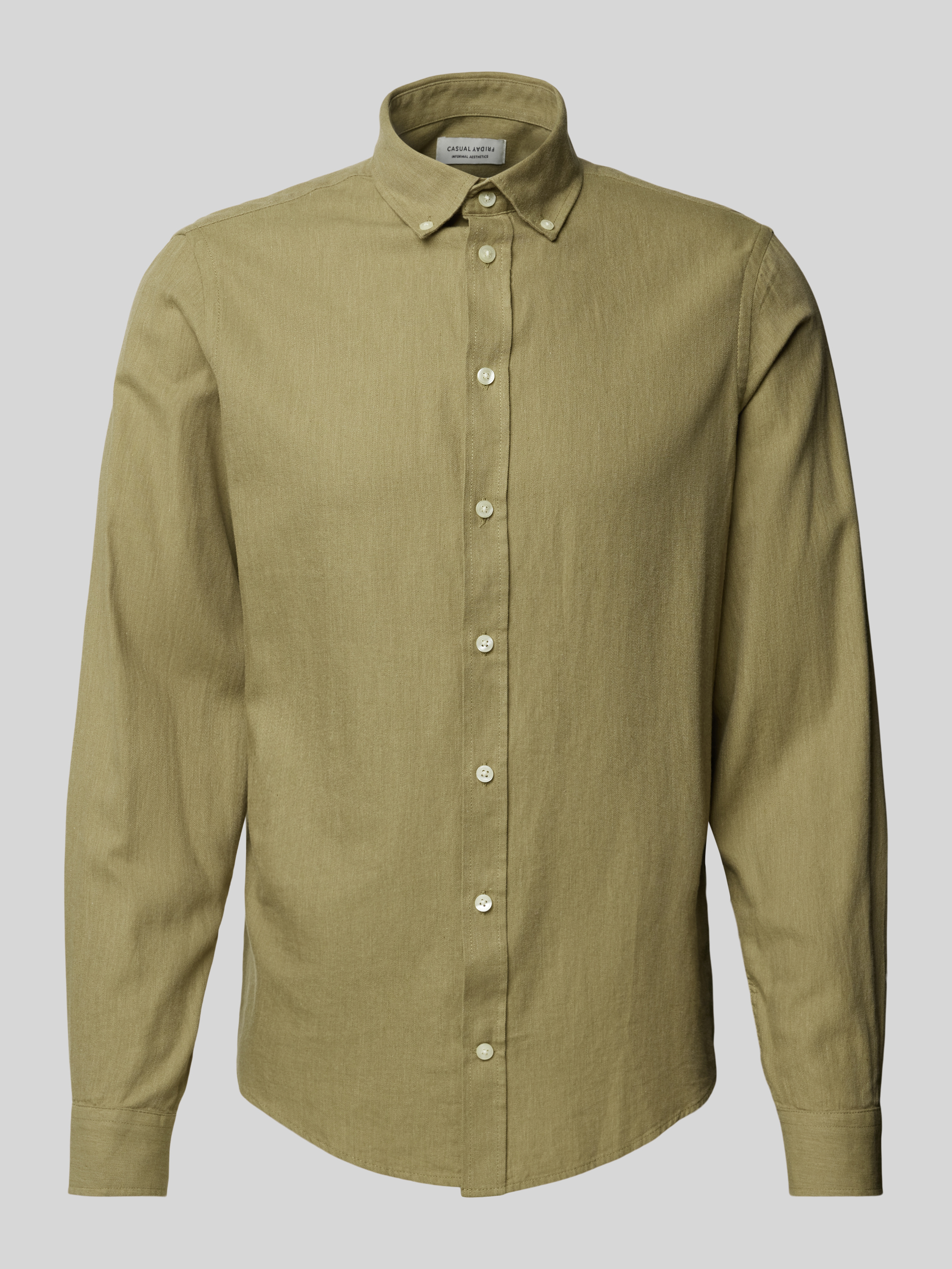 Regular fit vrijetijdsoverhemd met button-downkraag, model 'ANTON' in lichtbruin