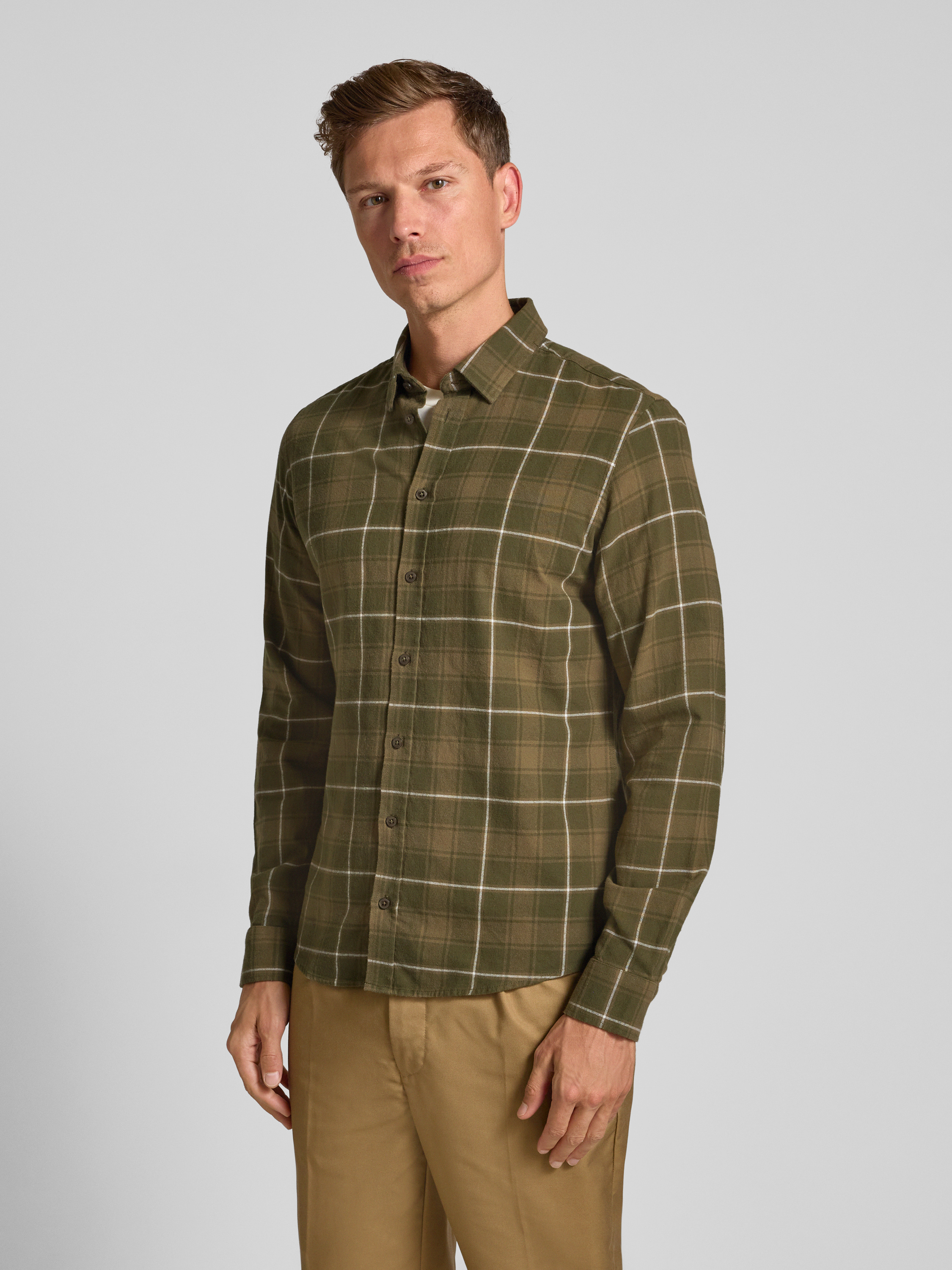 Regular fit vrijetijdsoverhemd met kentkraag, model 'MACE' in olijfgroen