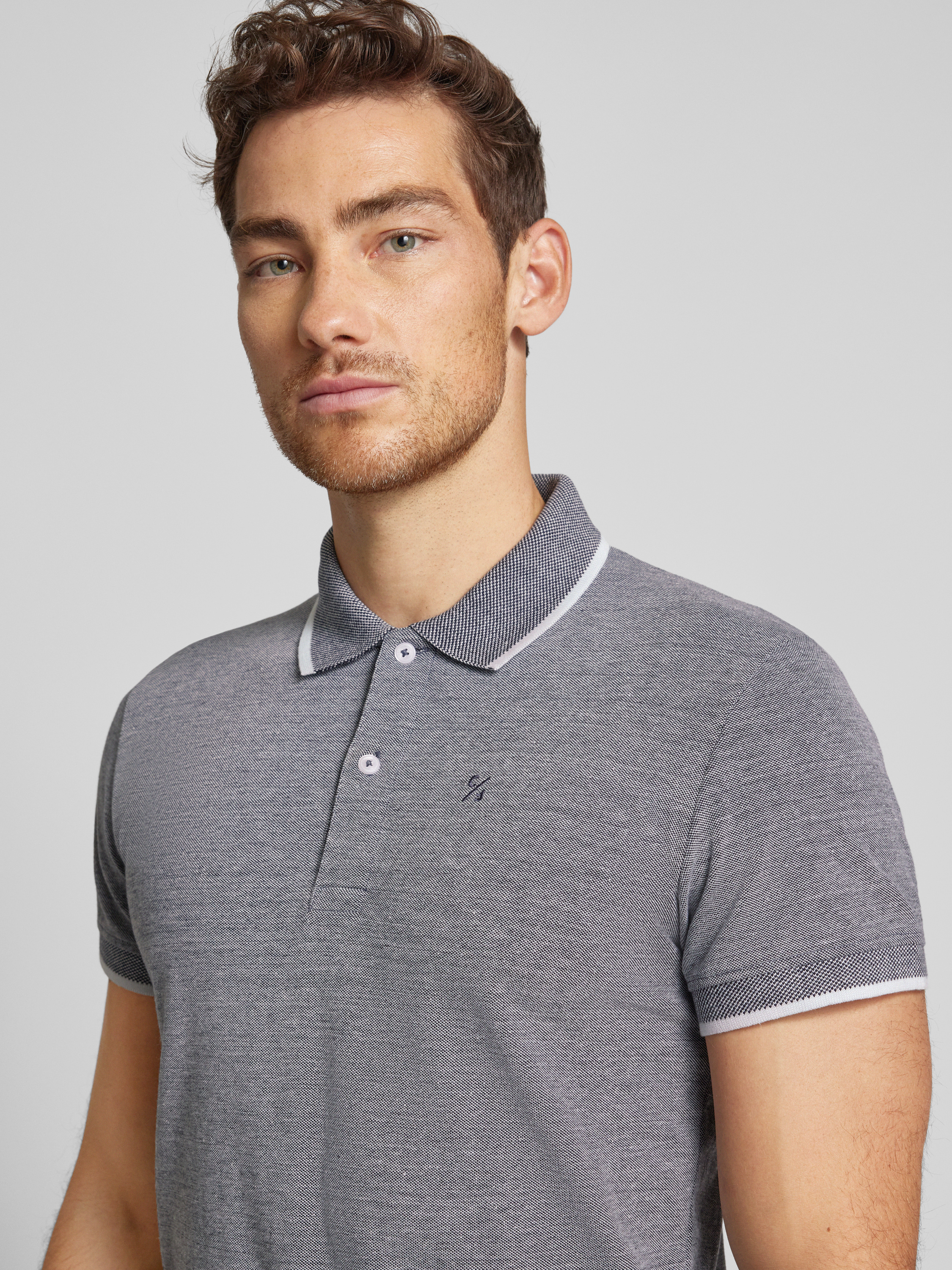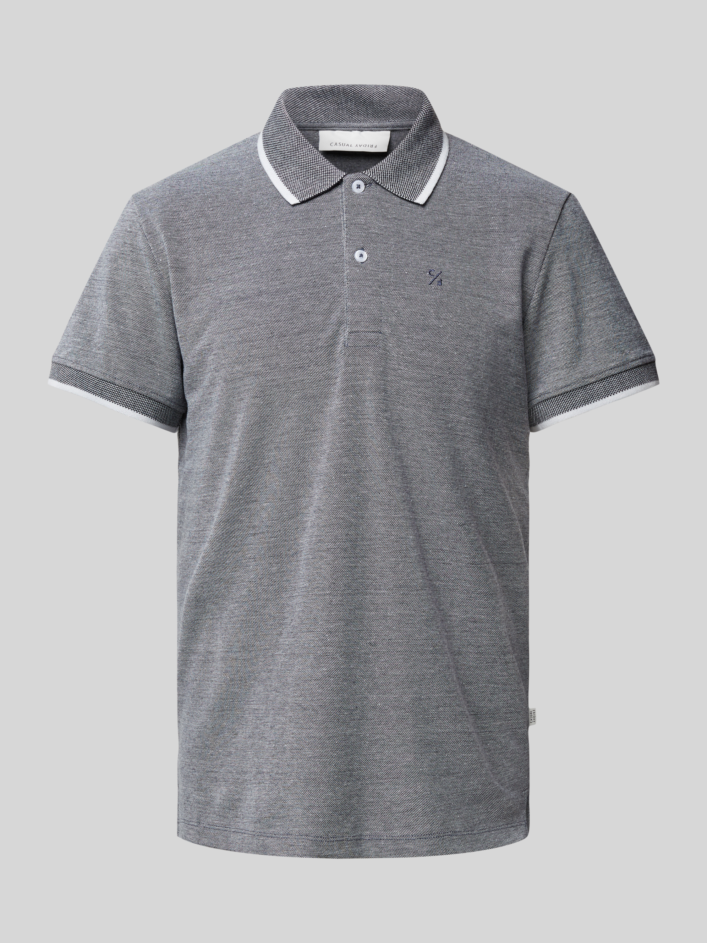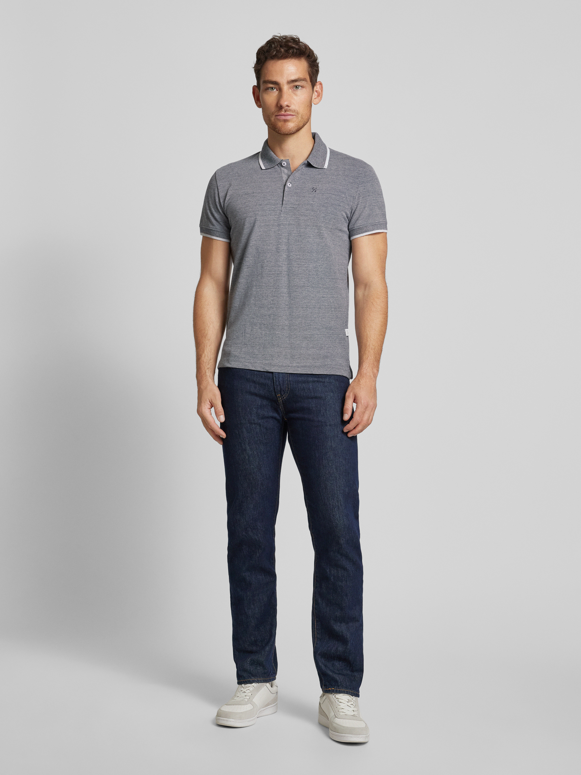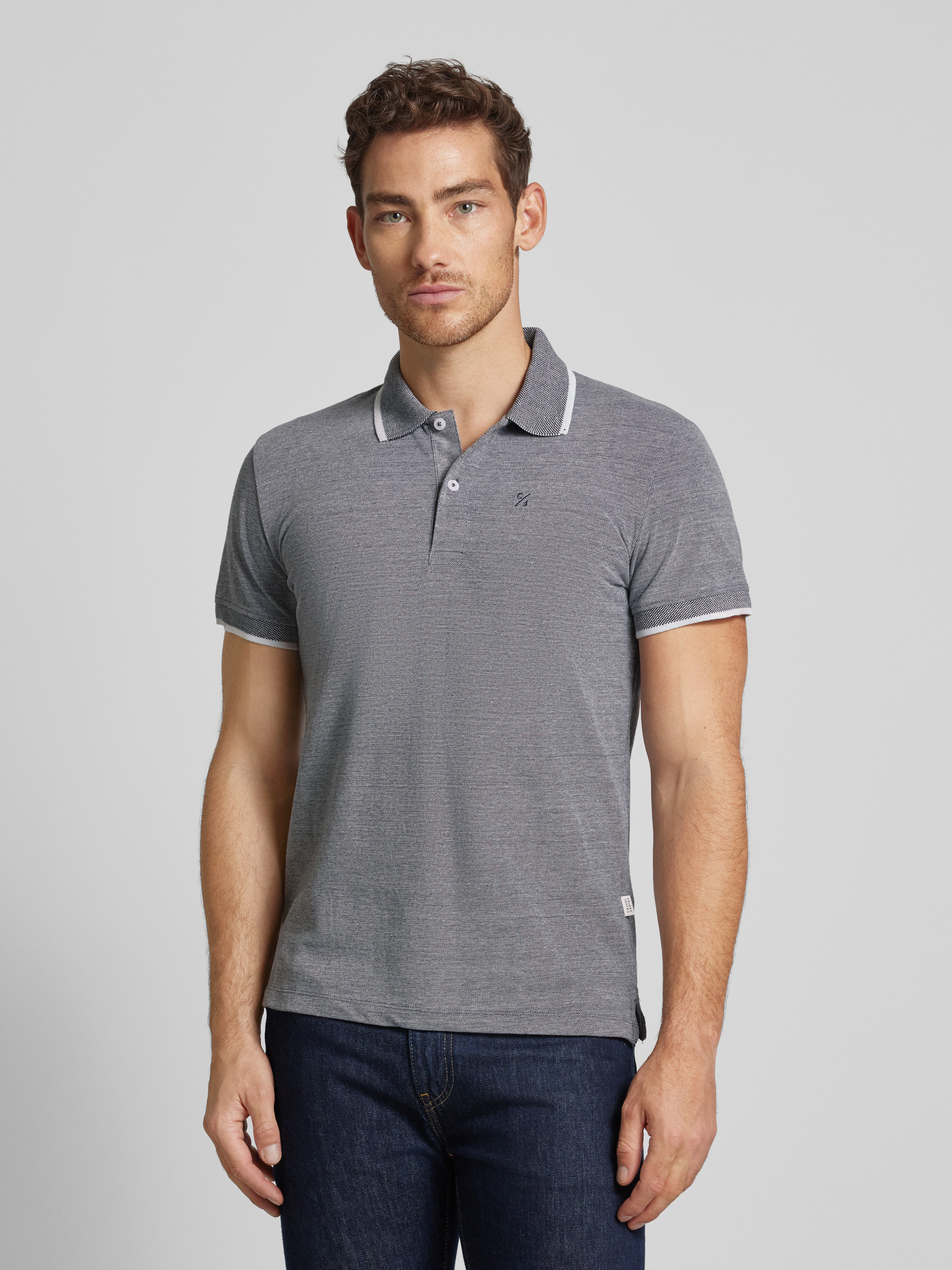 Slim fit poloshirt met logostitching, model 'TRISTAN' in marineblauw gemêleerd