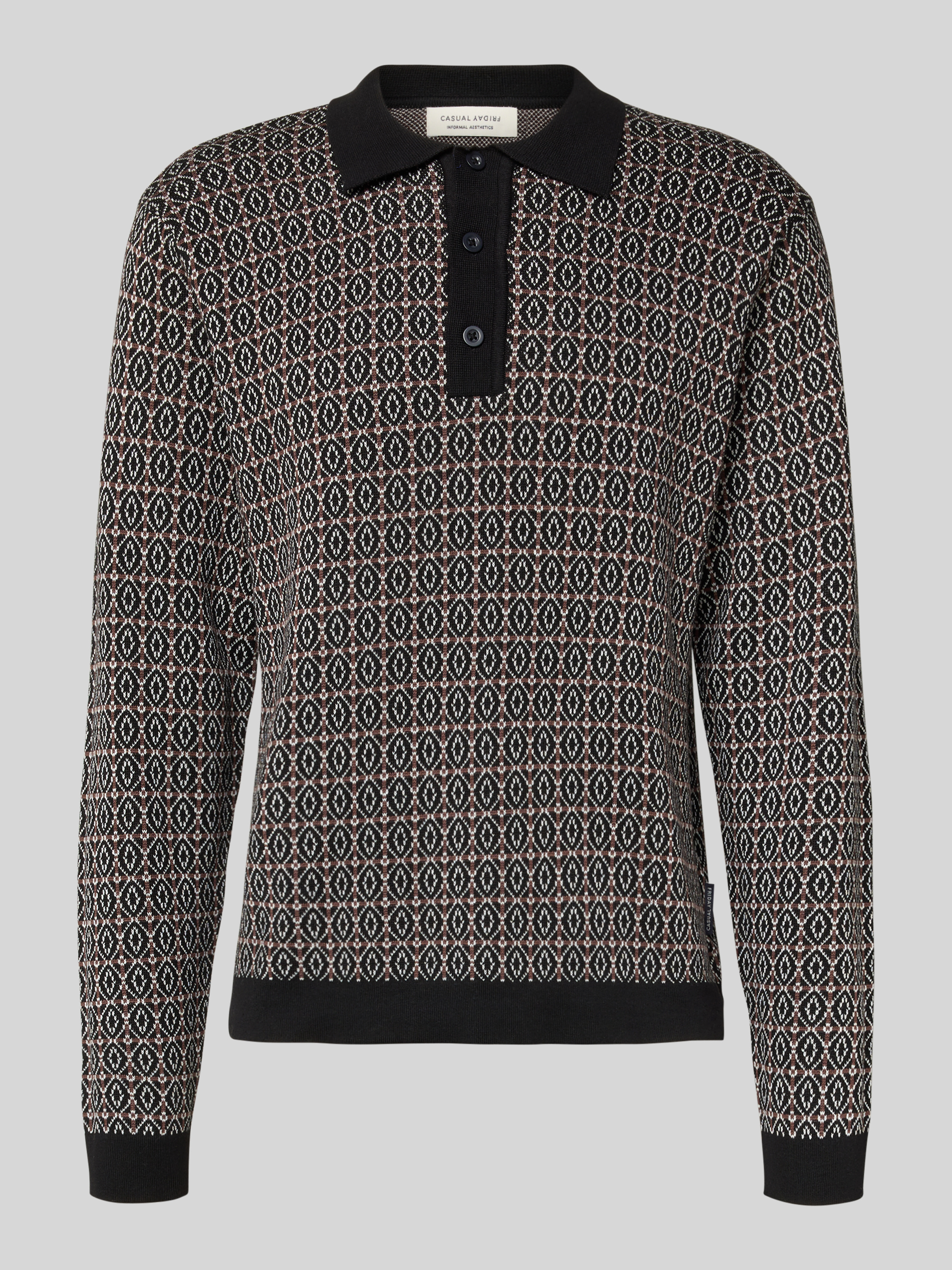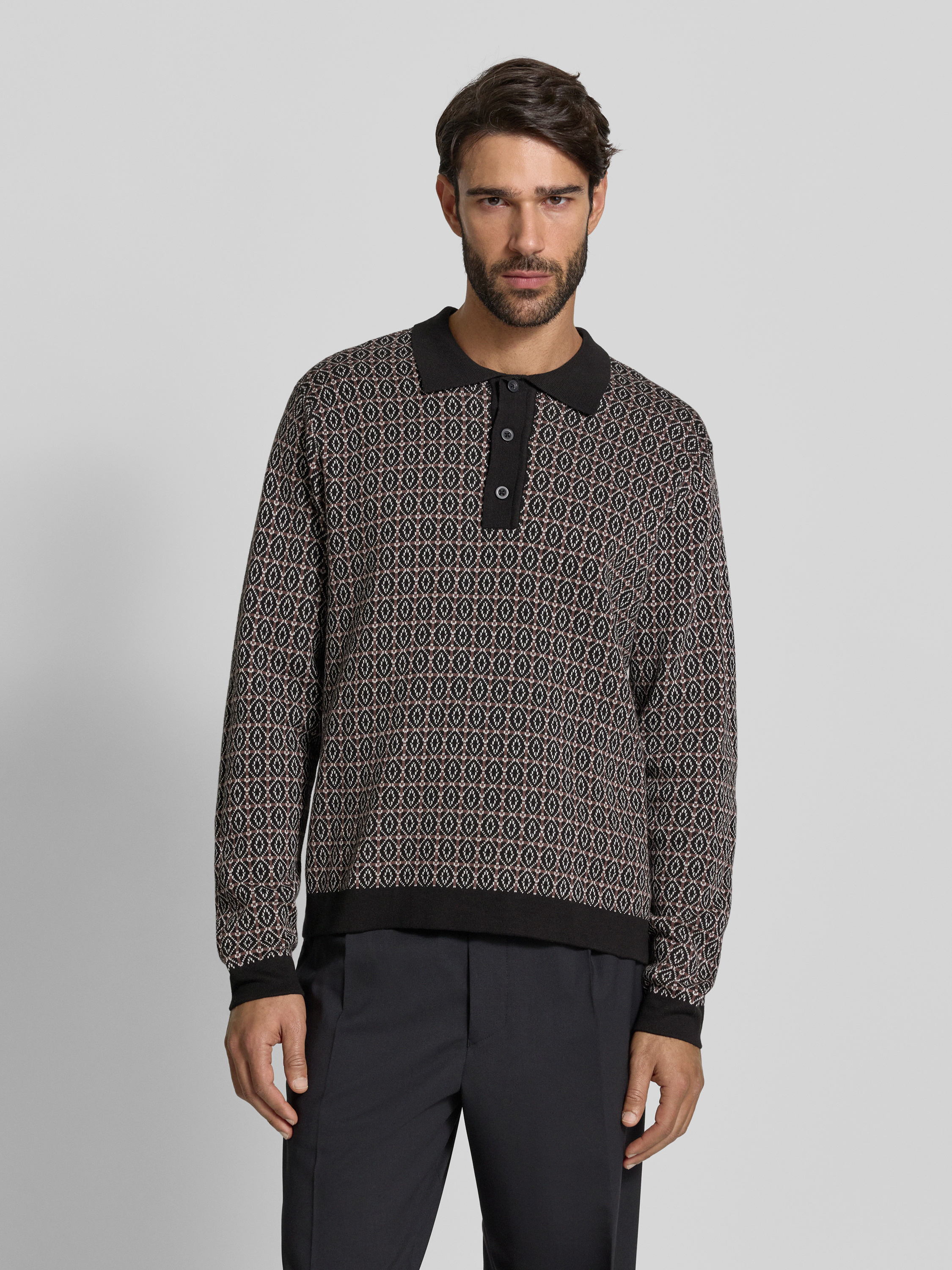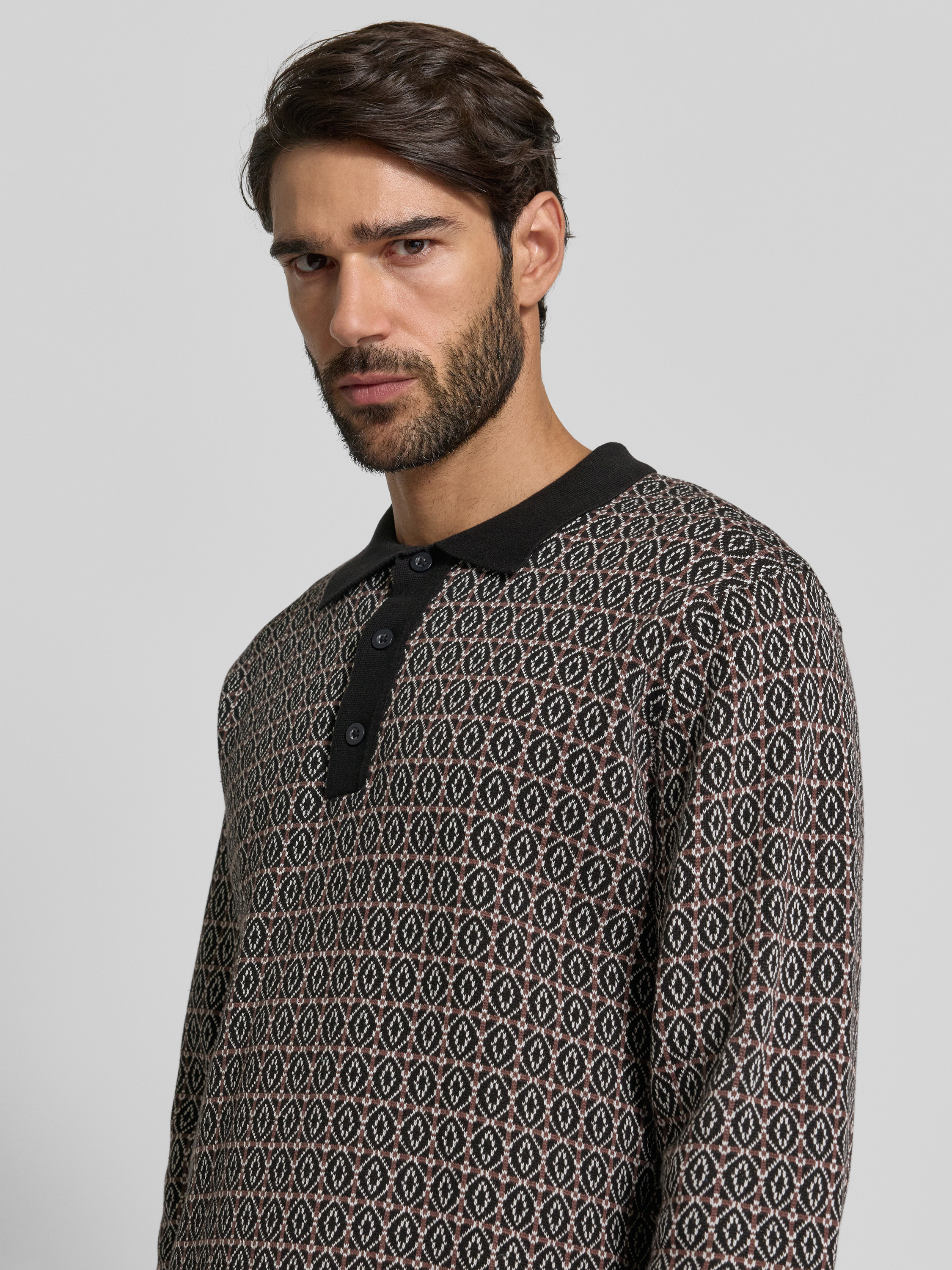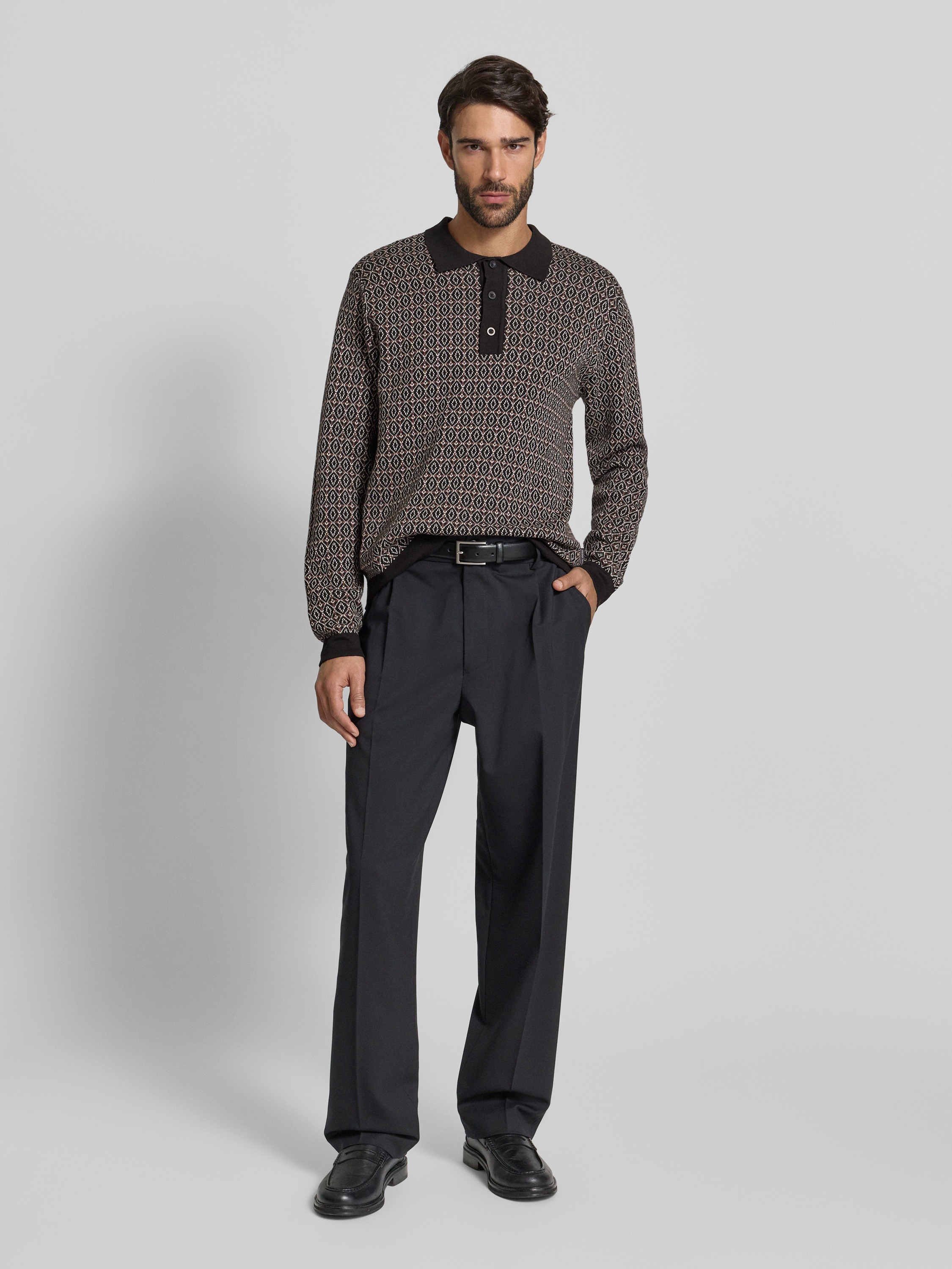Slim fit pullover met polokraag, model 'Jacquard' in zwart