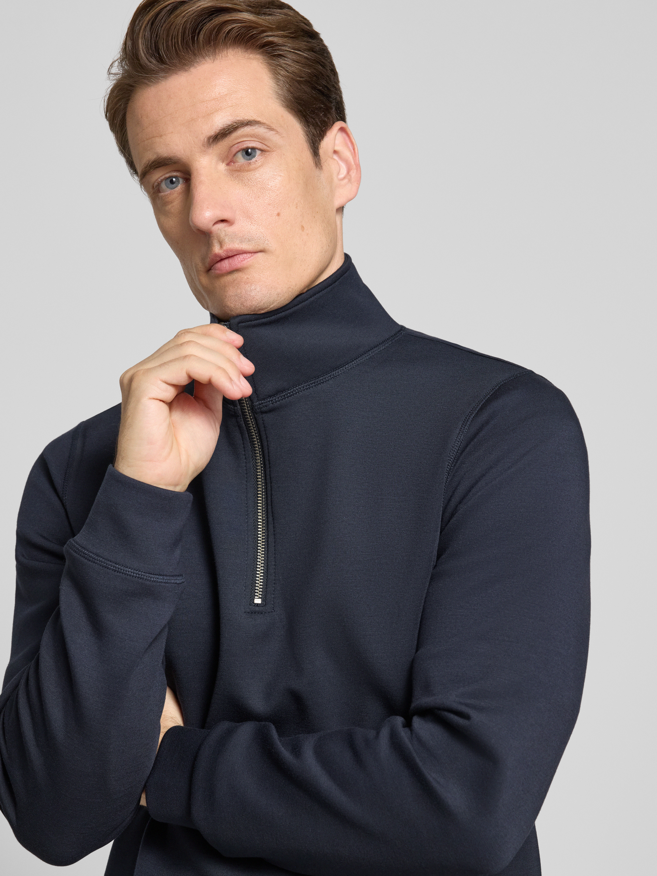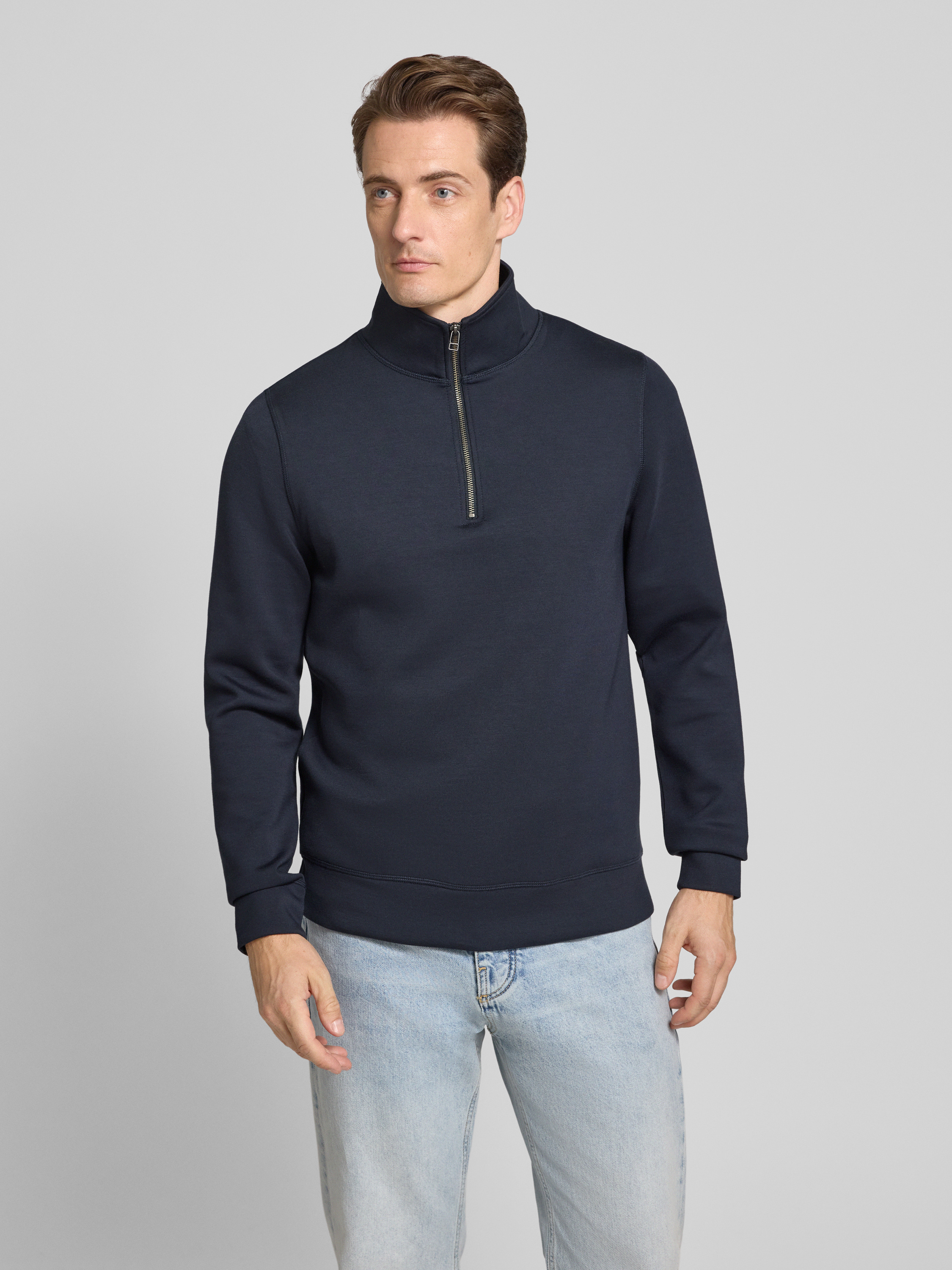 Sweatshirt met opstaande kraag en ritssluiting, model 'Sebastian' in marineblauw
