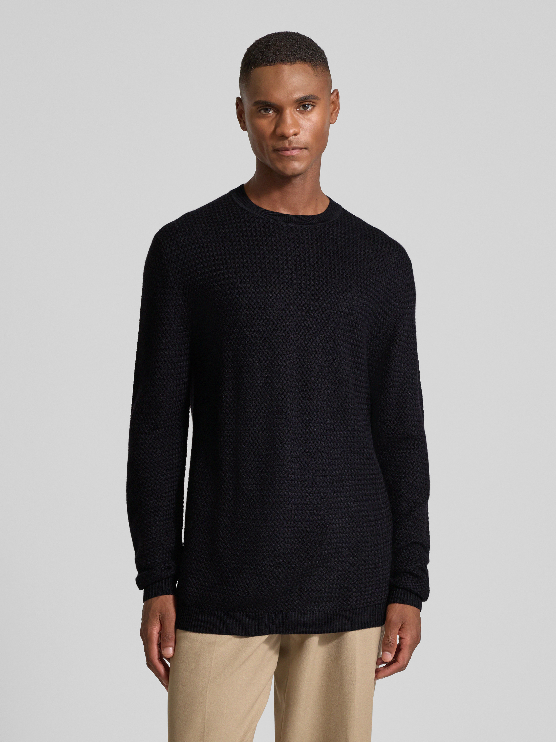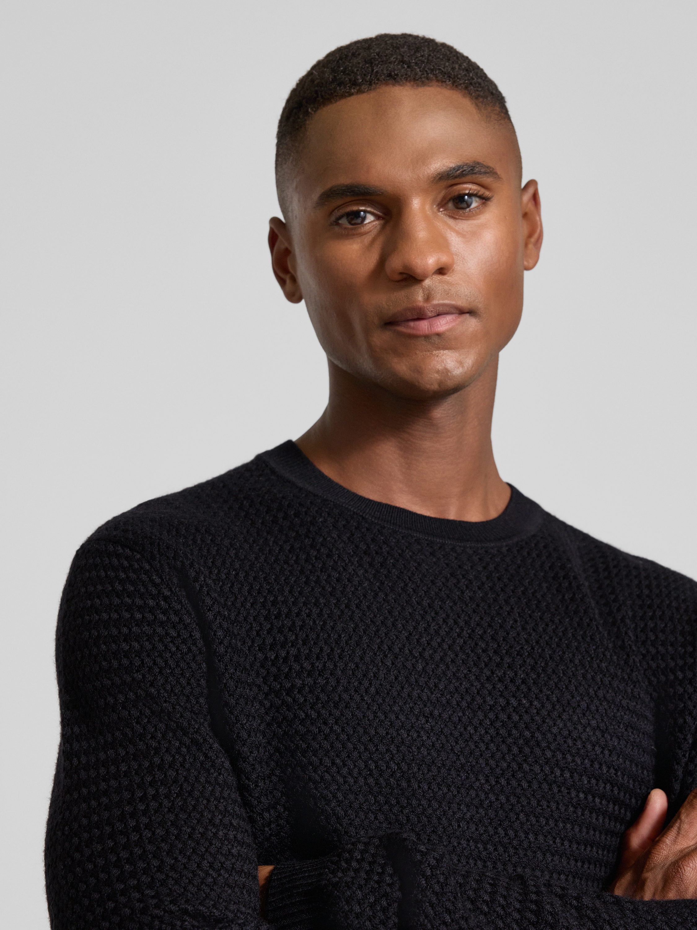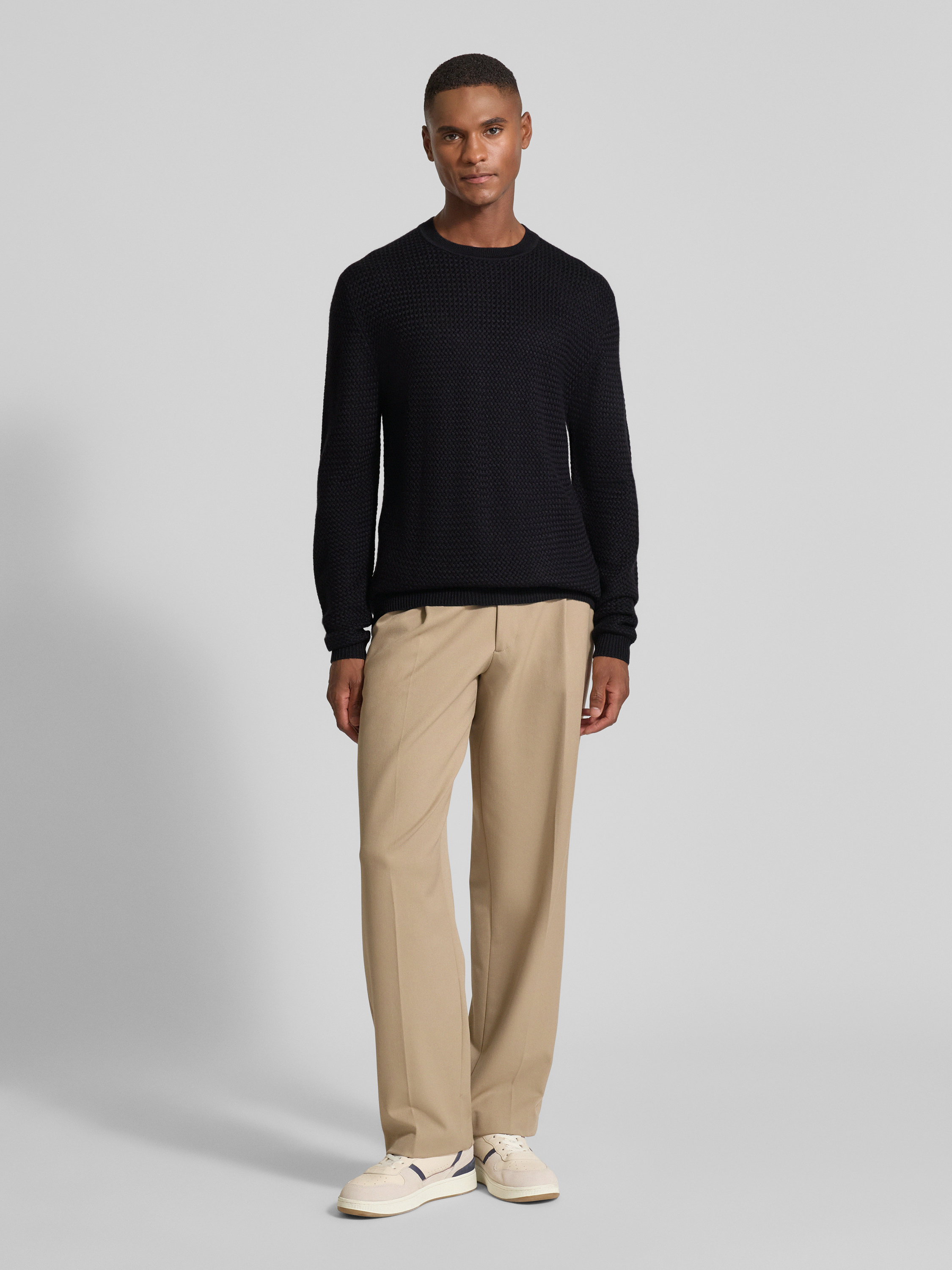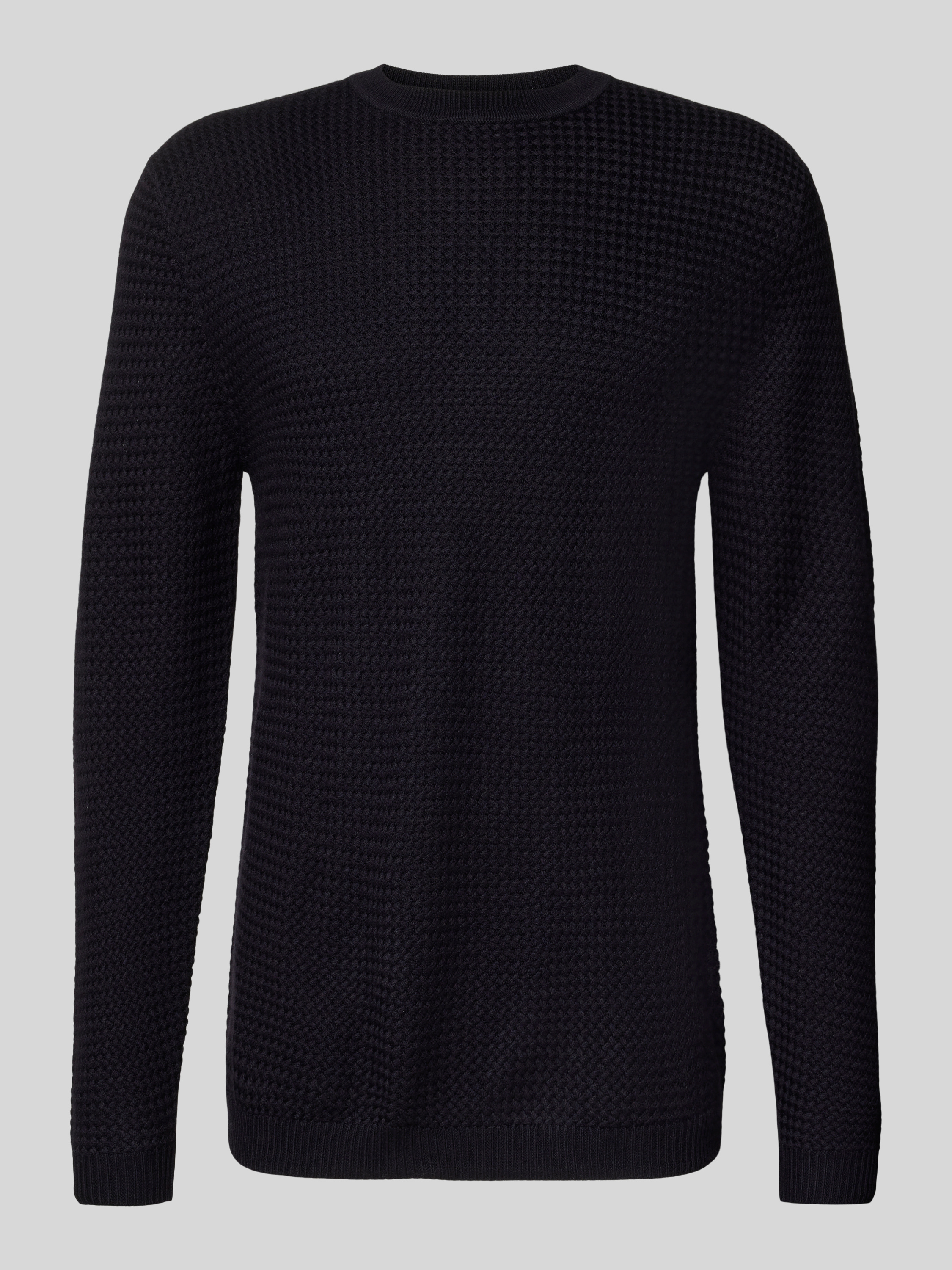 CG - Club of GentsGebreide pullover van wolmix met ronde hals in marineblauw