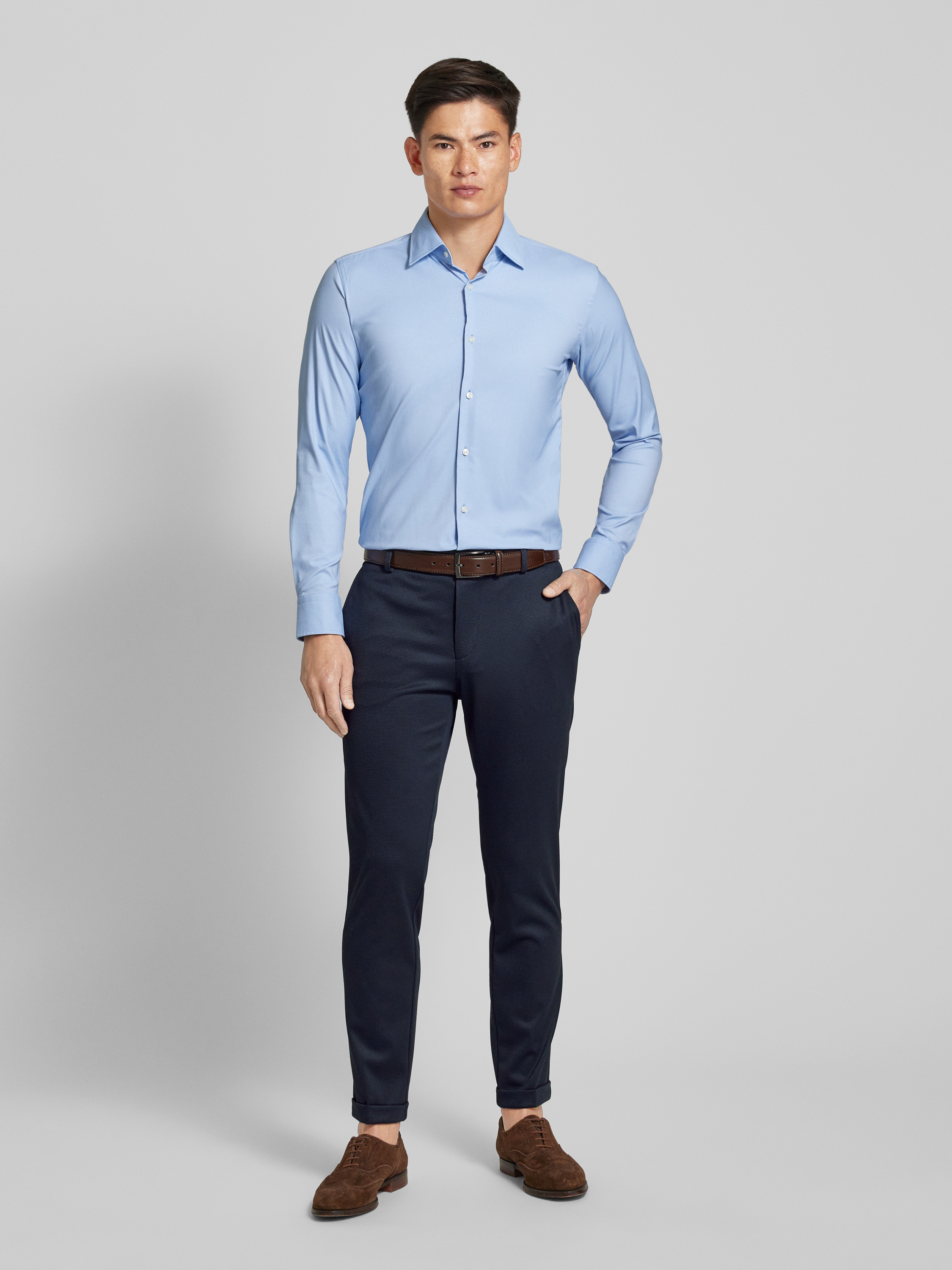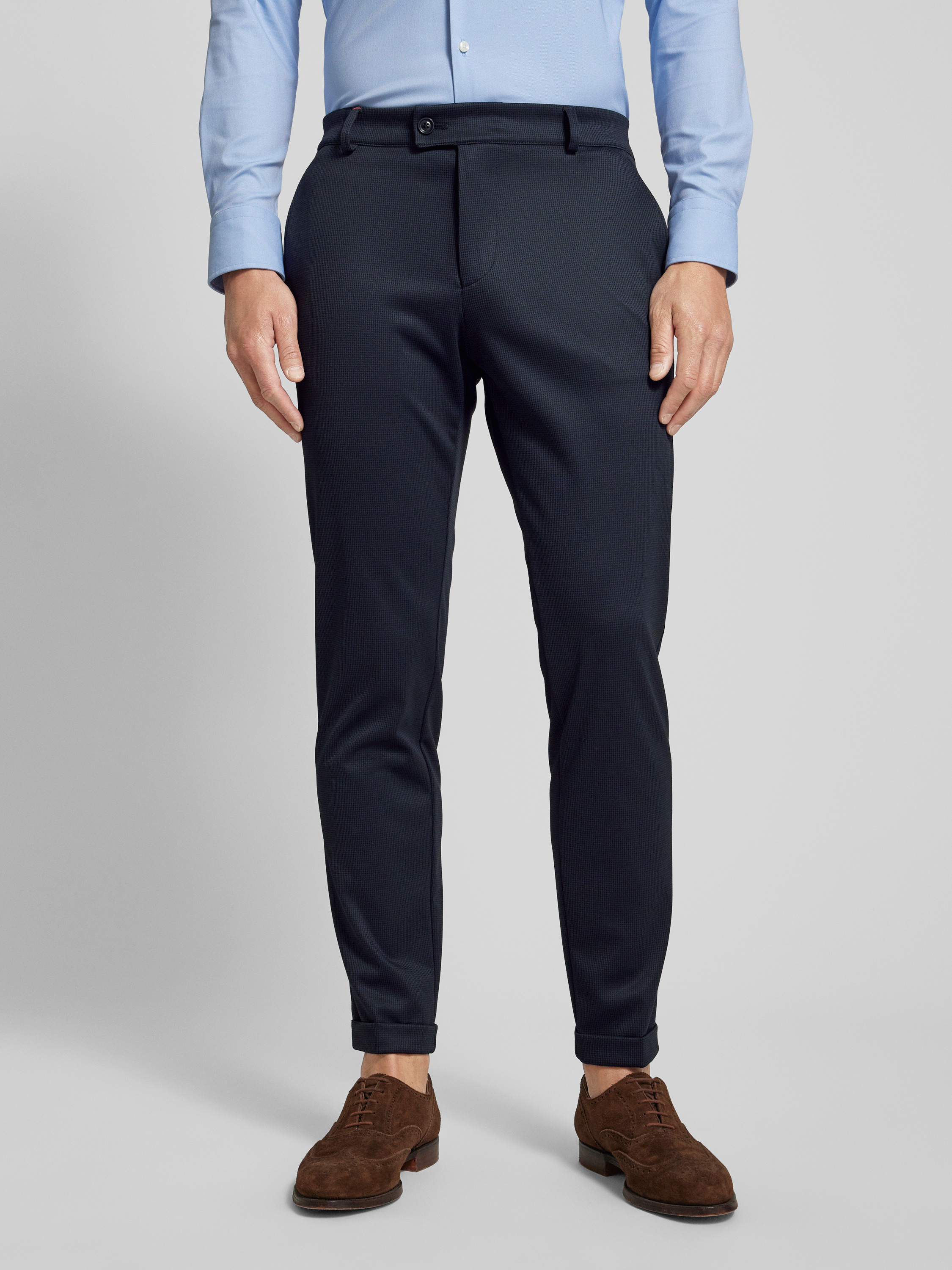 Modern fit pantalon met riemlussen, model 'Conn' in marineblauw