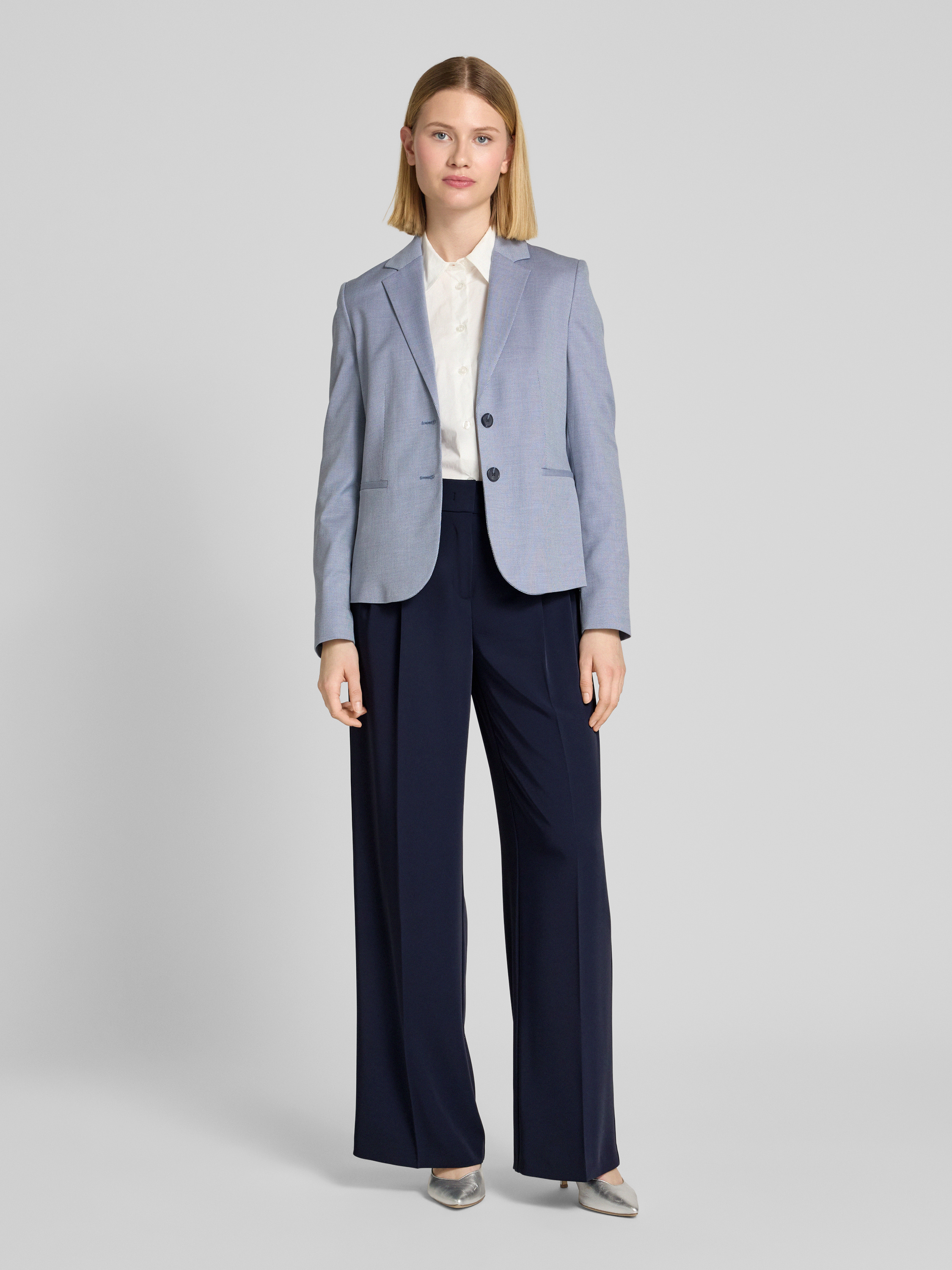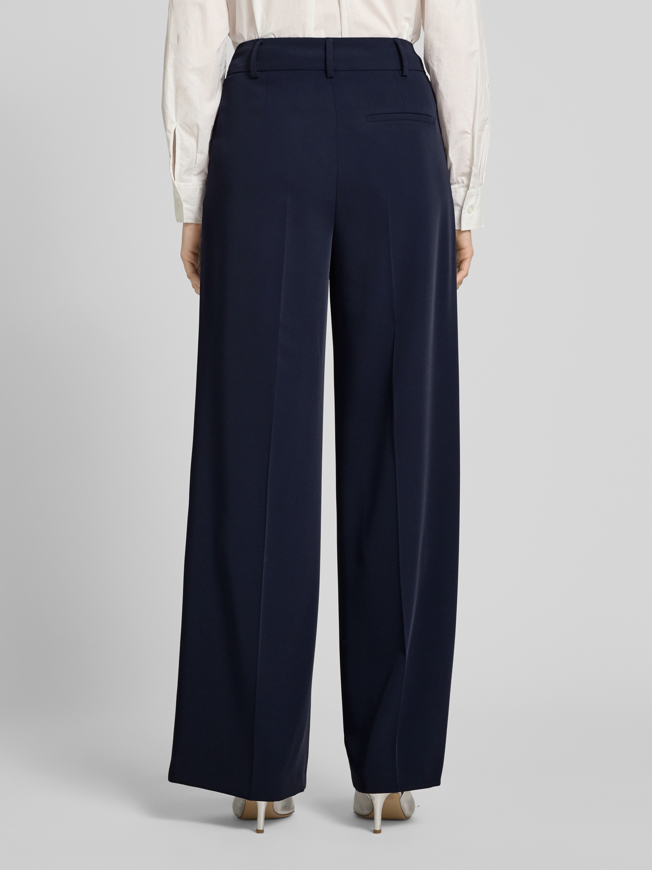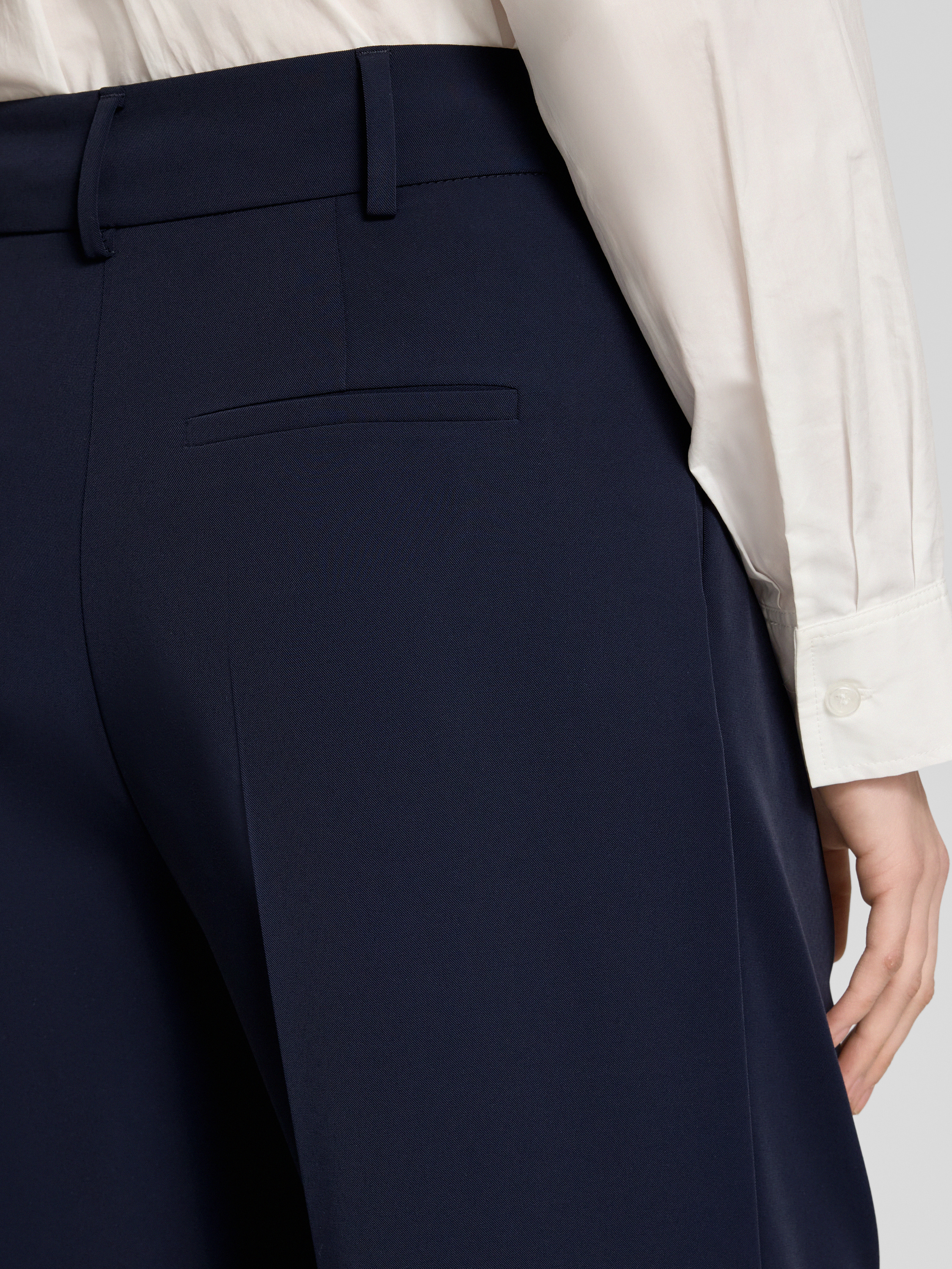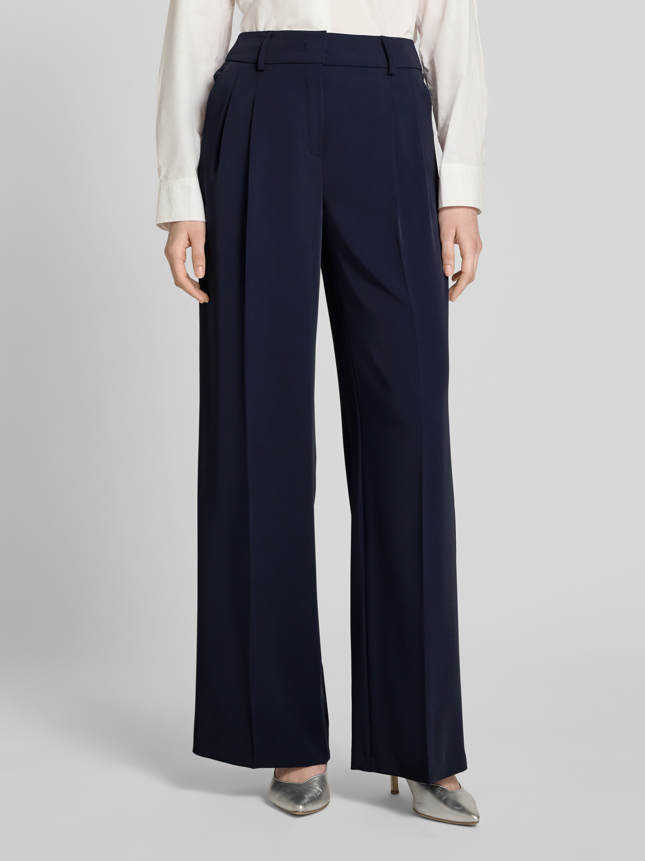 Flared pantalon met bandplooien in marineblauw