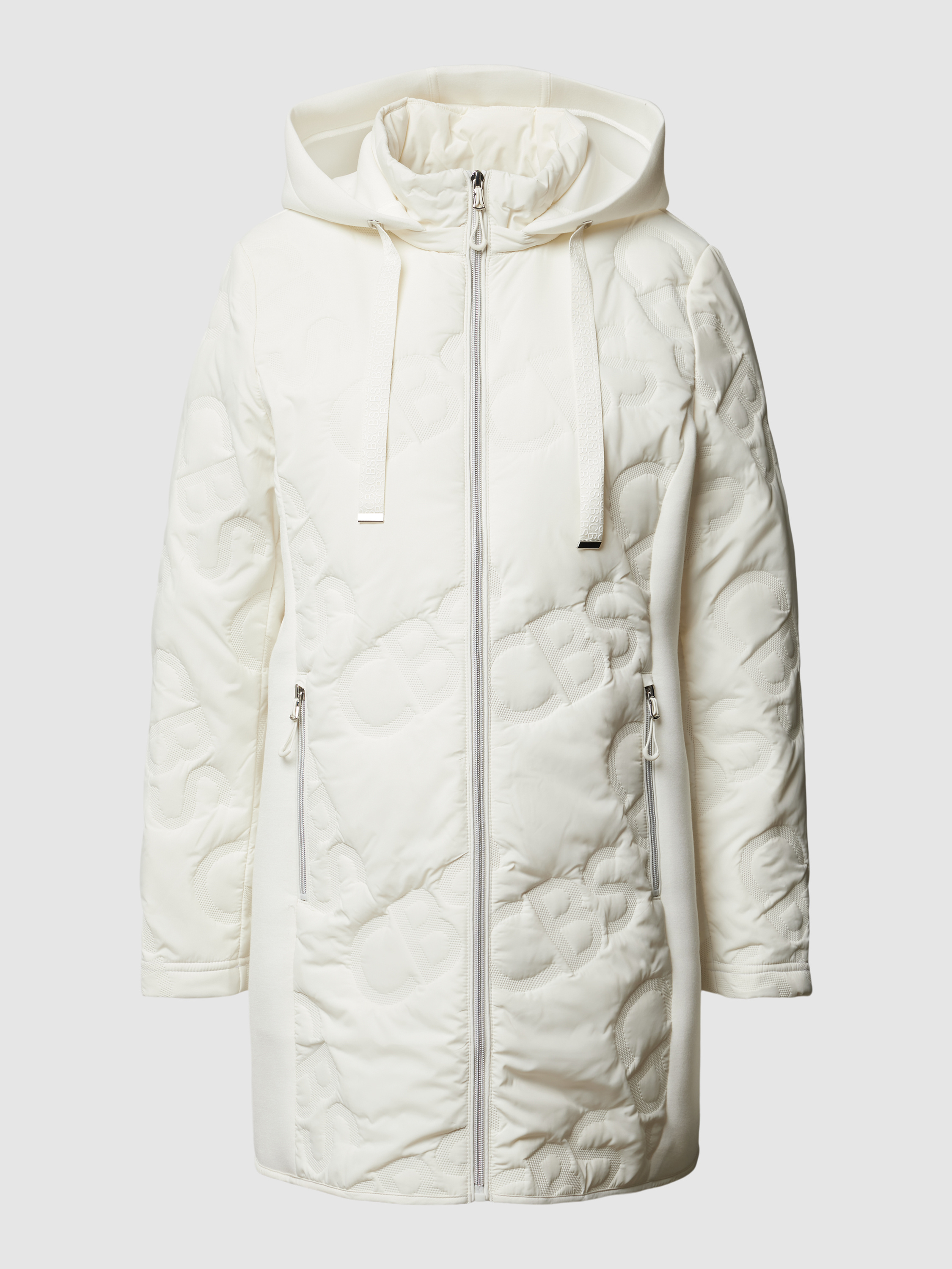 Gewatteerd jack met inzet van scuba en capuchon in offwhite