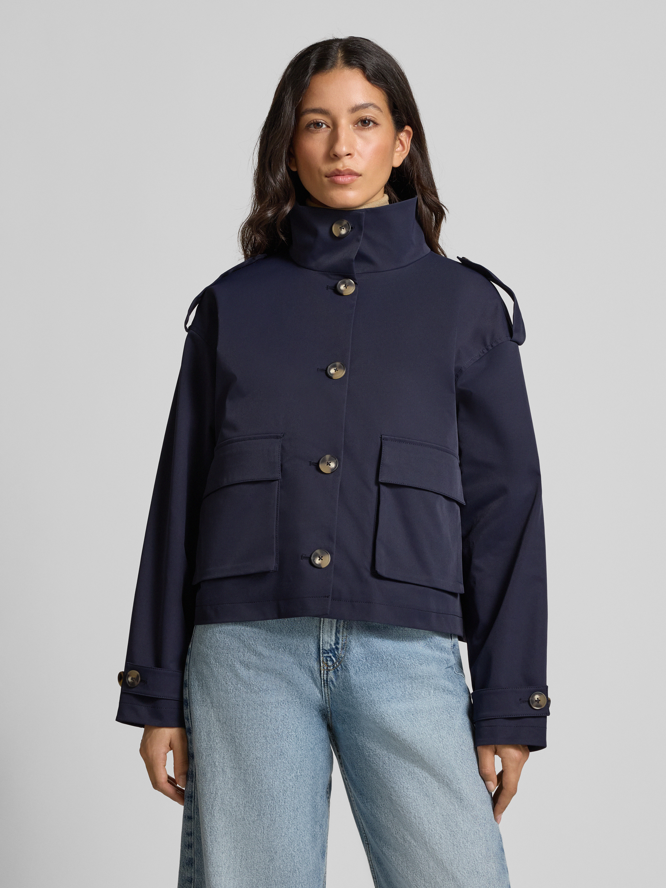Jas met opstaande kraag in donkerblauw