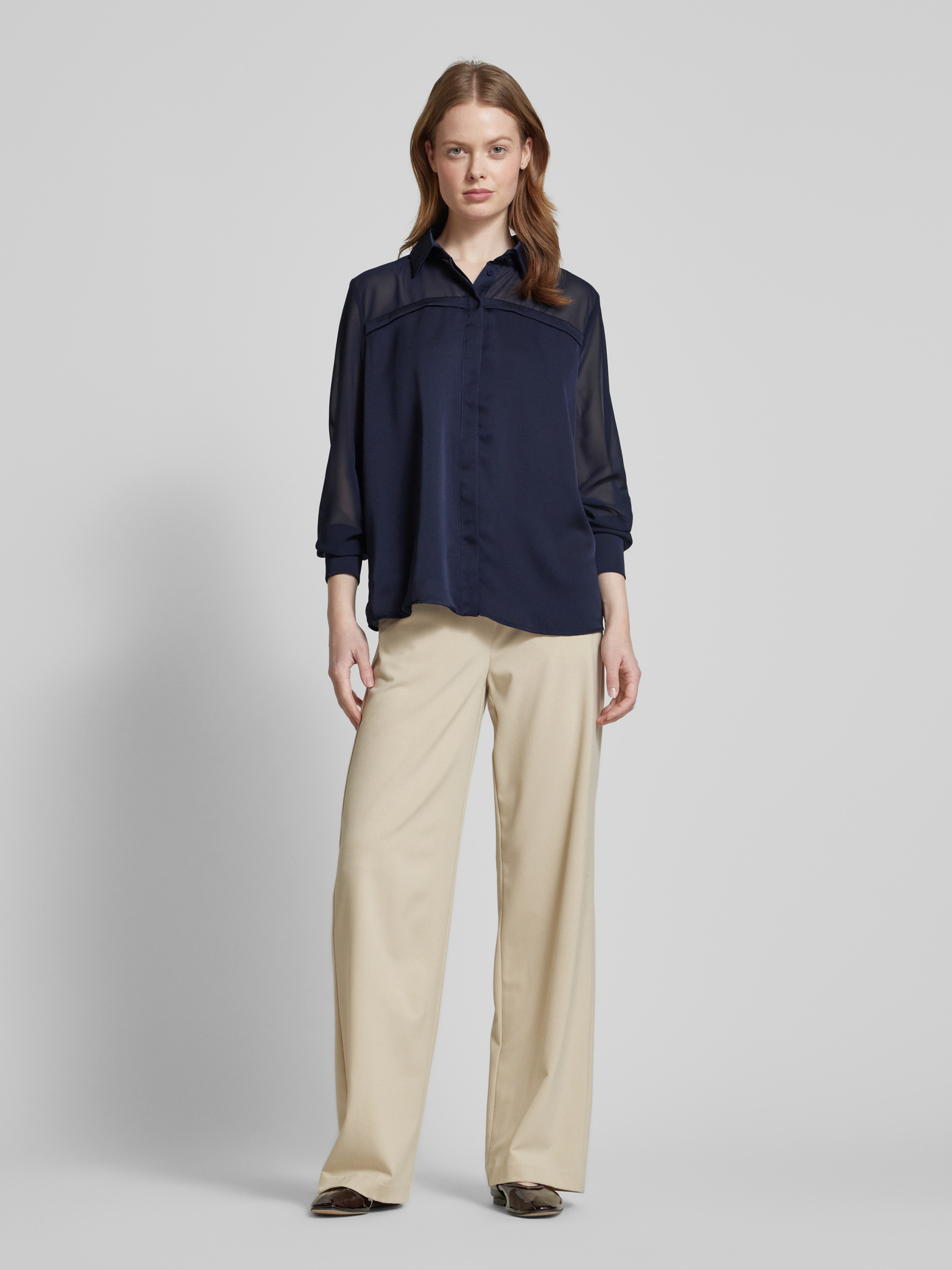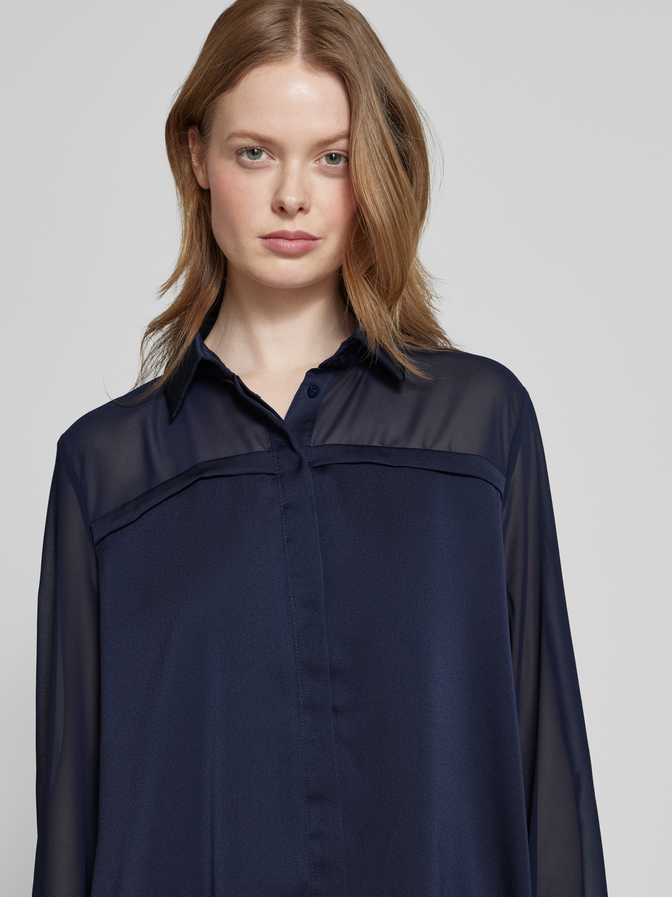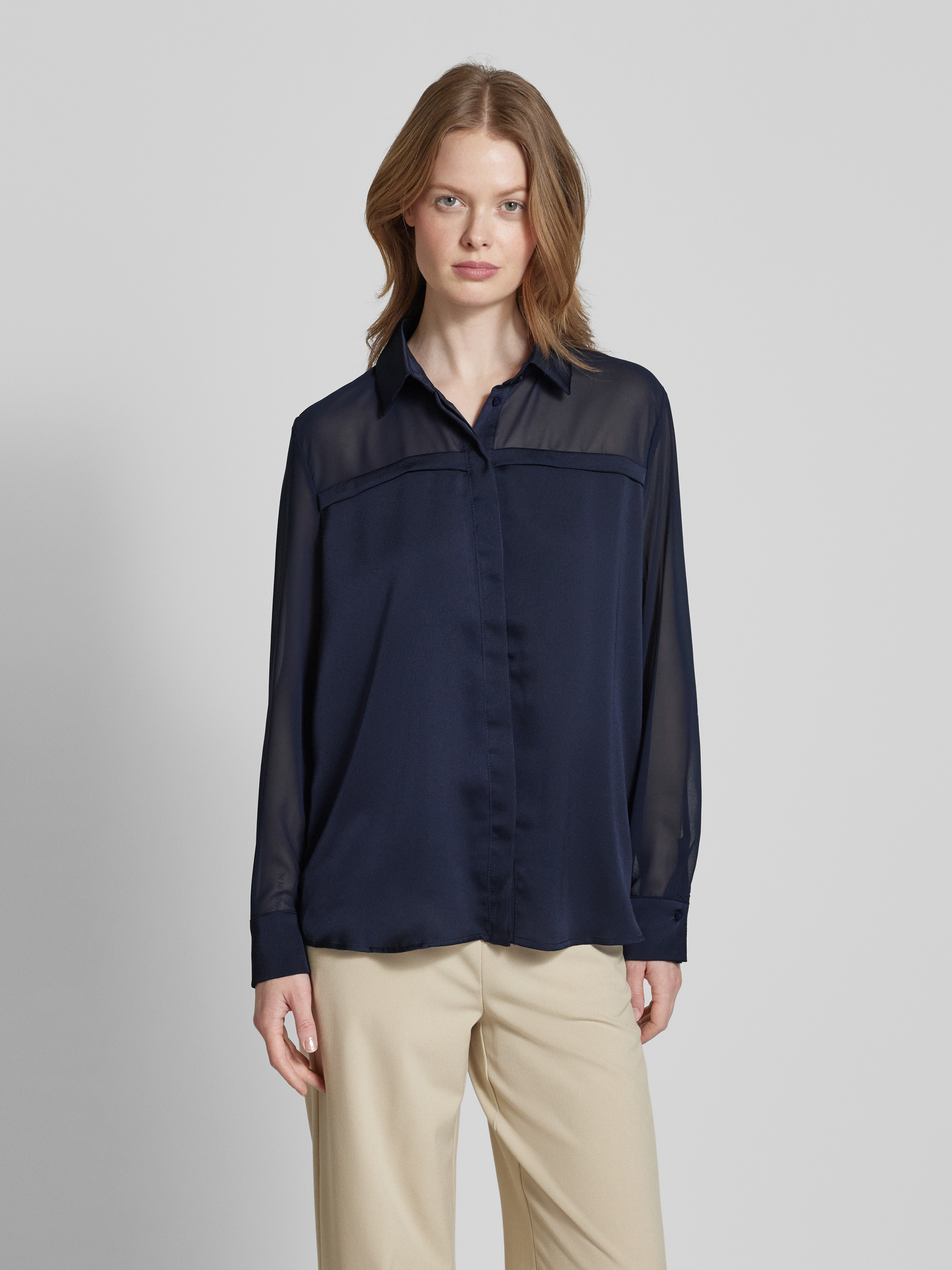 Overhemdblouse met blinde knoopsluiting in marineblauw