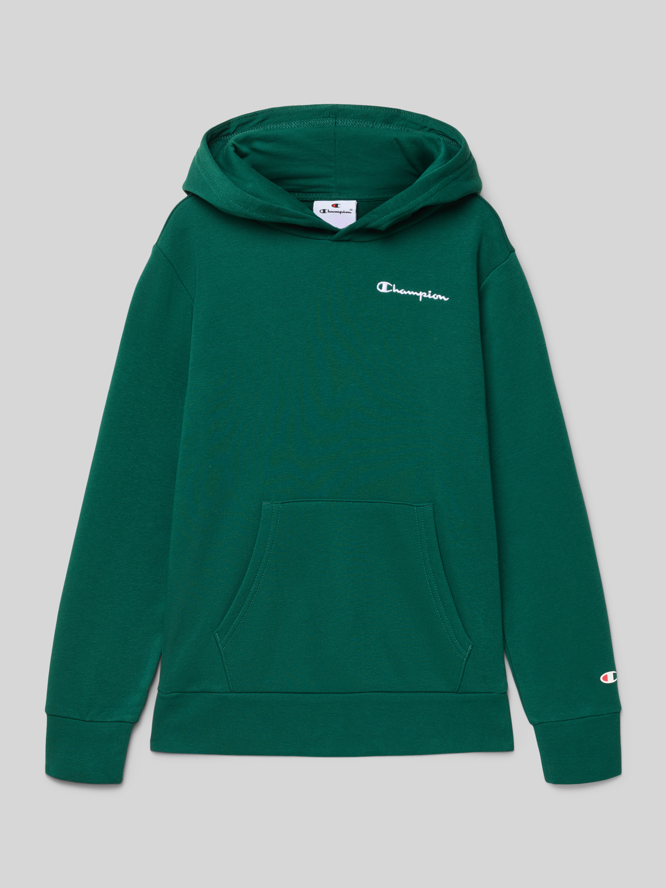 Hoodie met labelstitching en kangoeroezak in donkergroen