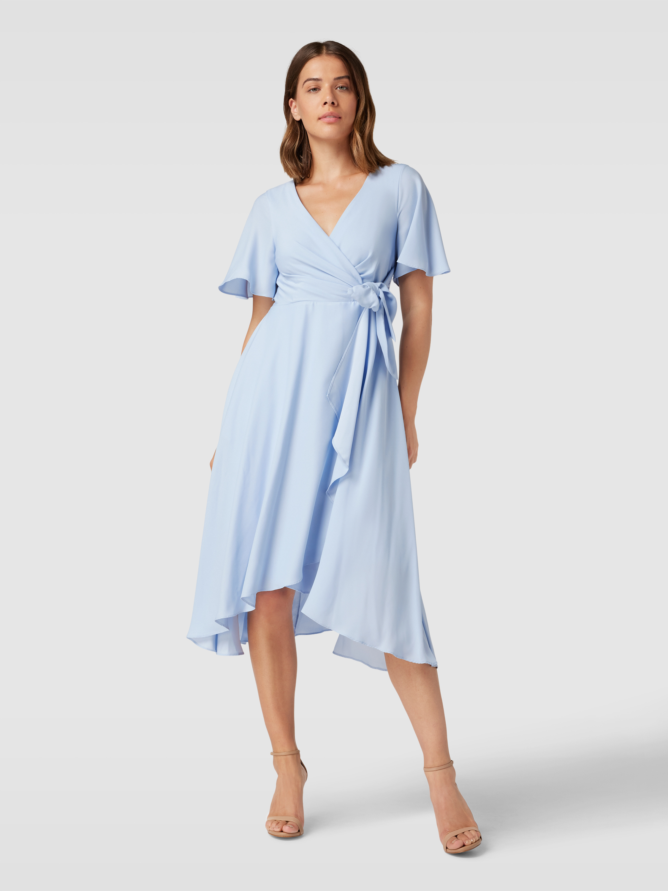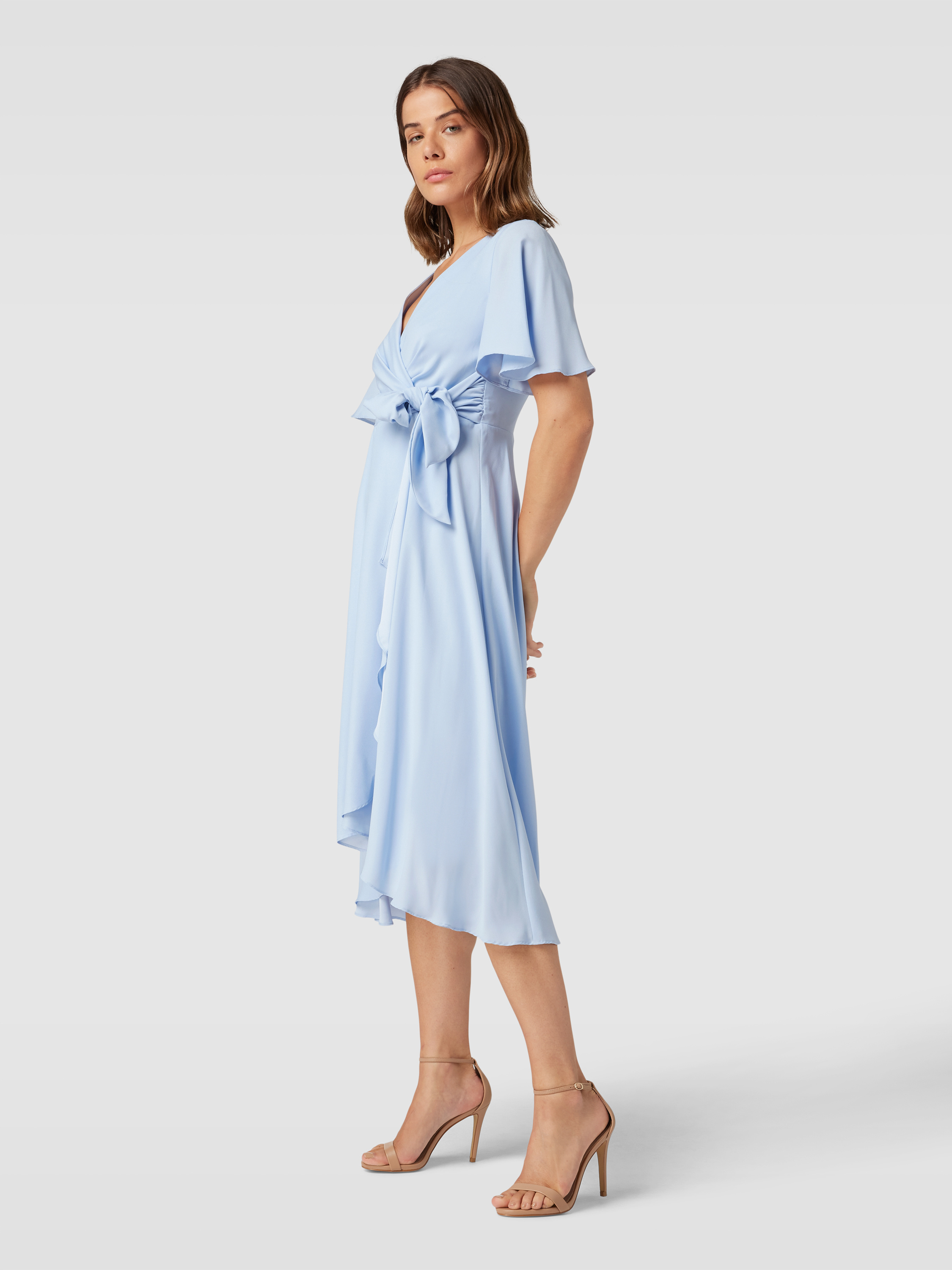 Cocktailjurk in wikkellook in lichtblauw