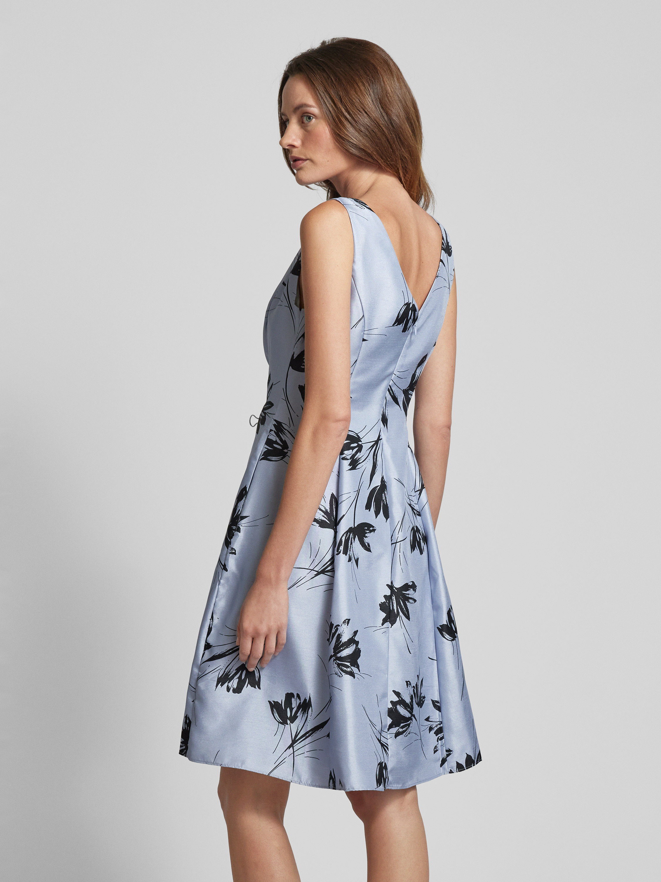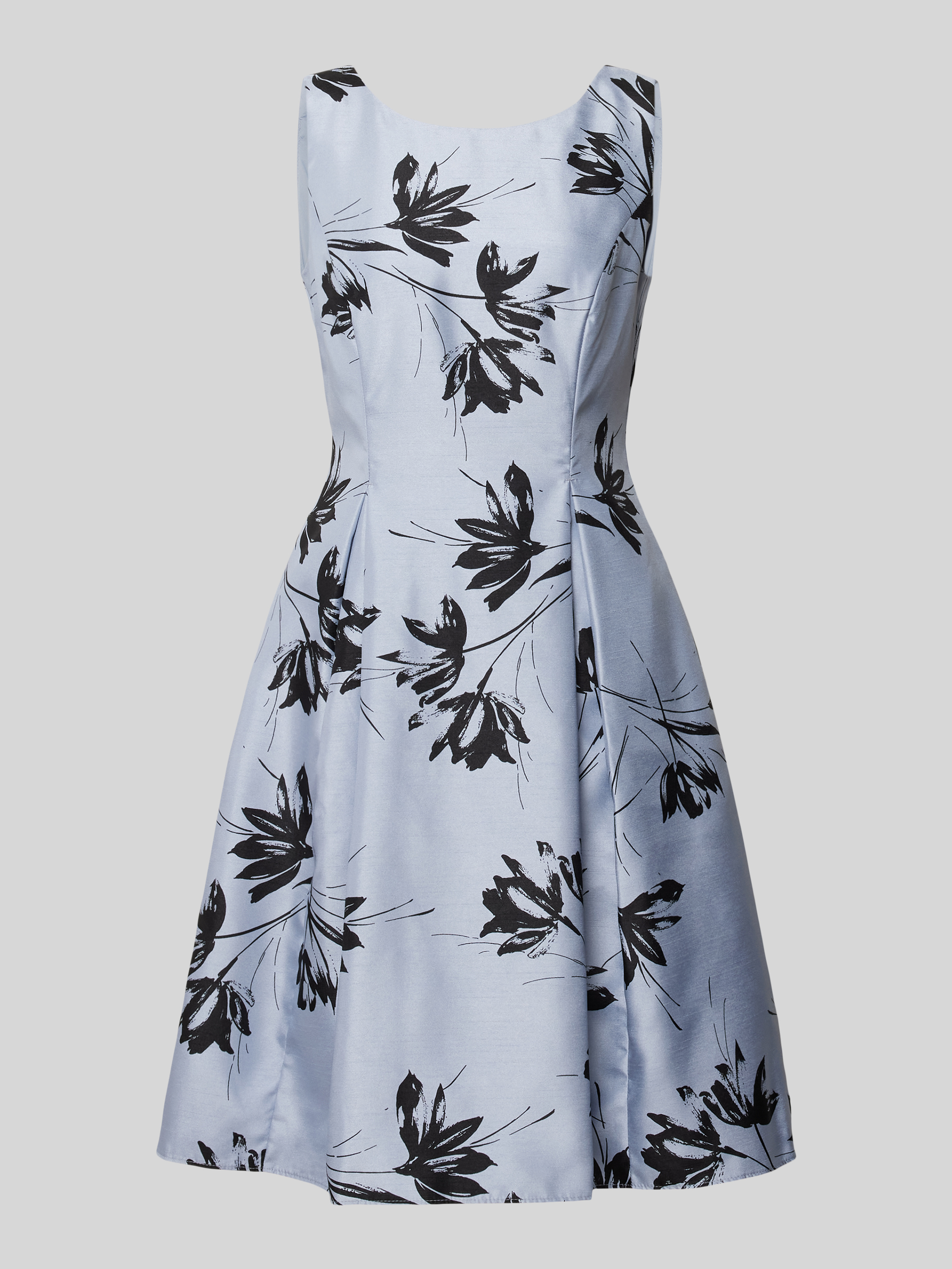 Cocktailjurk met bloemenmotief in hemelsblauw