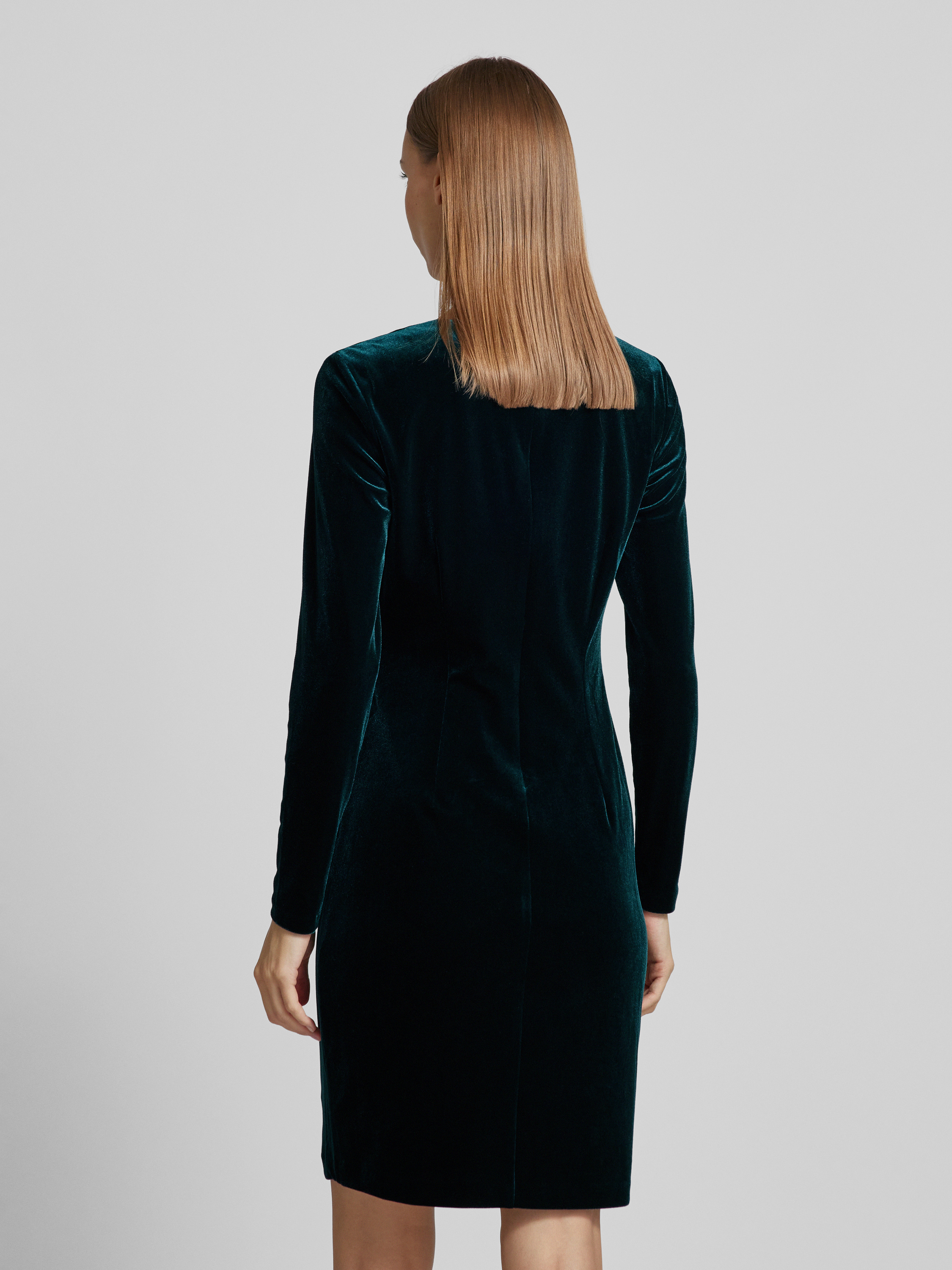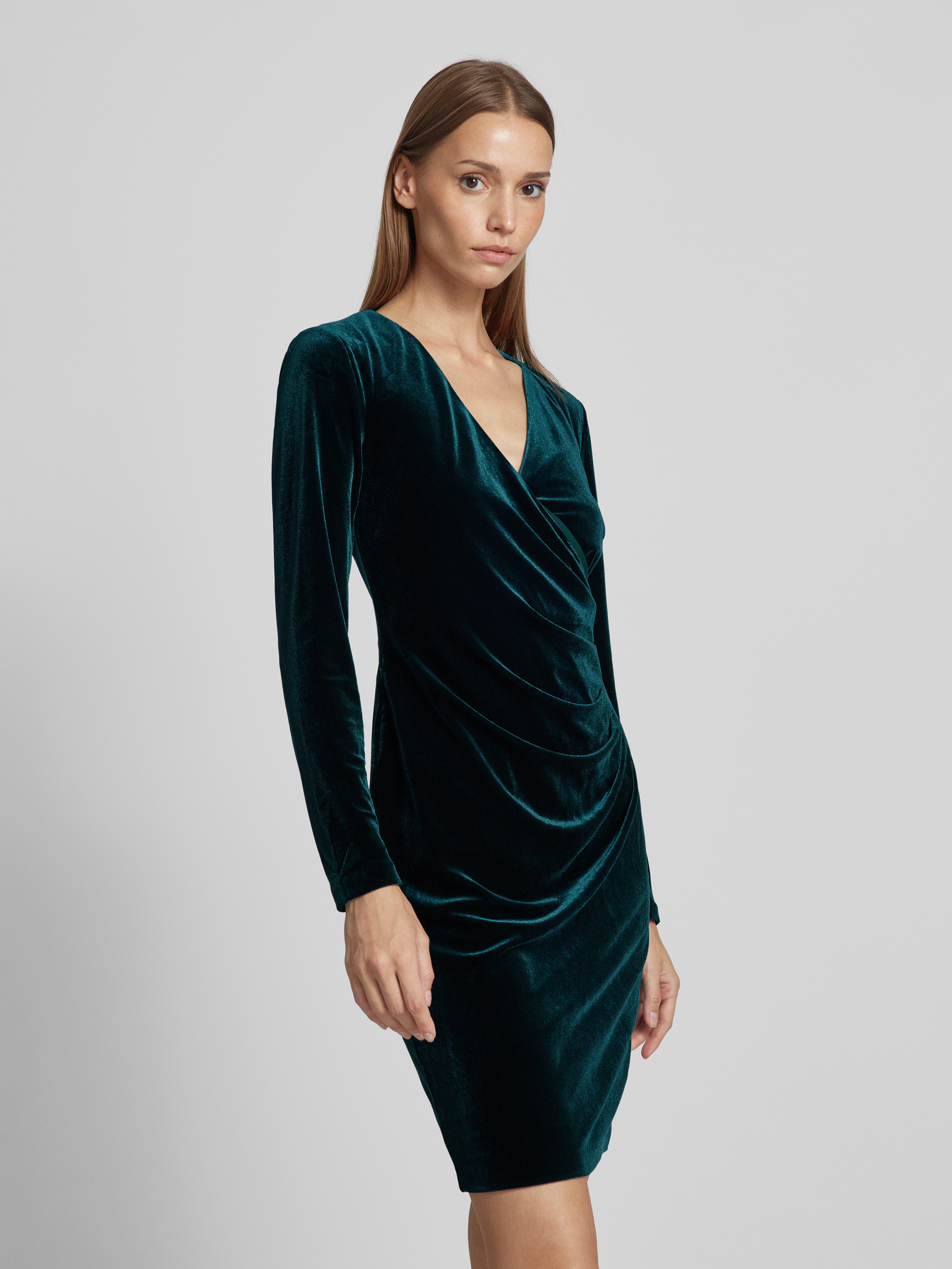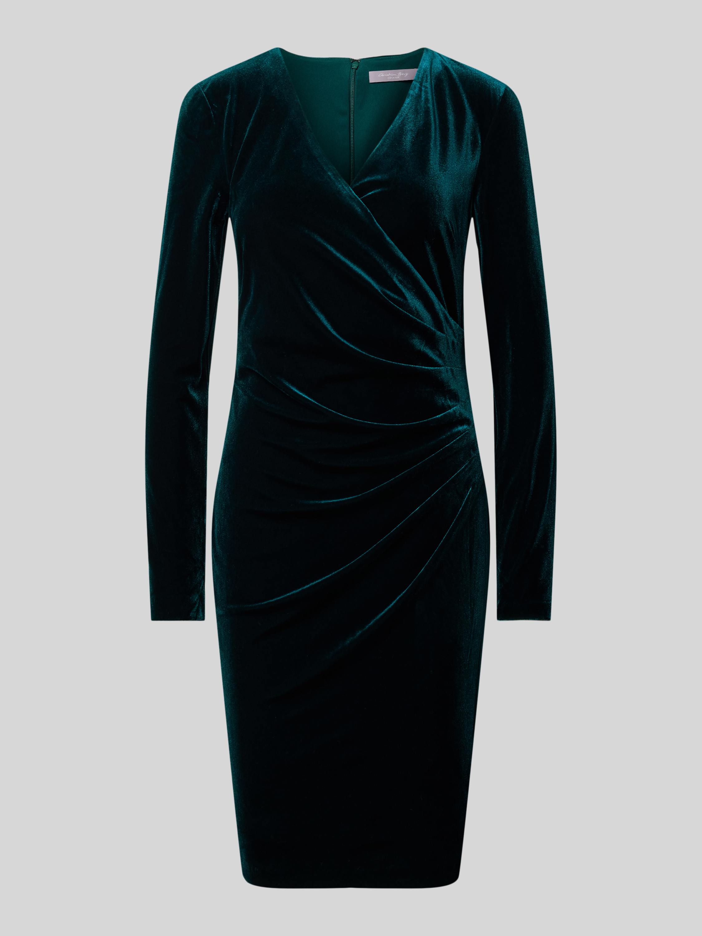 Knielange cocktailjurk in wikkellook in donkergroen
