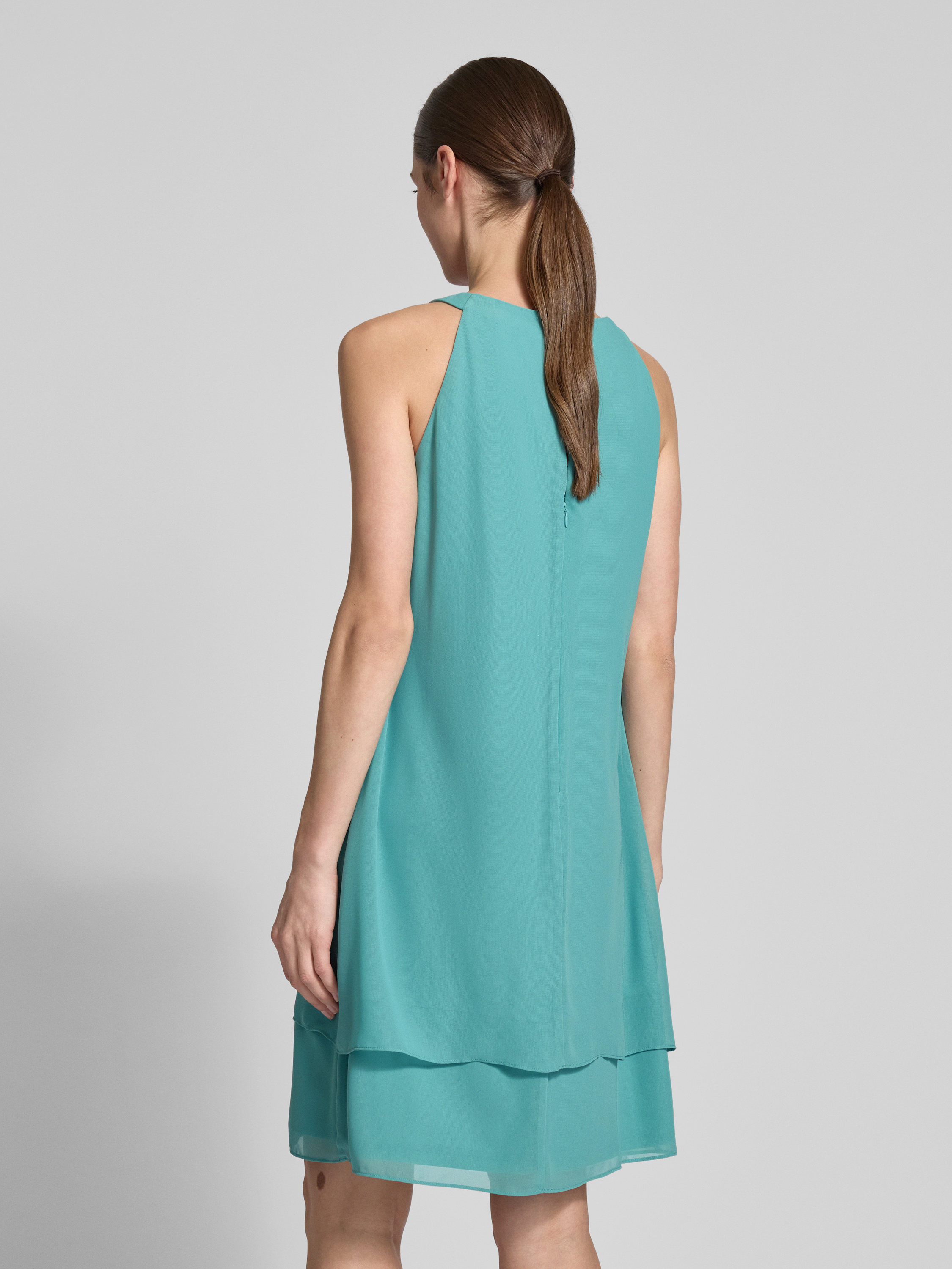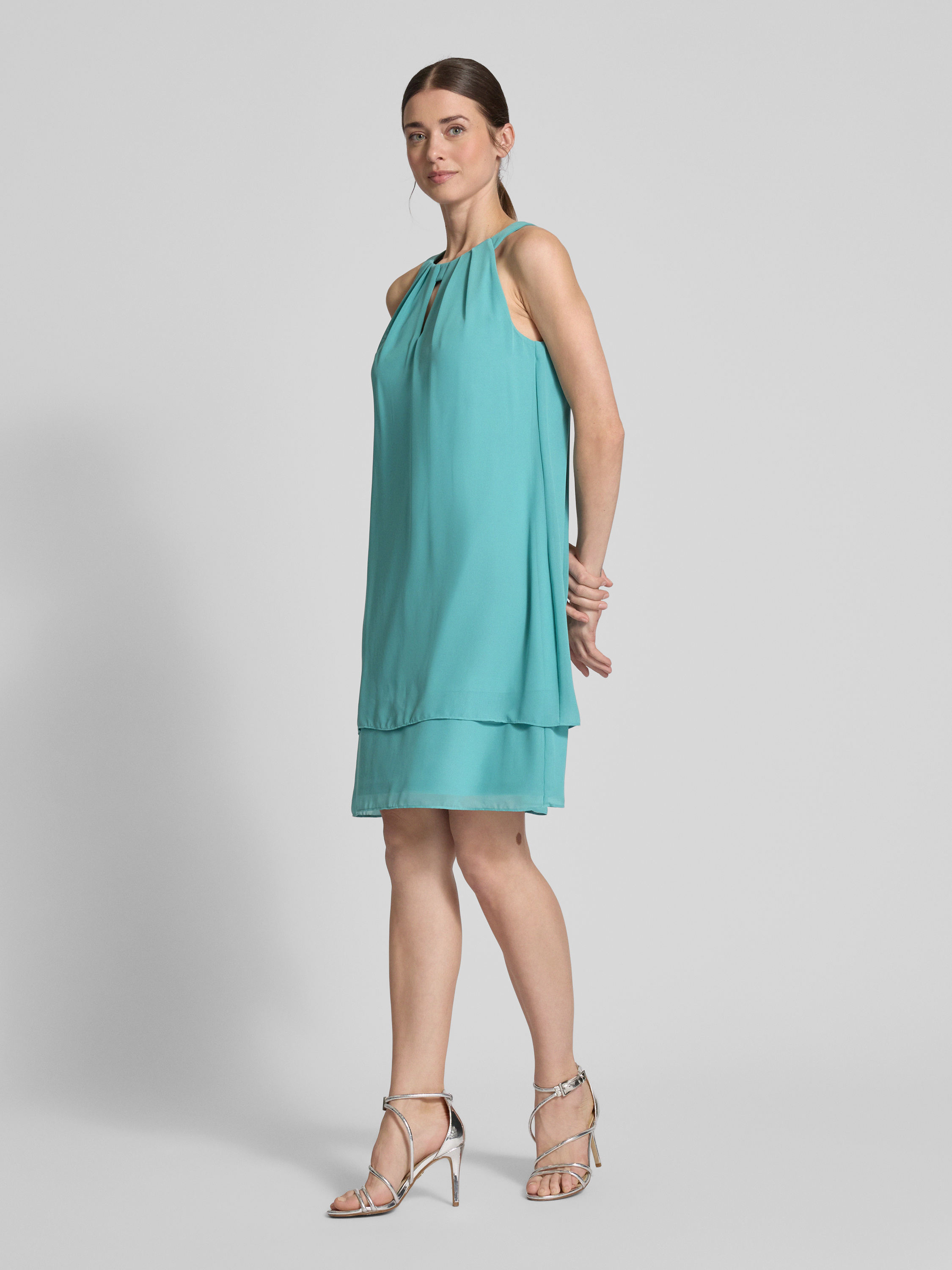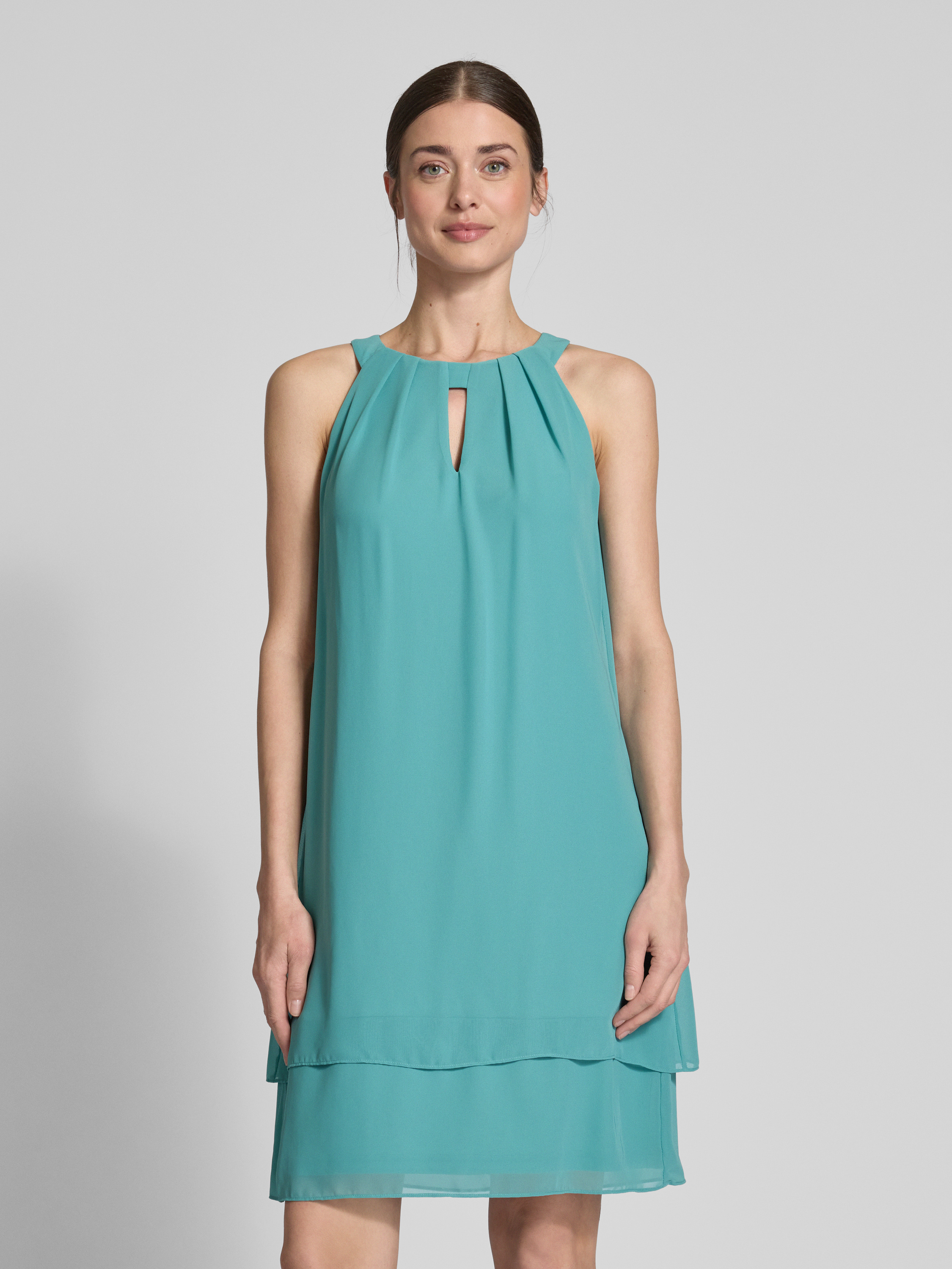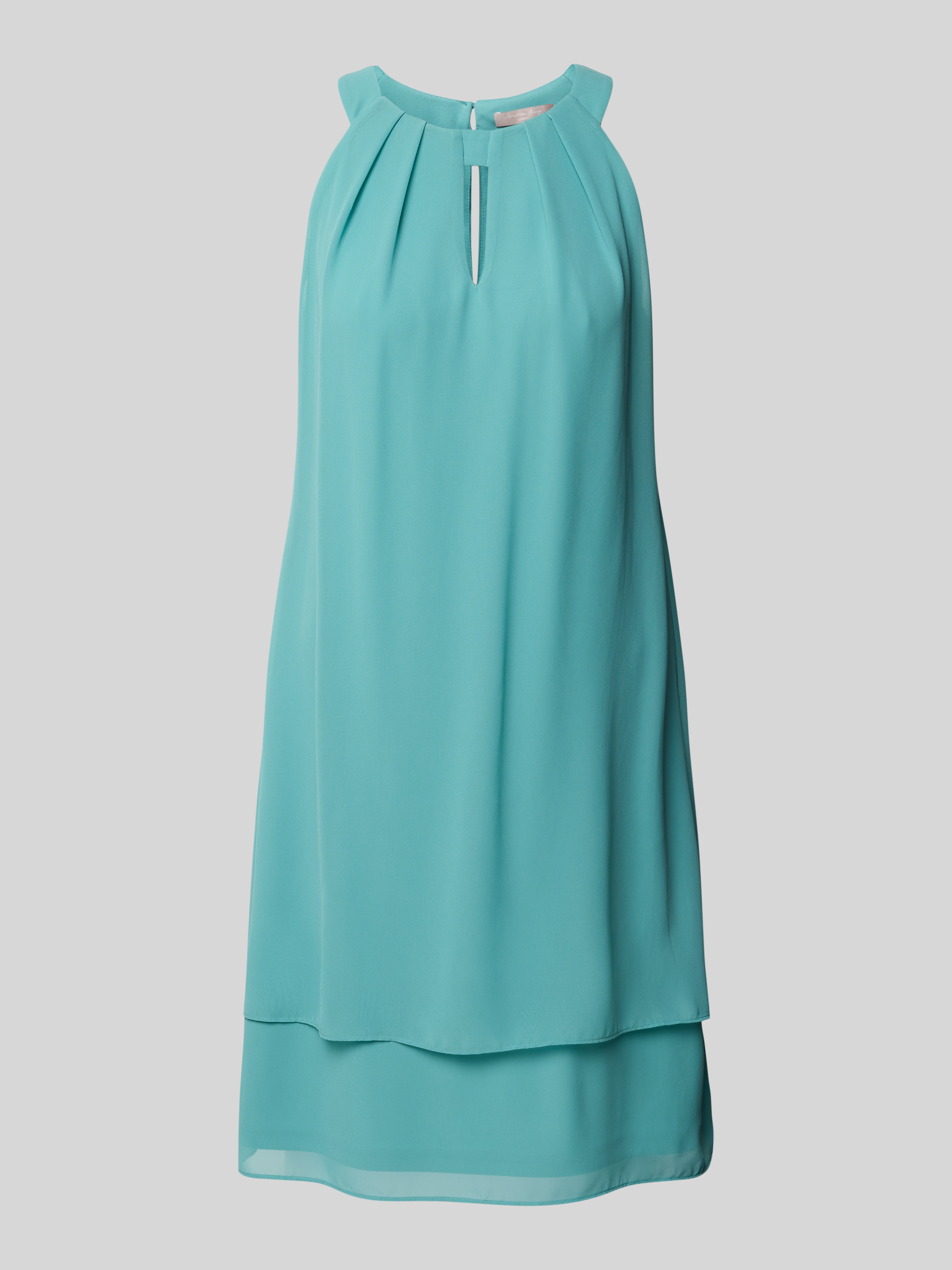 Knielange cocktailjurk met druppelvormige hals in blauw