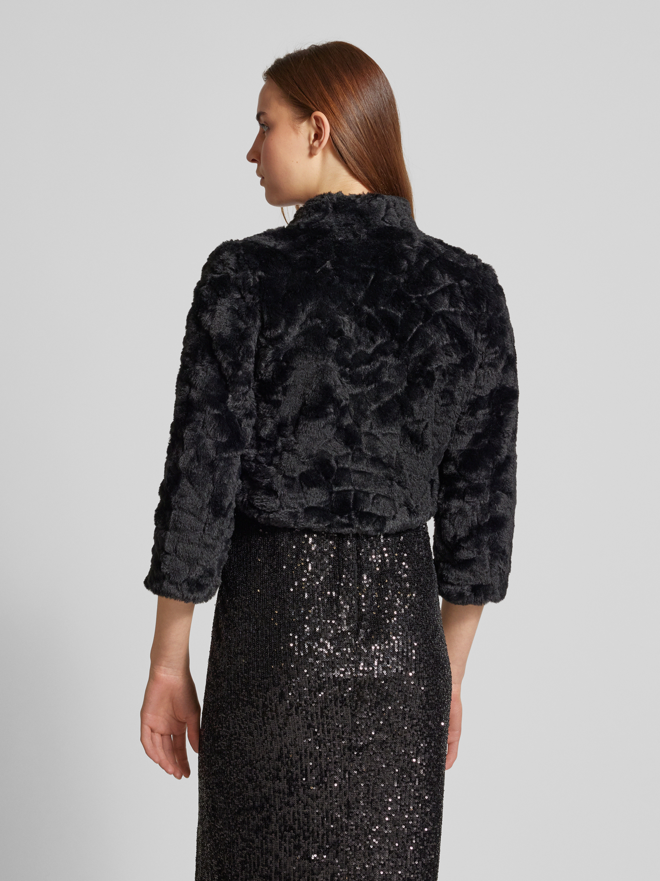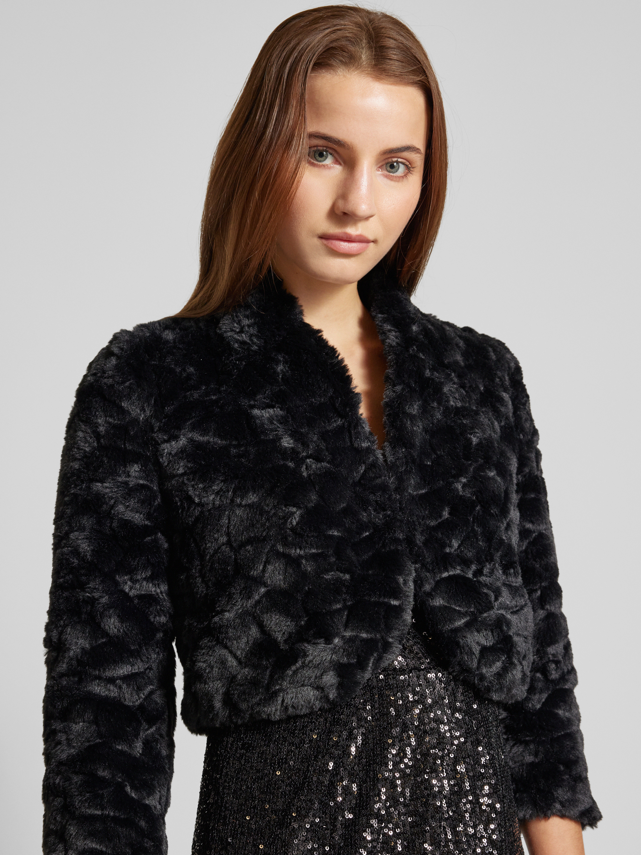 Regular fit korte blazer met imitatiebont in zwart