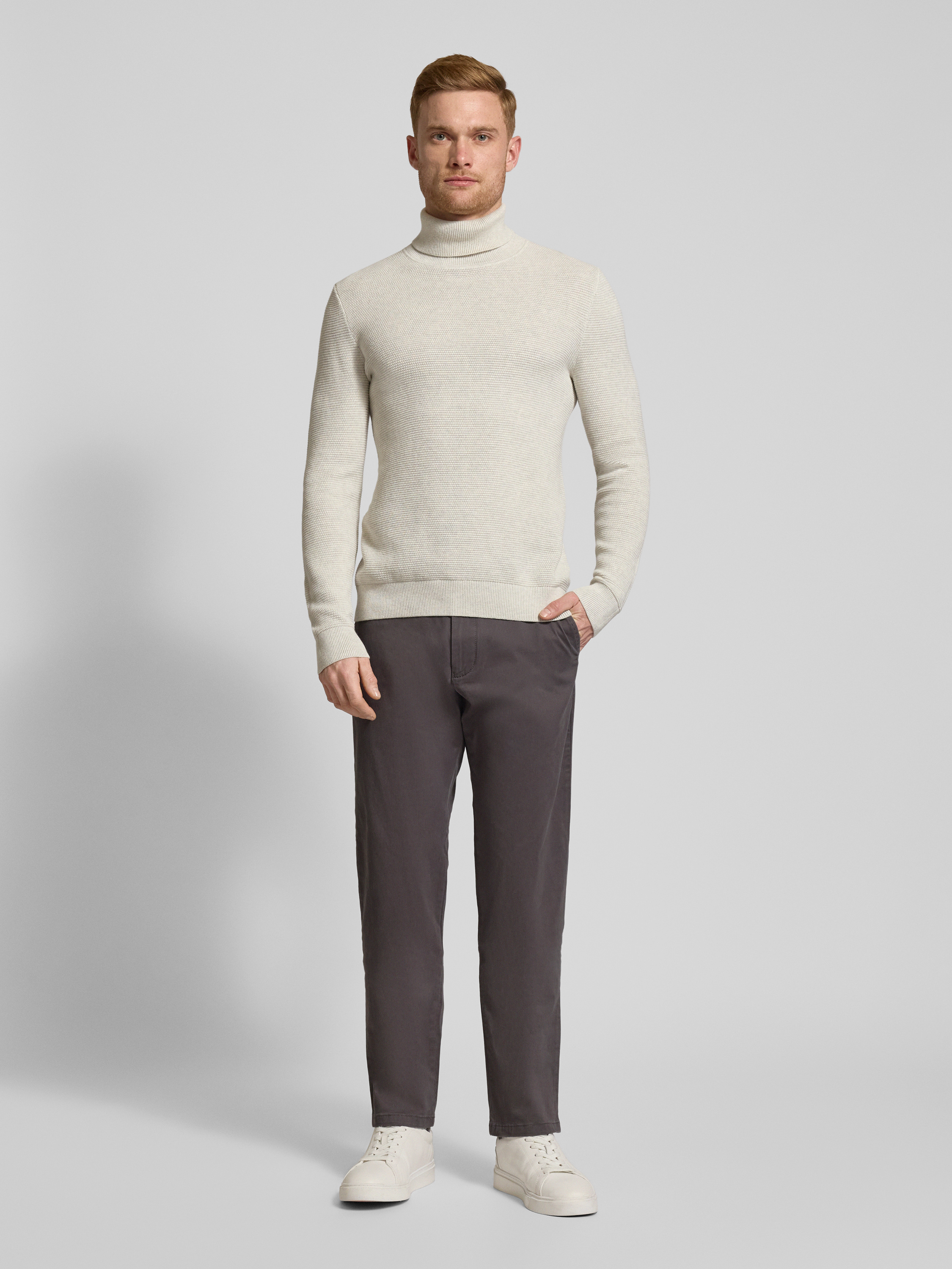 • Christian Berg Men Chino met Franse steekzakken Taupe