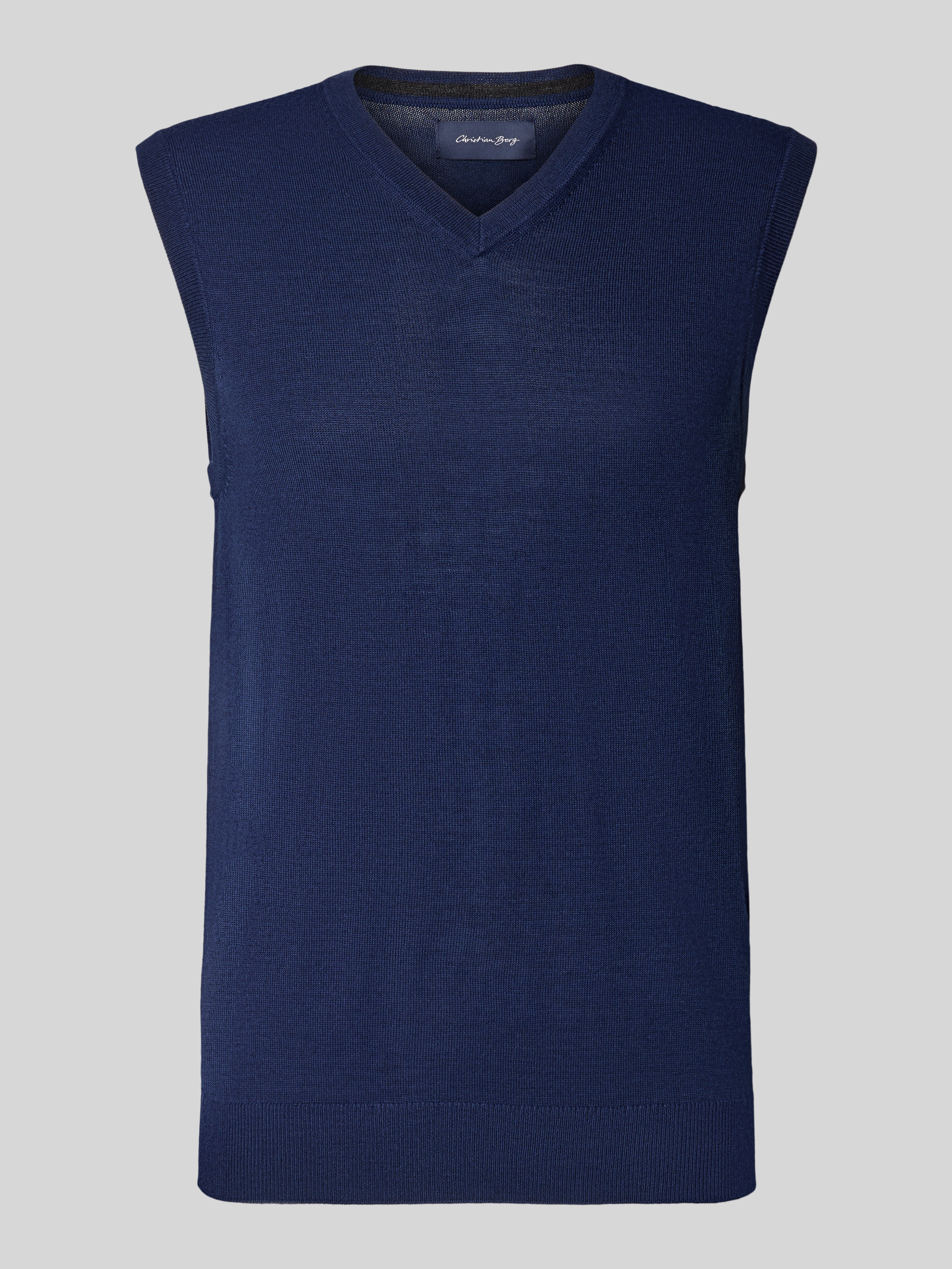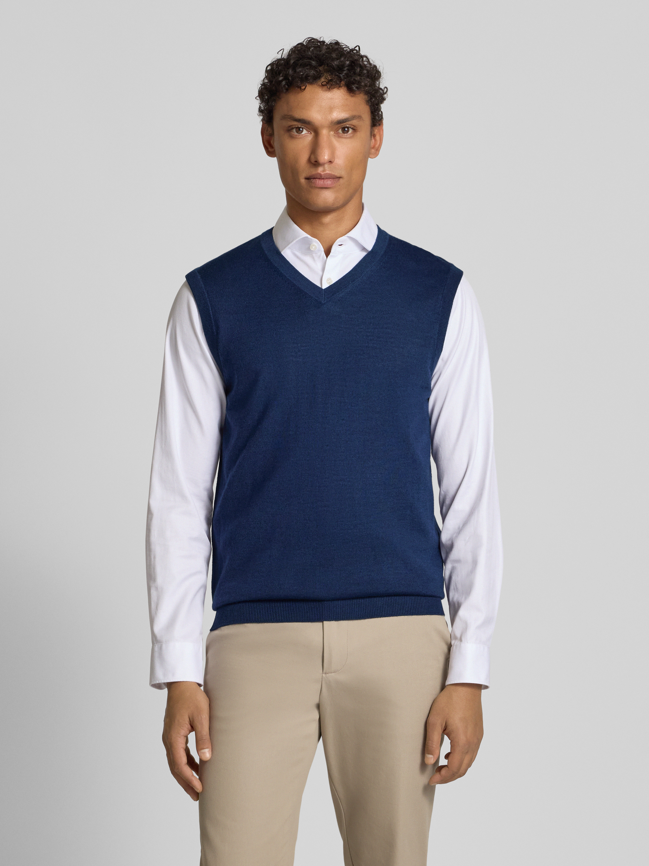 Christian Berg MenGebreid shirt van een mix van merinowol met V-hals in donkerblauw gemêleerd