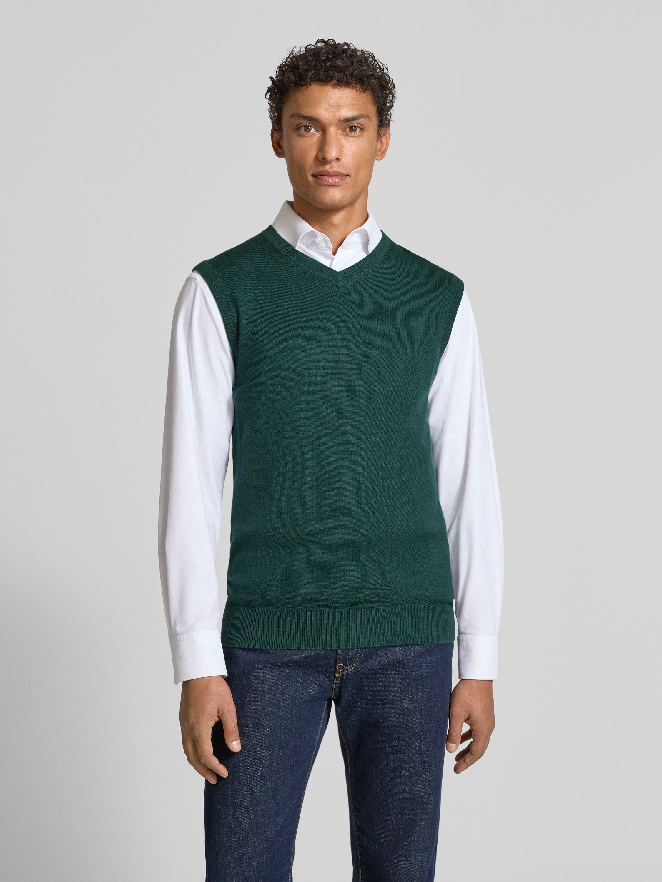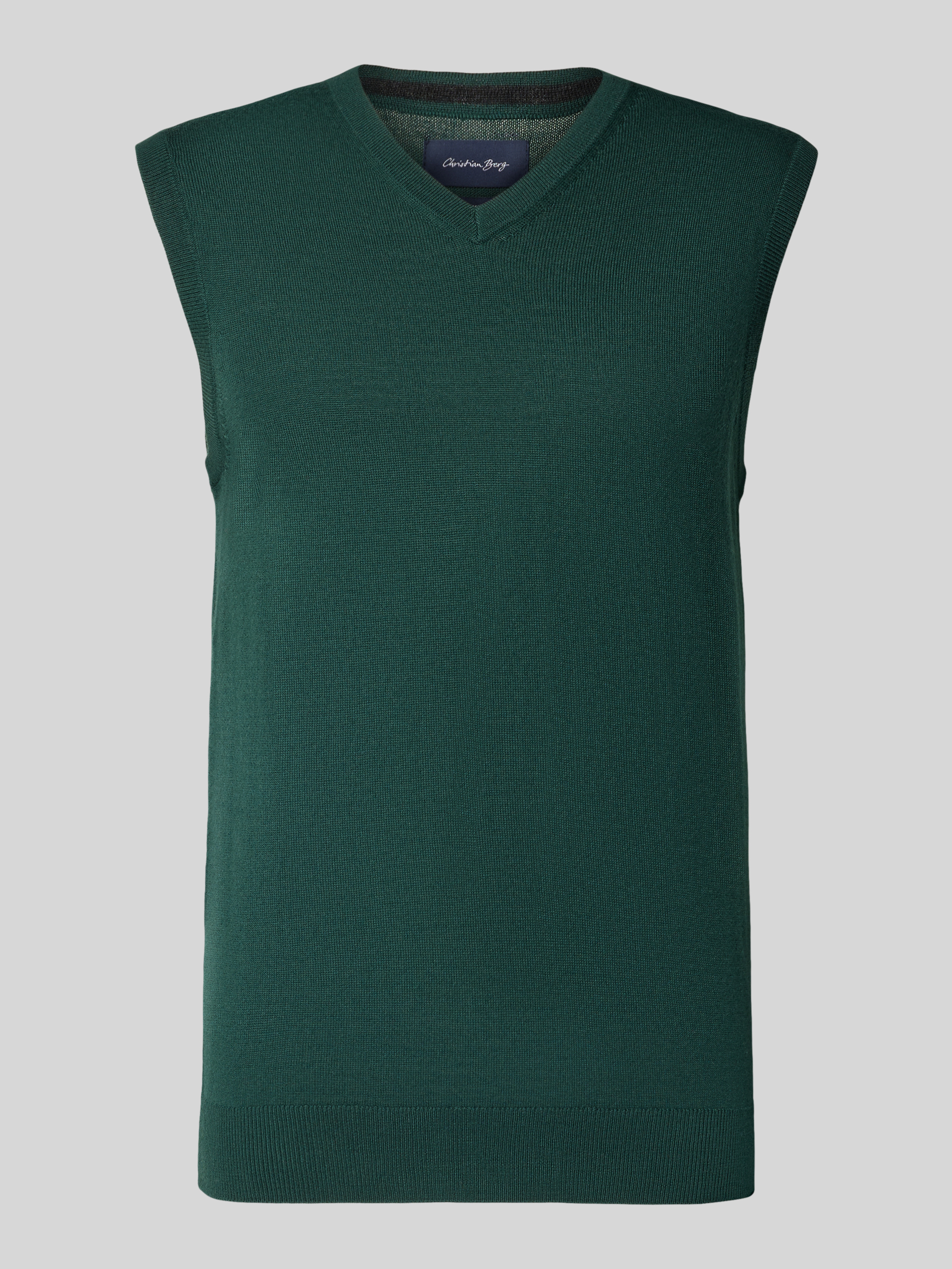 Christian Berg MenGebreid shirt van een mix van merinowol met V-hals in flessengroen