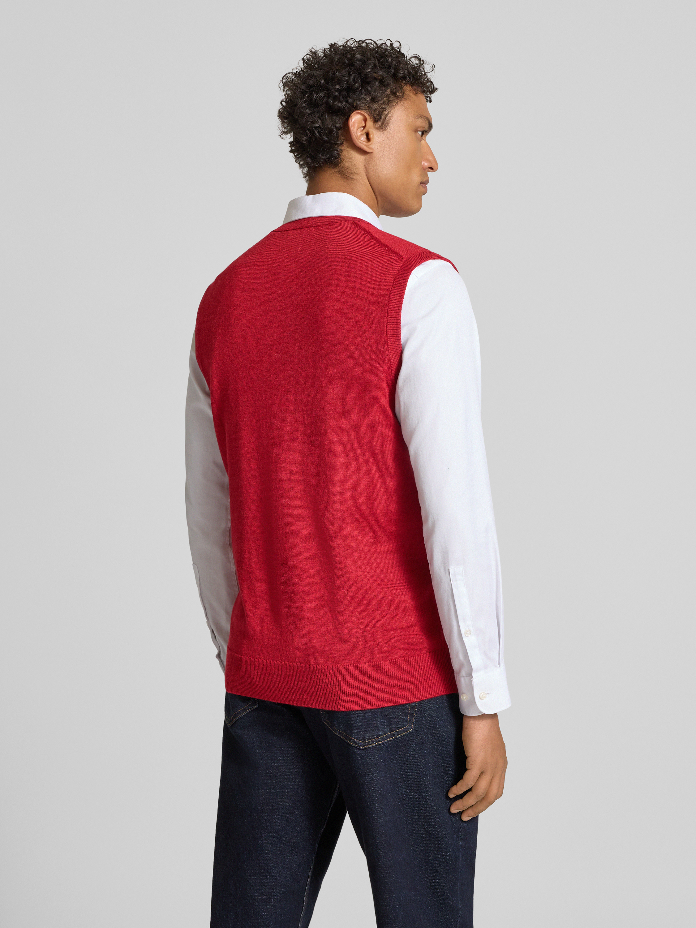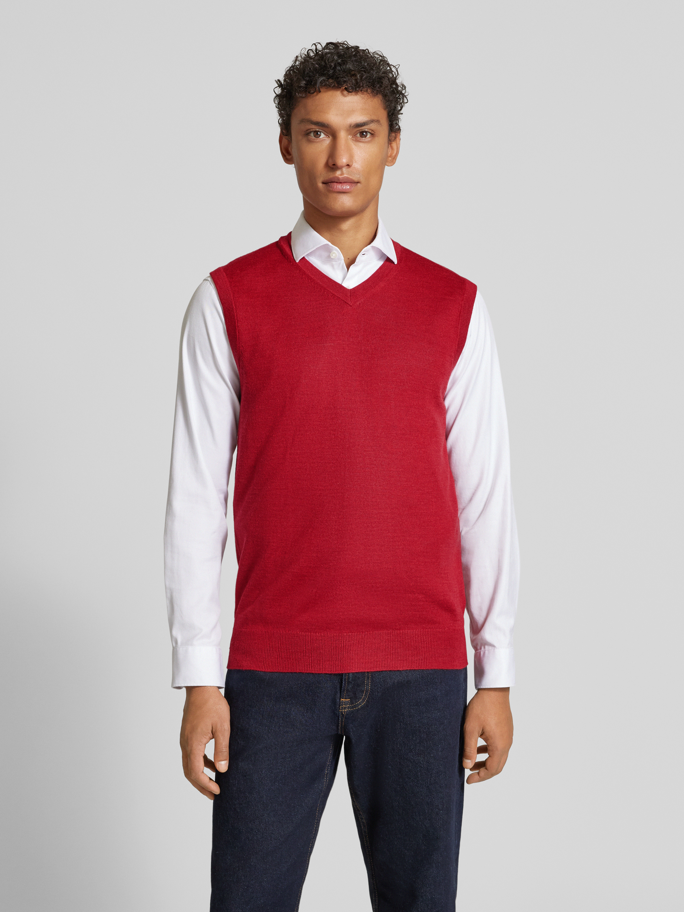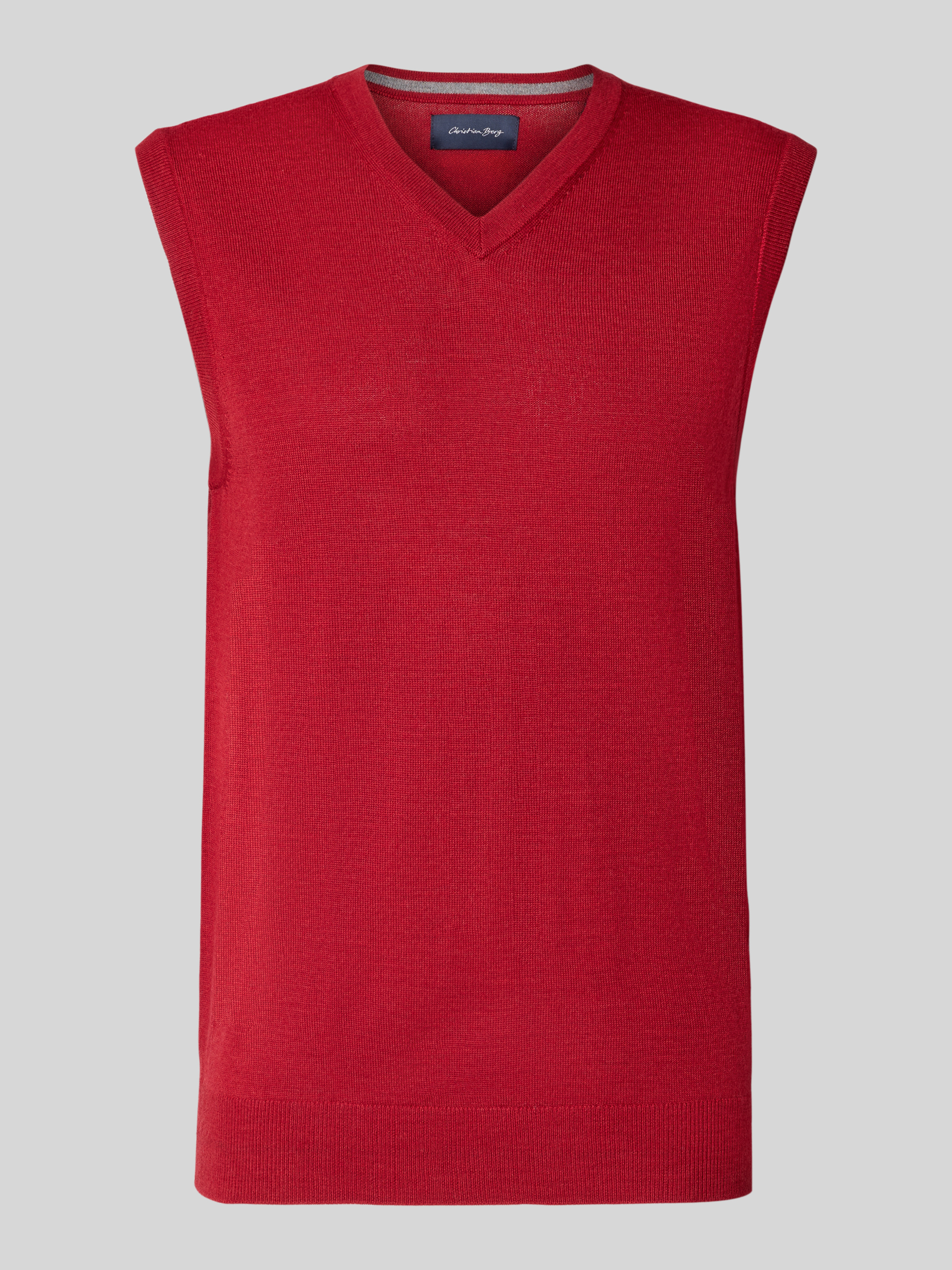 Christian Berg MenGebreid shirt van een mix van merinowol met V-hals in rood gemêleerd